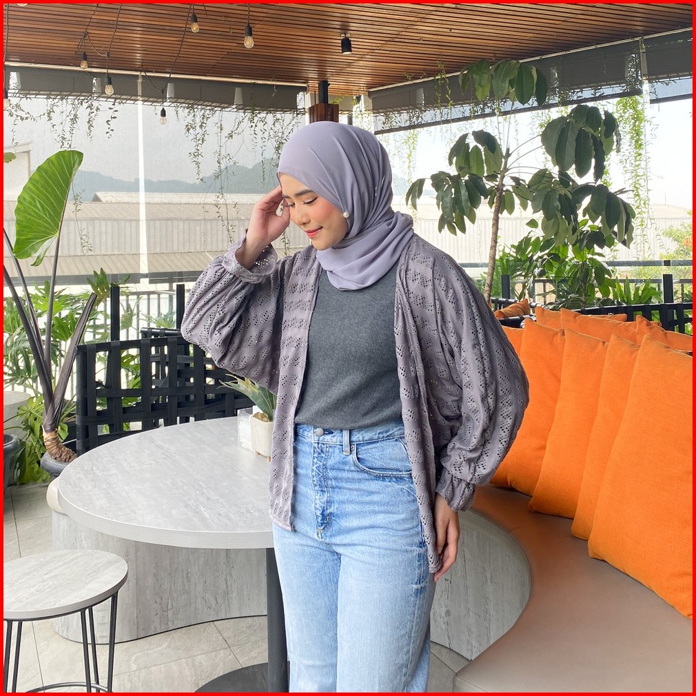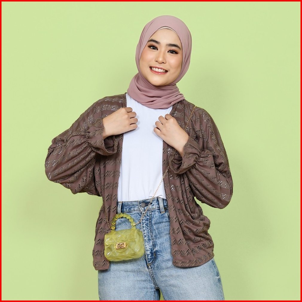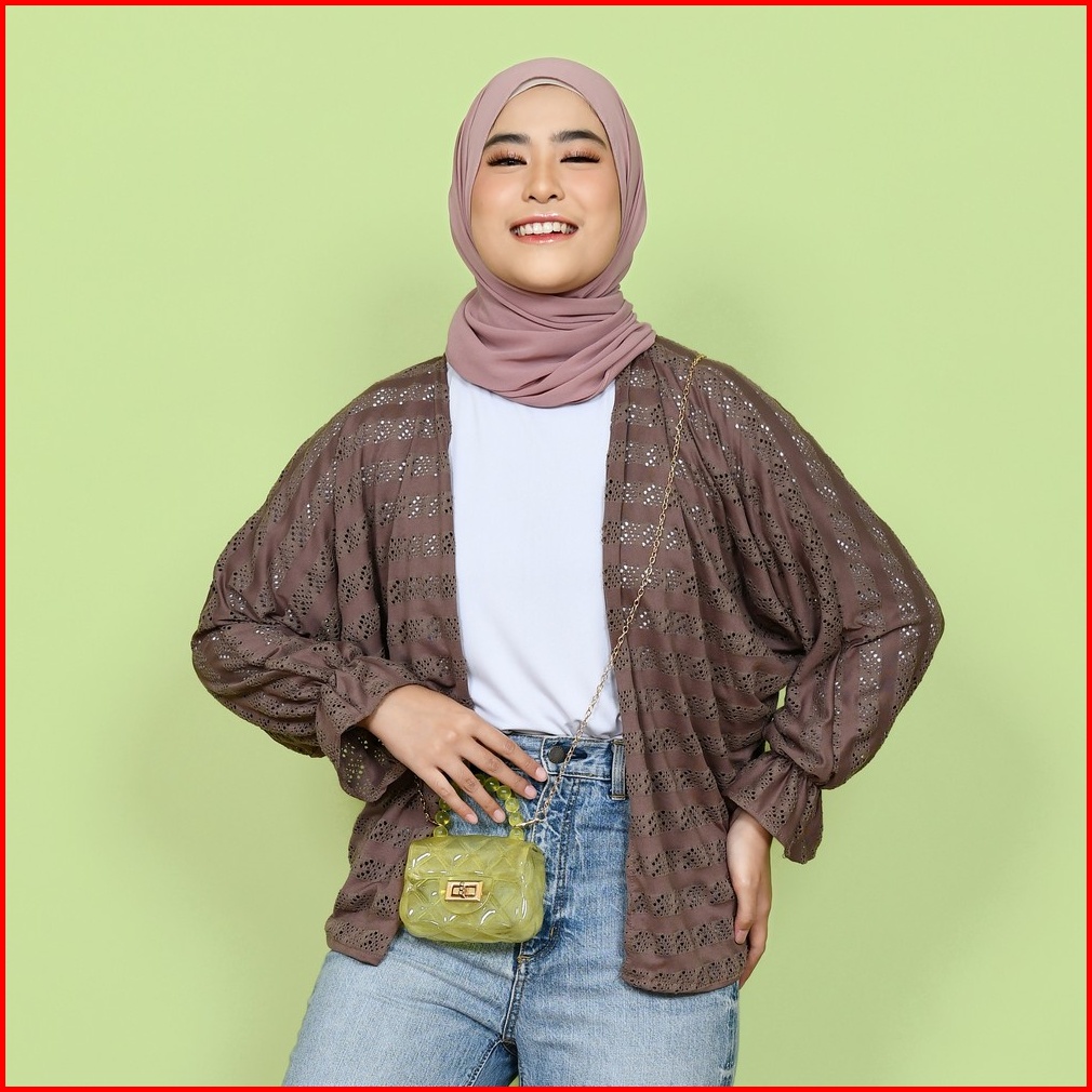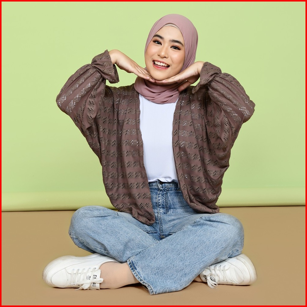 Mybamus Orza Brukat Outer Cardigan Lace Luaran Tangan Panjang Wanita