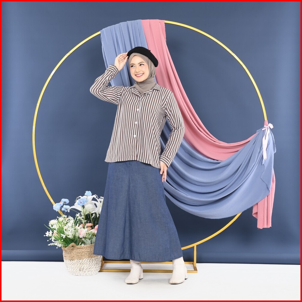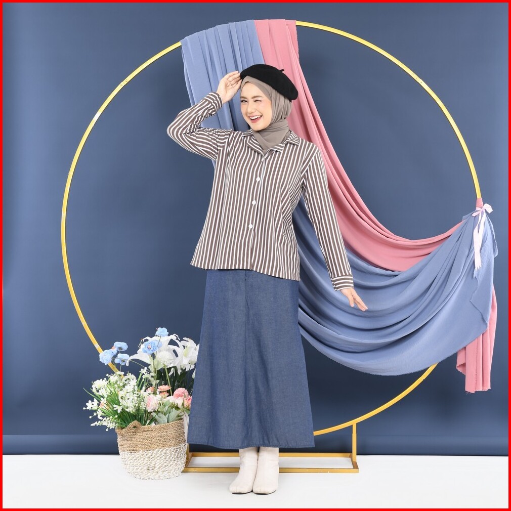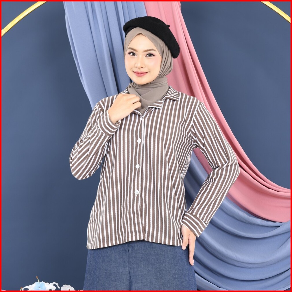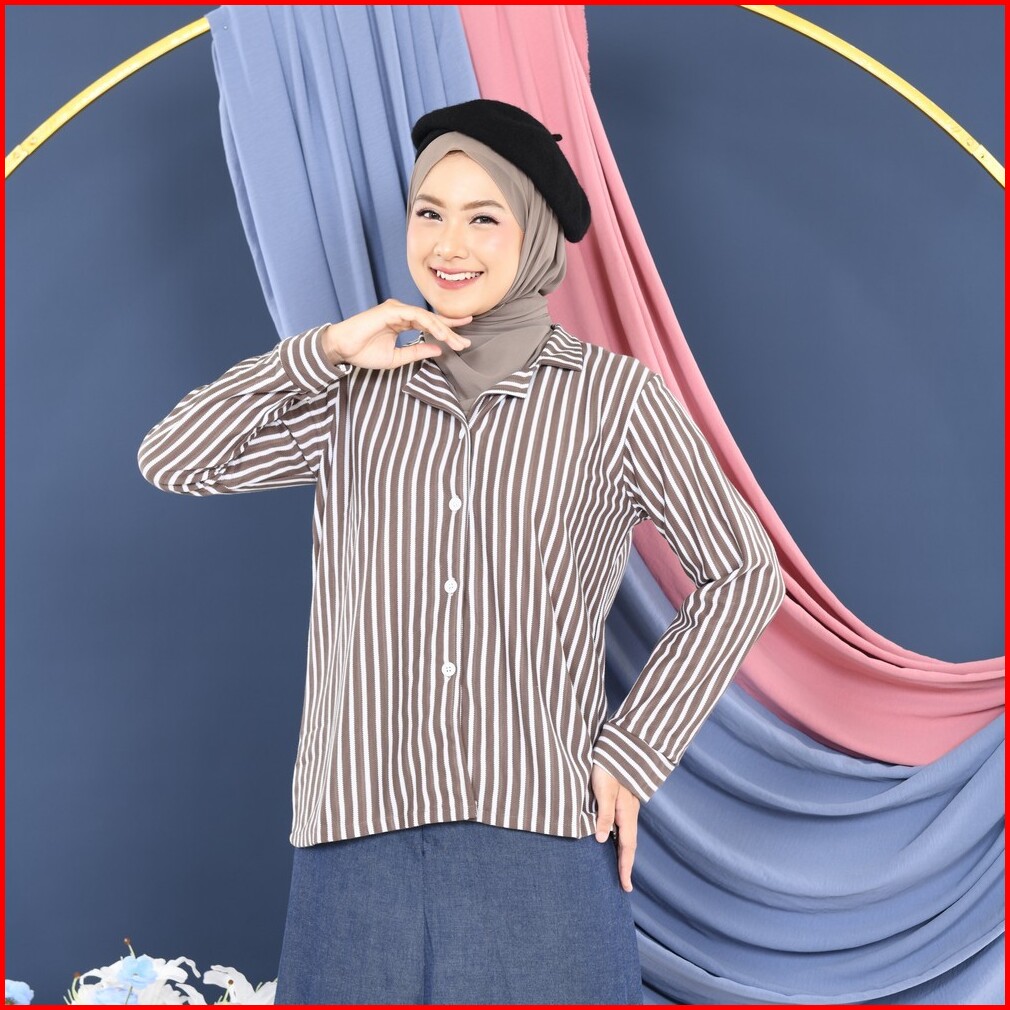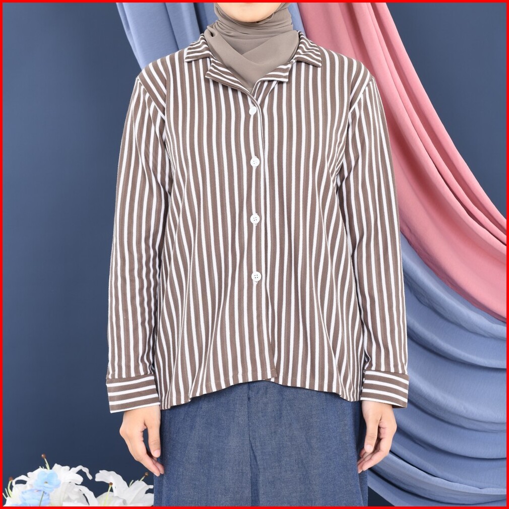 Mybamus Behati Stripe Shirt Ginger Bread M16133 R33s3 - Atasan Muslim