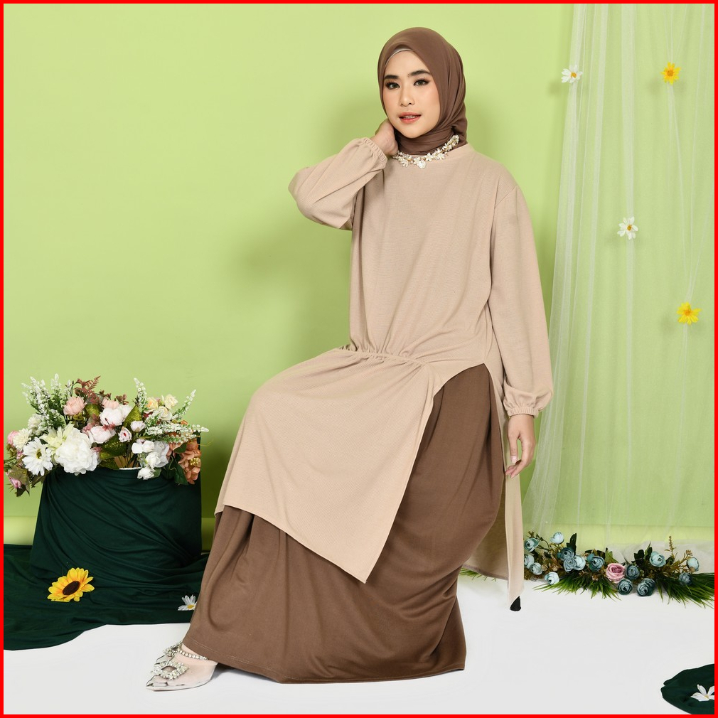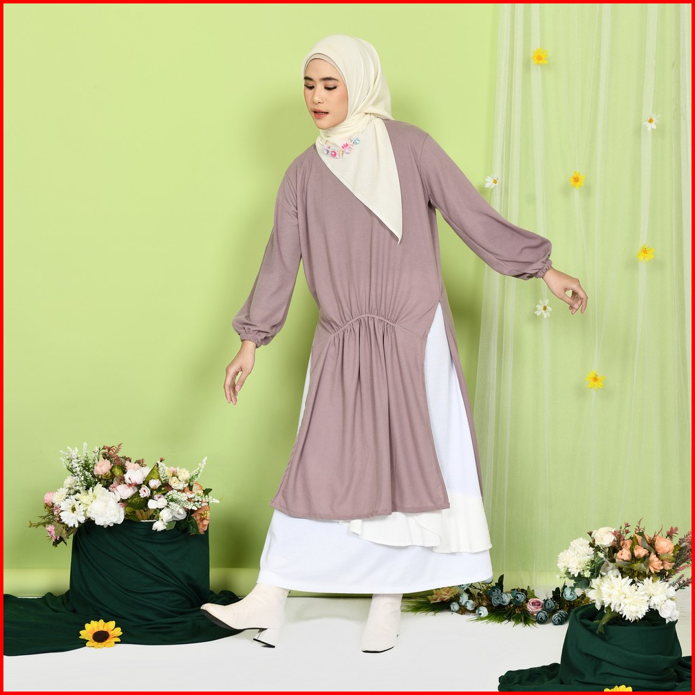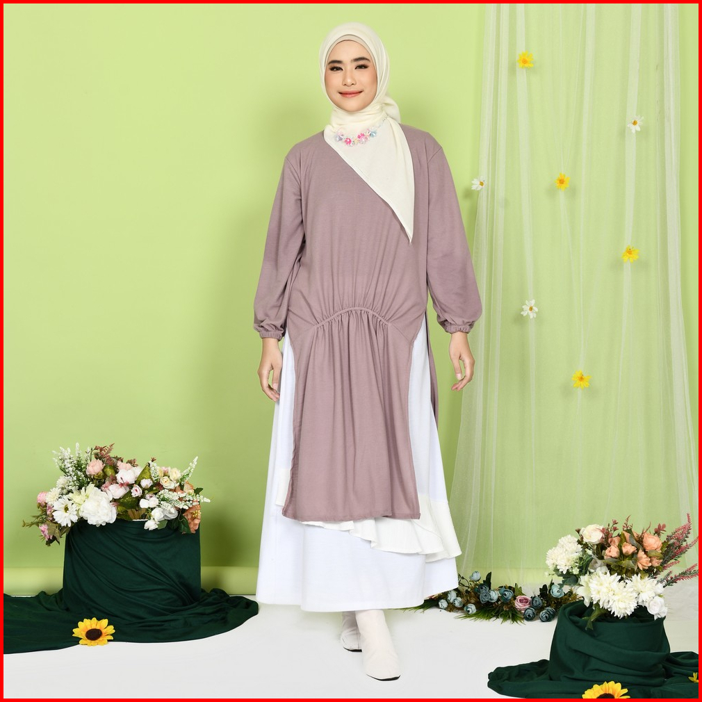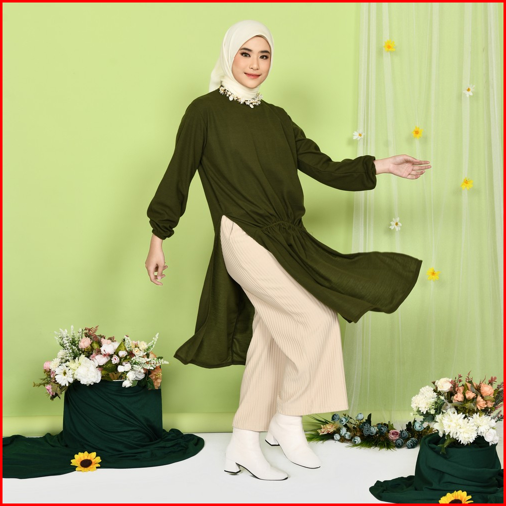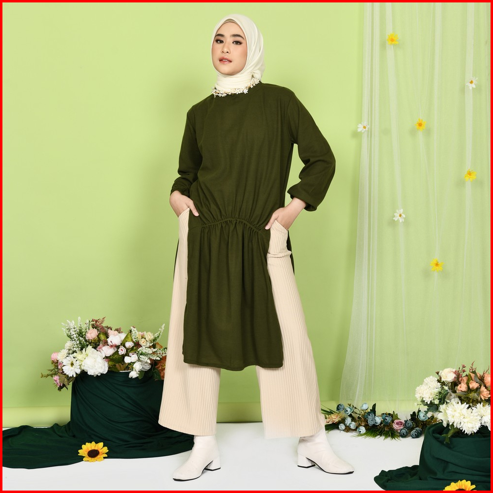 Mybamus Waffle Tunik Slit Atasan Tunik Wanita Tunik Wanita Kekinian Tunik Waffle