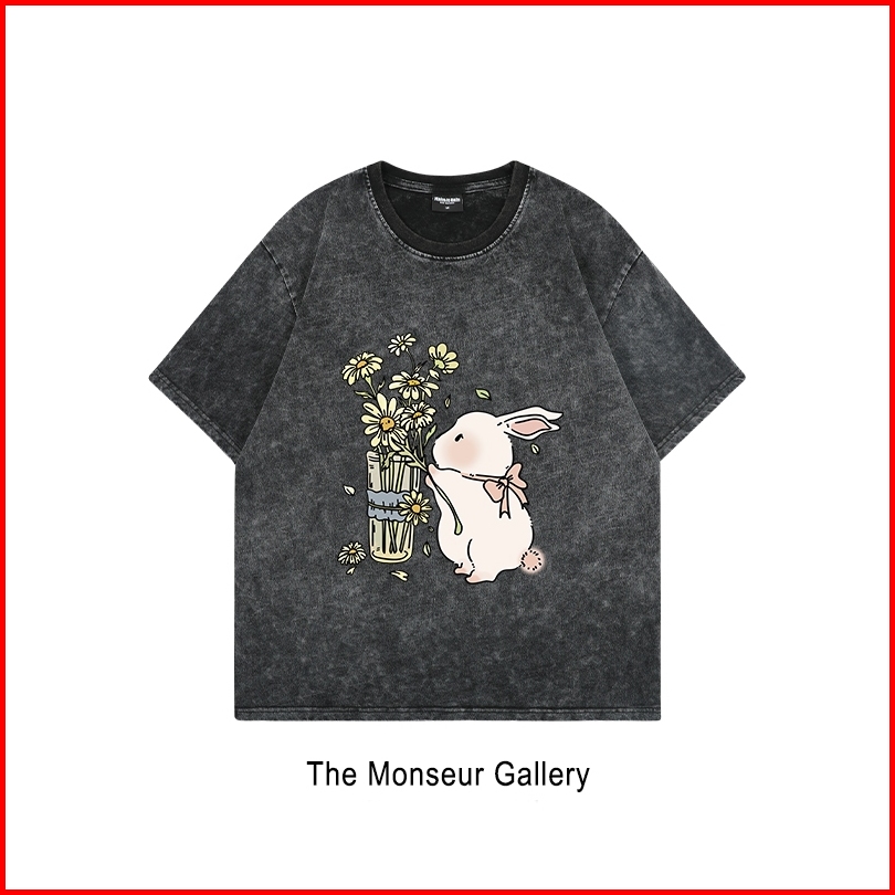 The Monseur Gallery T-shirt Washed Oversize Rabbit Niche Fun Print Kaos Wanita Hitam