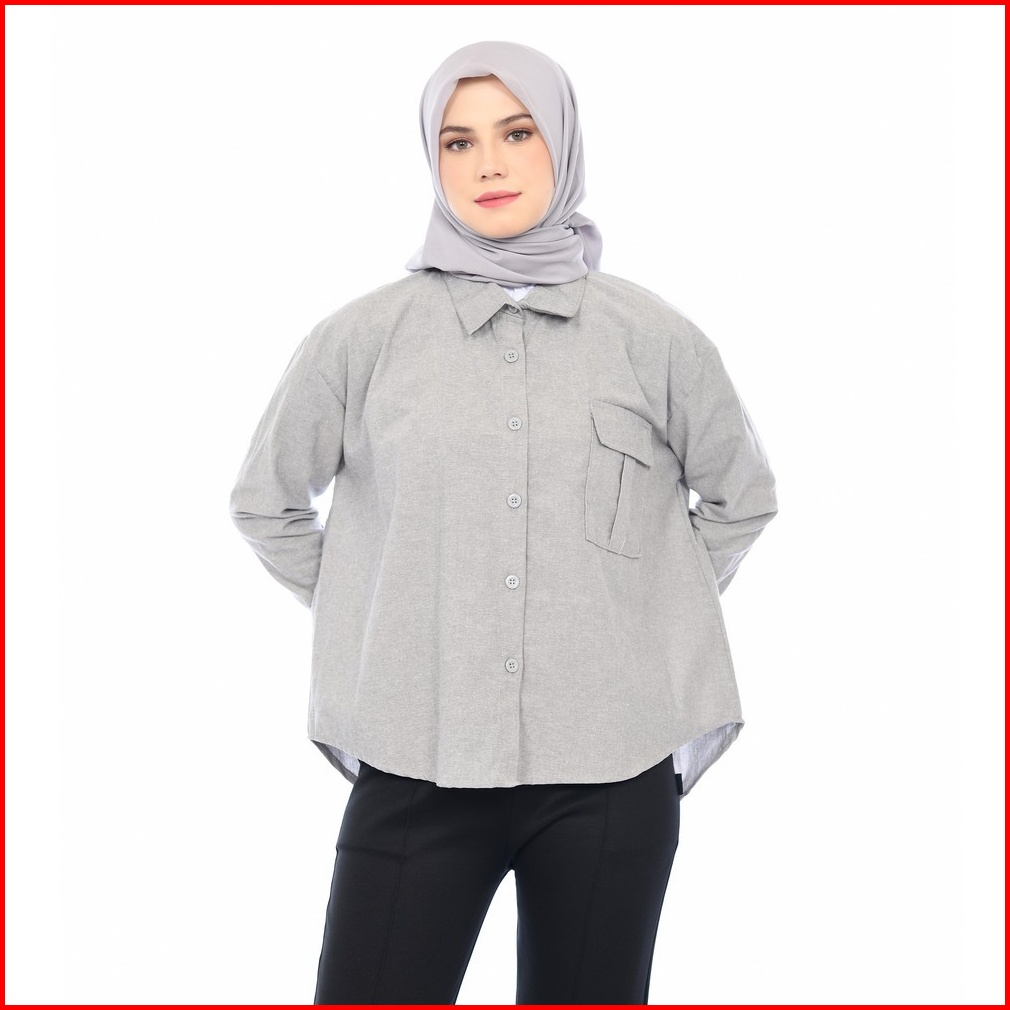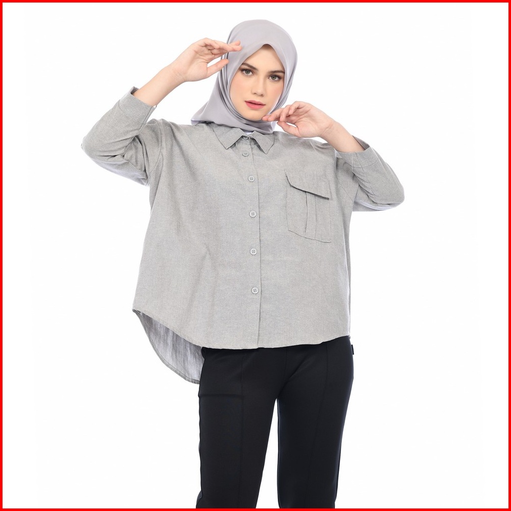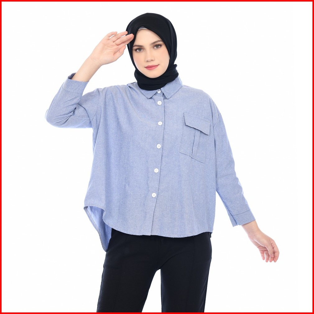 Mybamus Oxford Kemeja Tops - Atasan Wanita Kekinian - Kemeja Jumbo