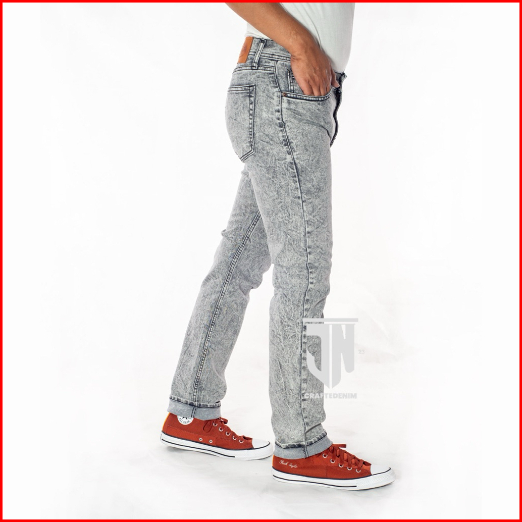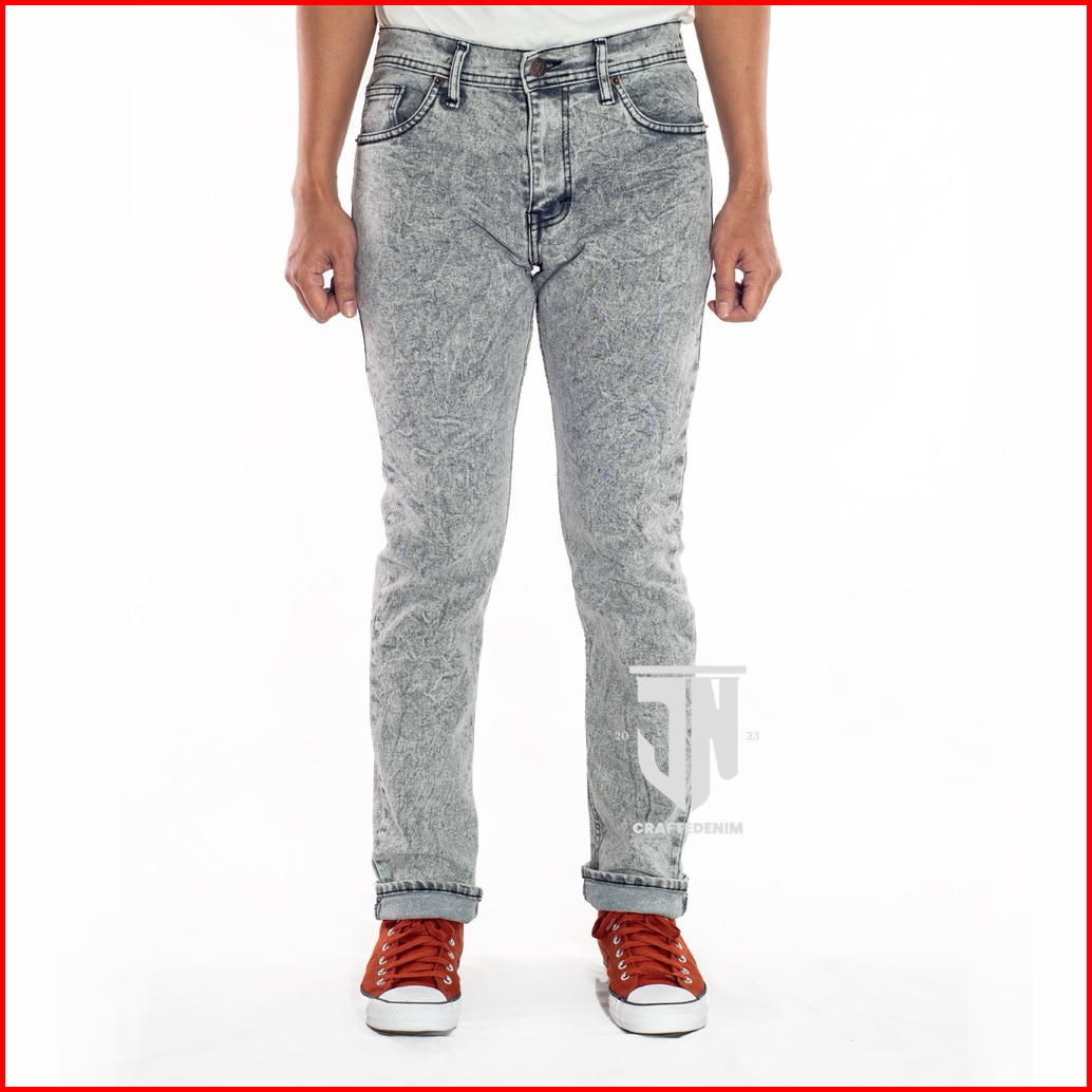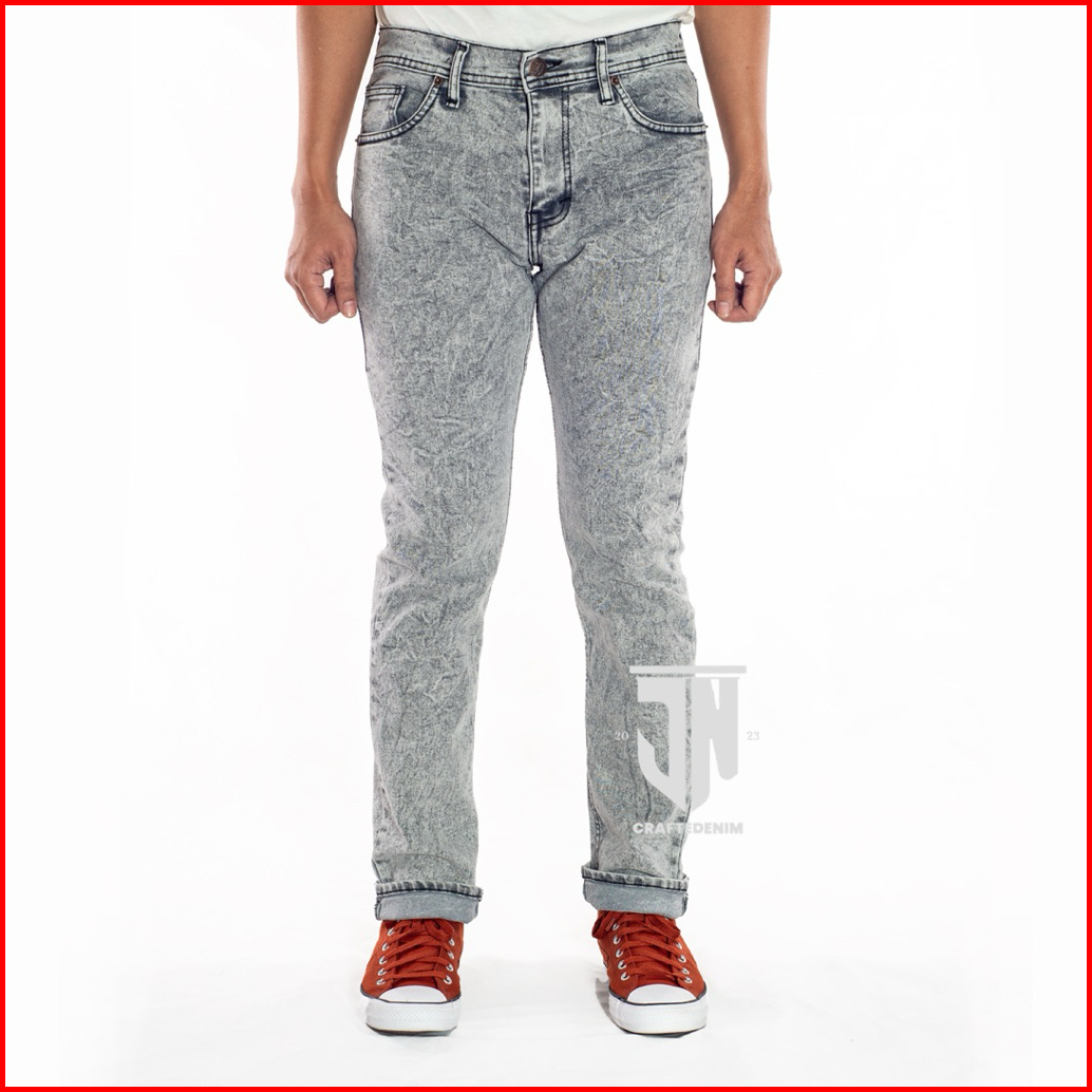 Skinny Jeans Pria Abu Sandwash Grey Acid Snow Grey
