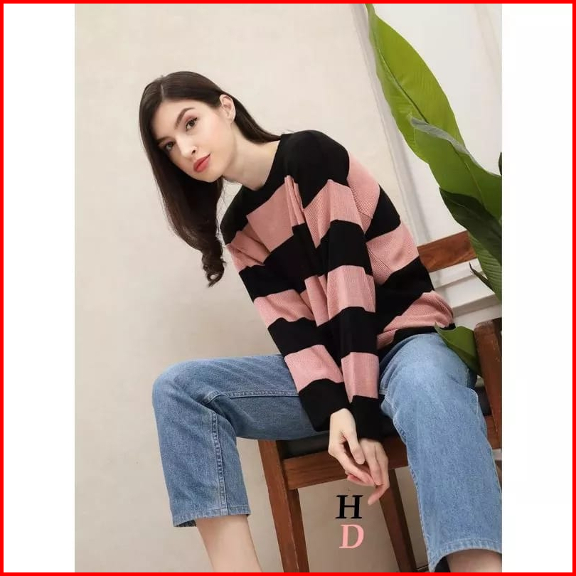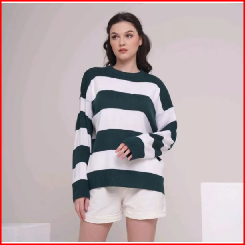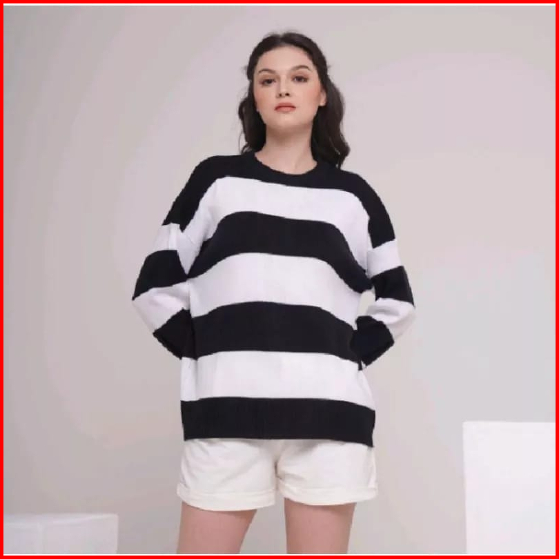 Eira Knit Baju Rajut Wanita Cotton Garis-garis