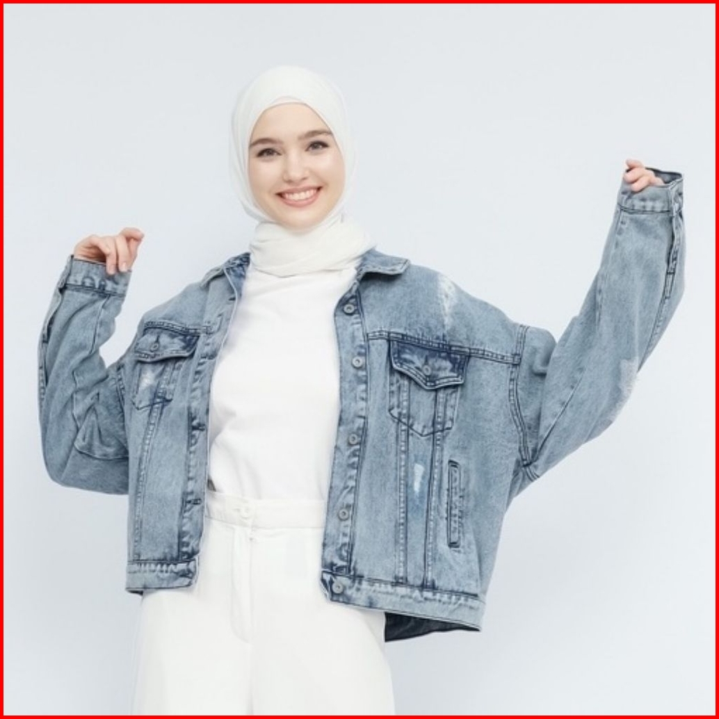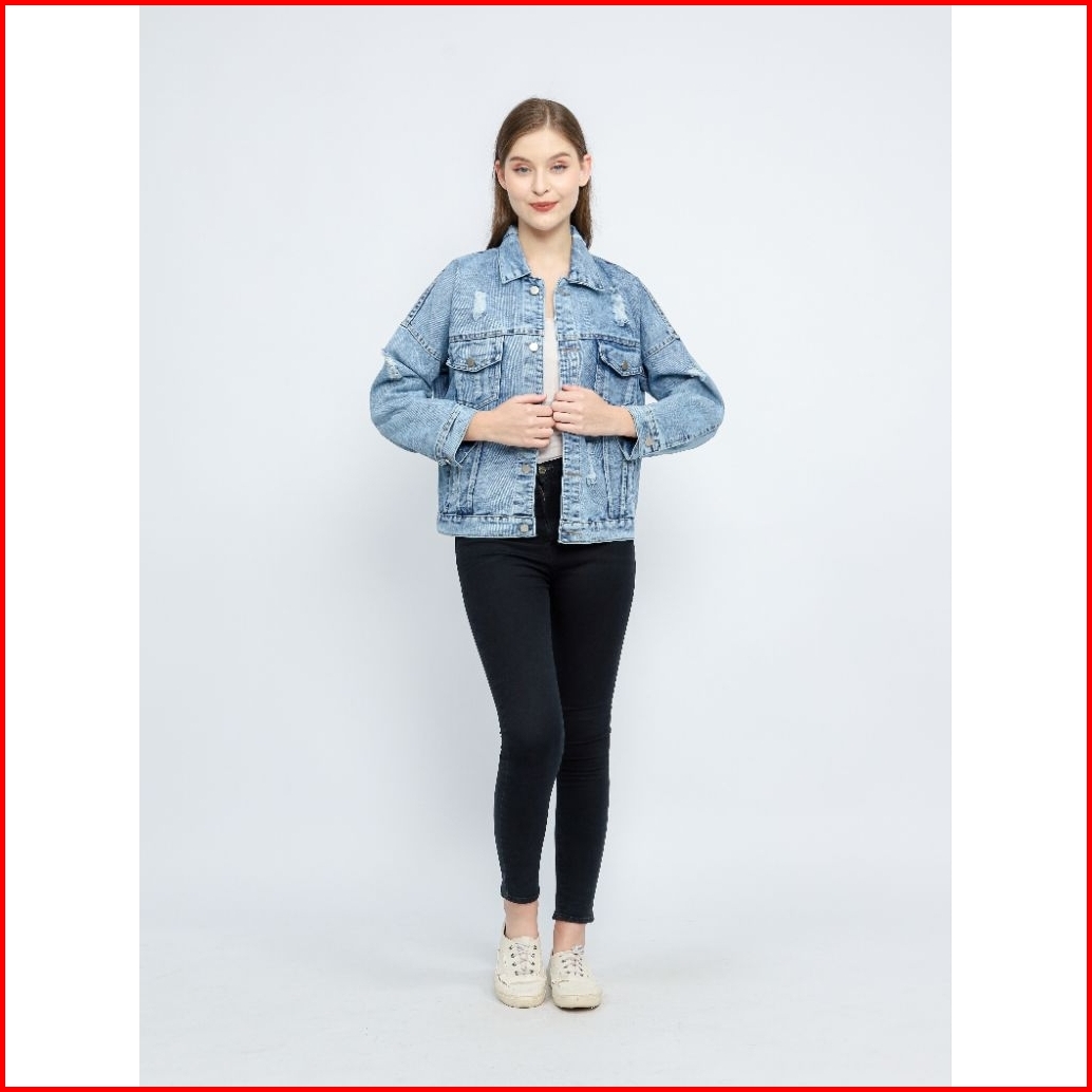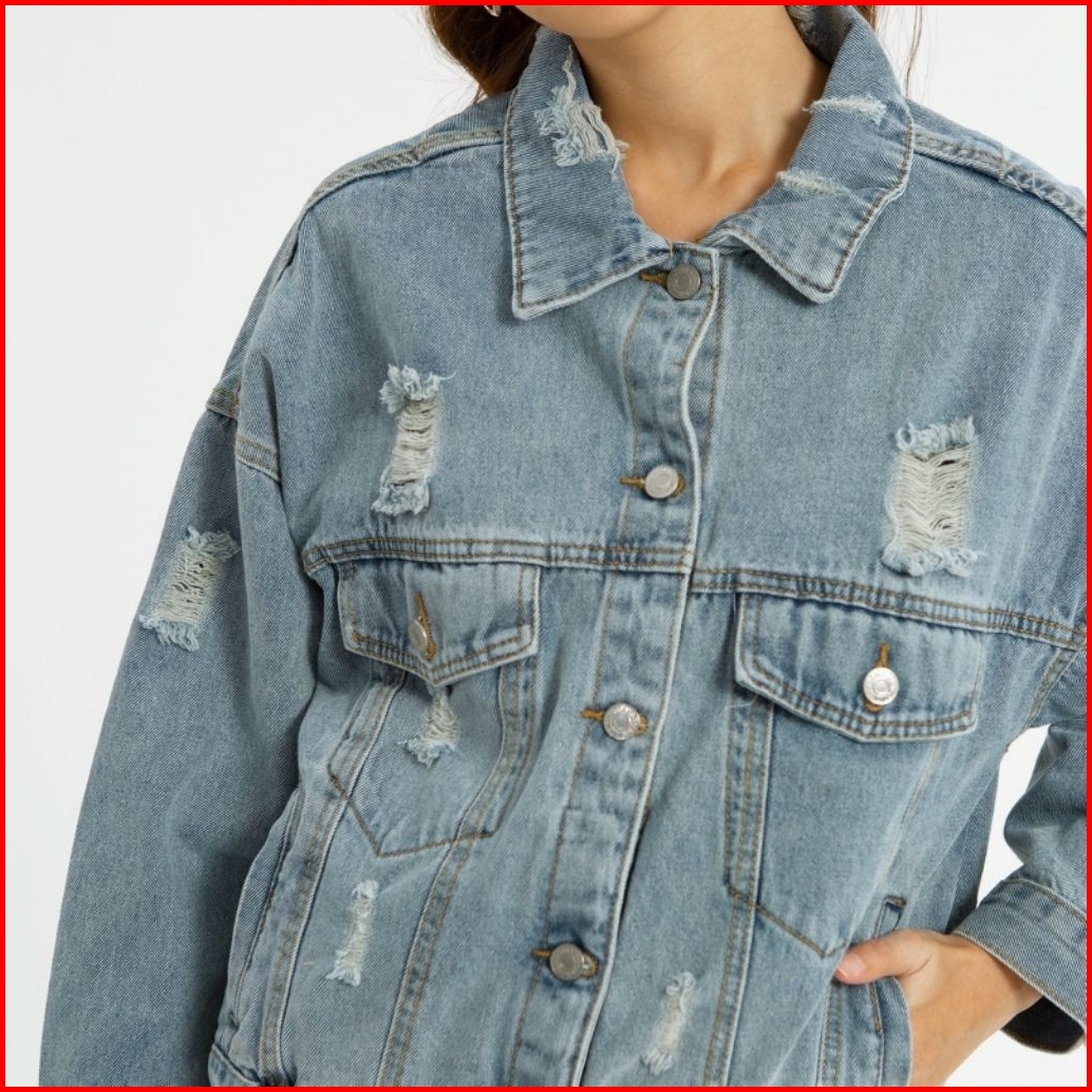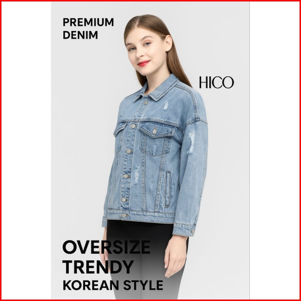 Jaket Jeans Wanita Oversize Ripped Korean Style Hicoo Jessy Denim Vintage Casual