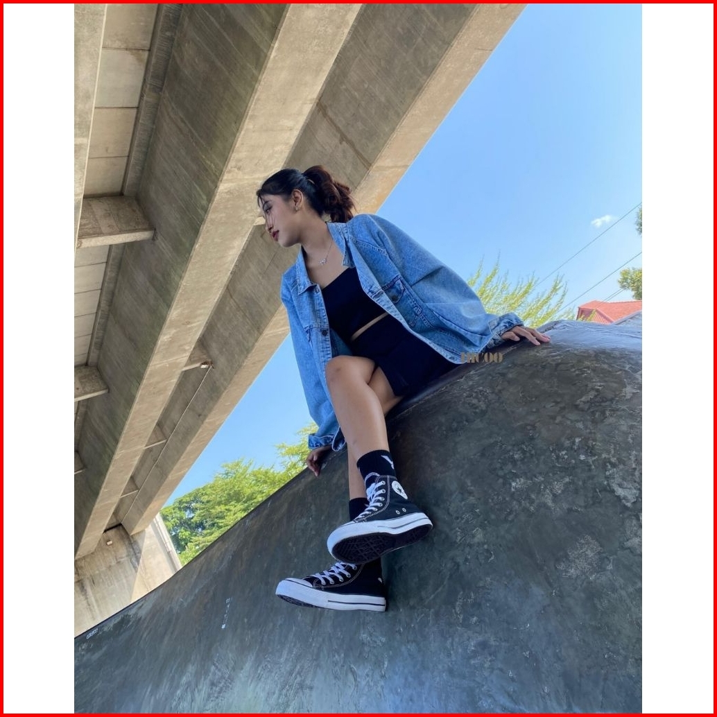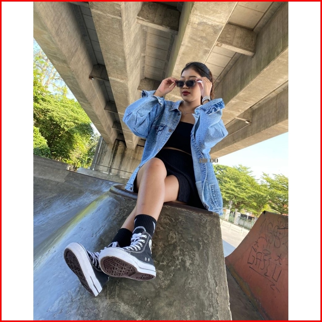 Hicoo - Lalisa Jaket Jeans Wanita Oversize Big Size Ld 128cm Denim Tebal Casual Korean Style