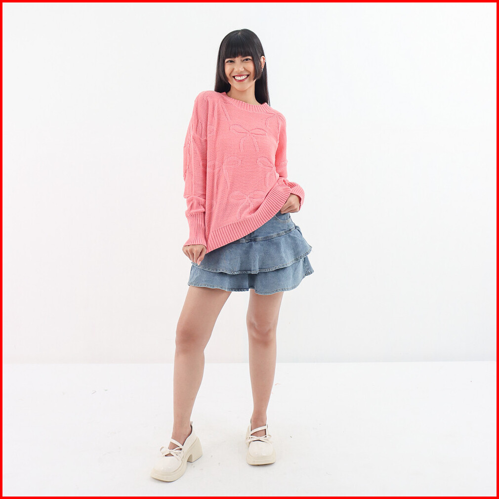 Loony - Ribbon Knit Crop Dusty Rose - Sweater