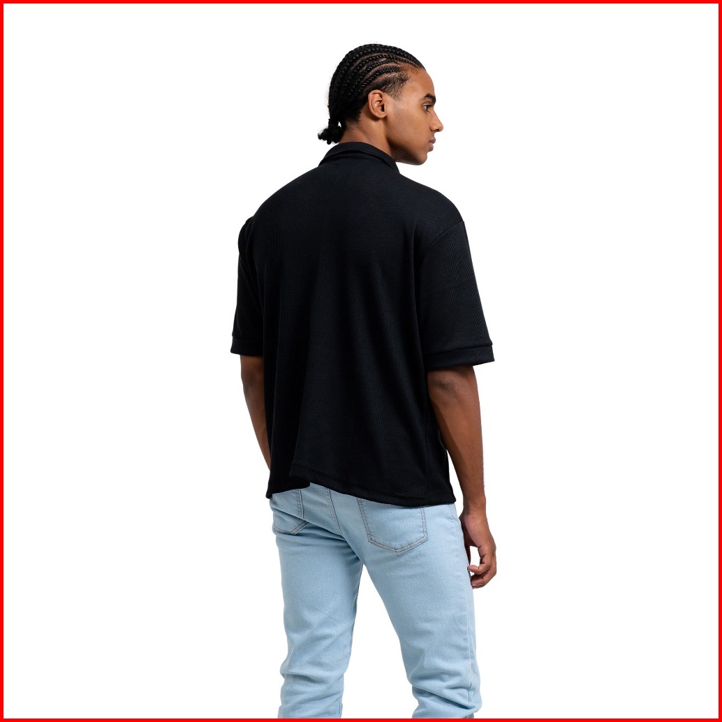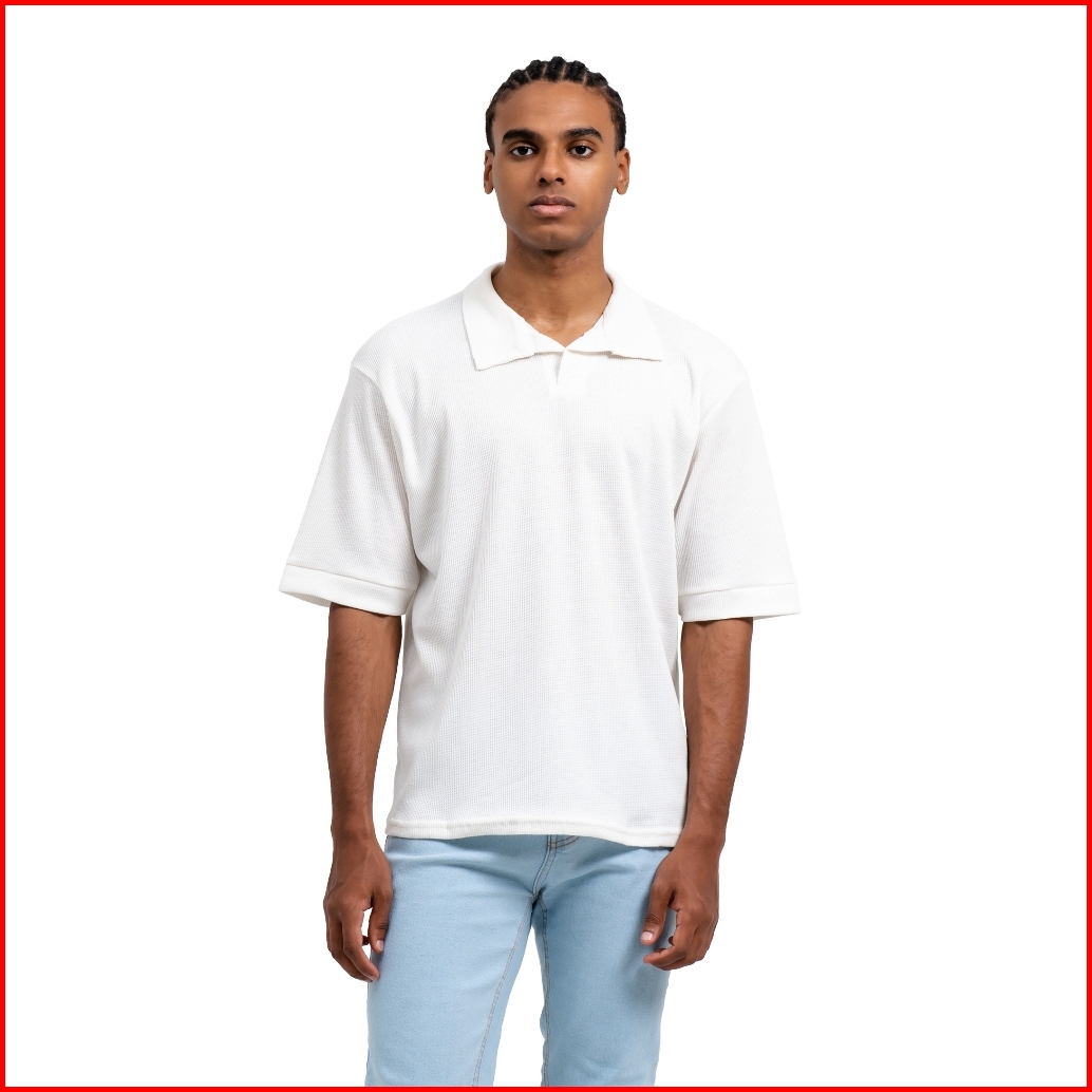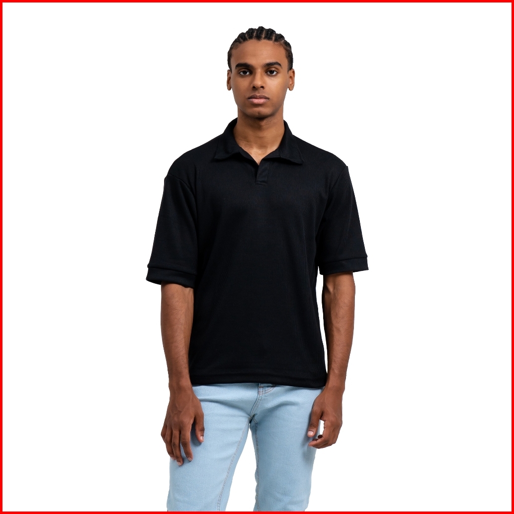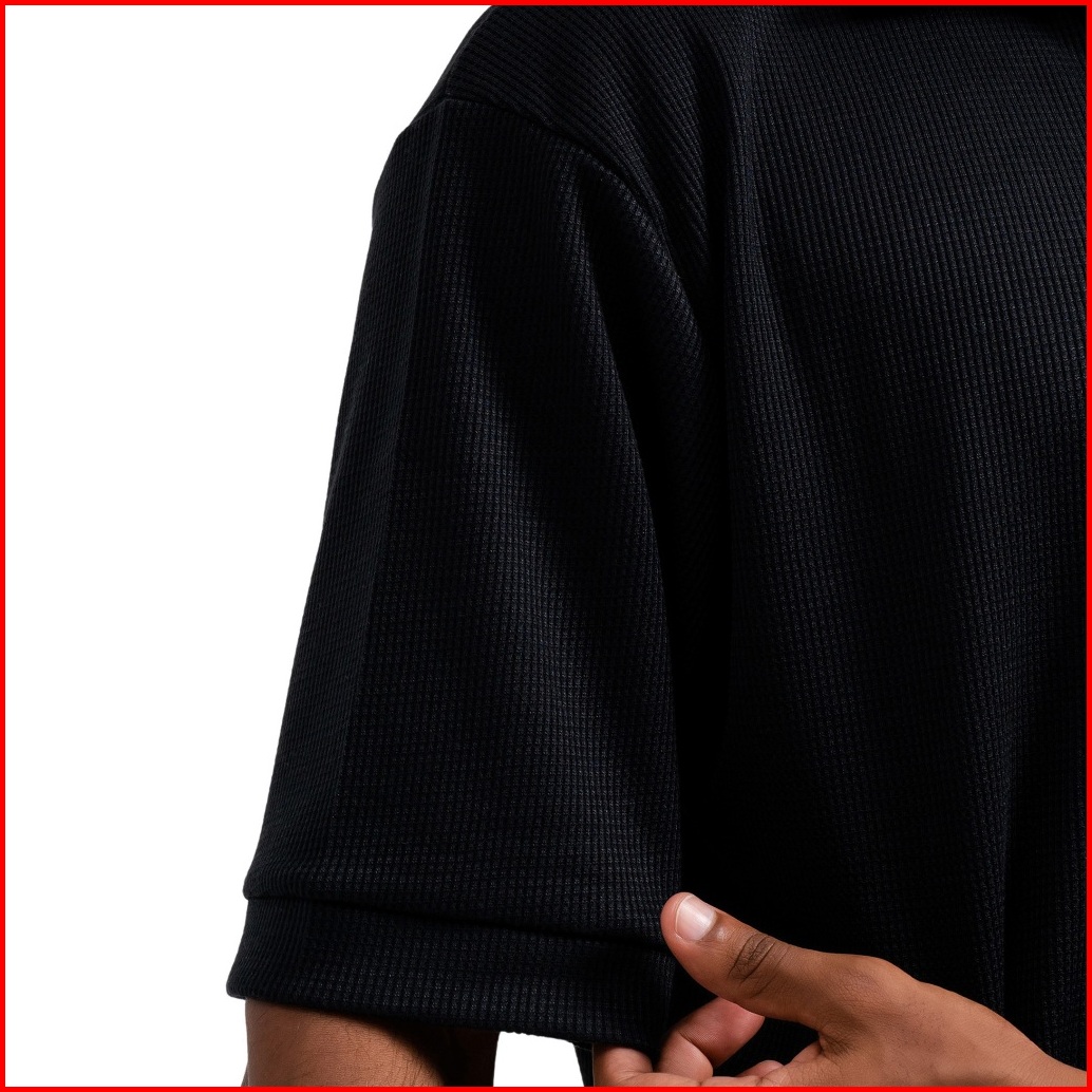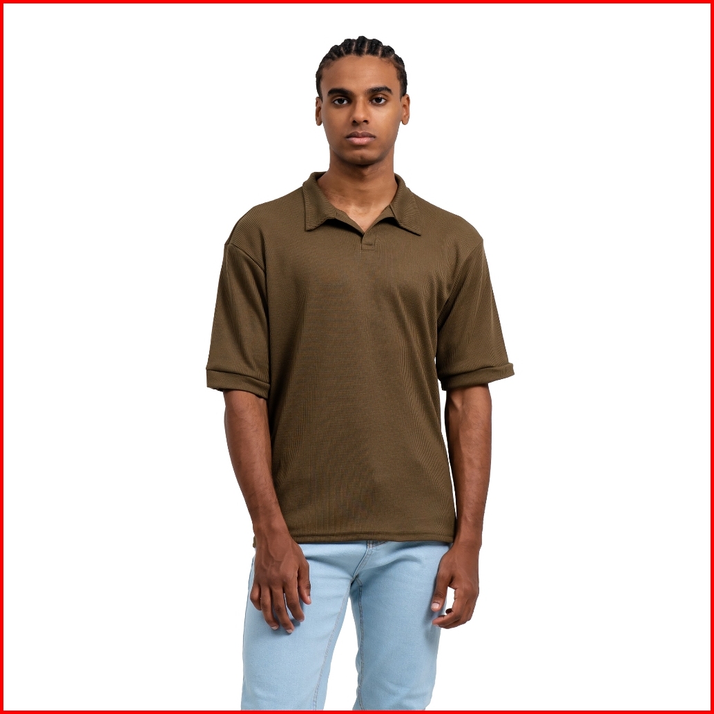 Ribsgold Polo Shirt Pria Waffle Short Lengan Pendek Katun Strech