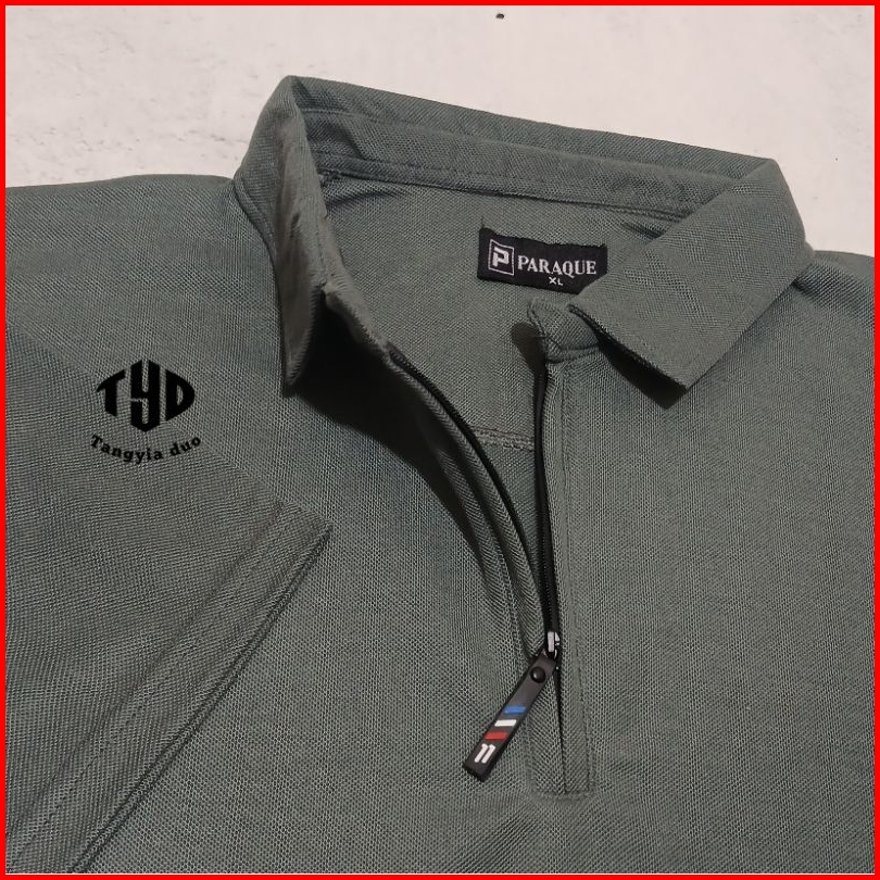 Tangyia Duo - Kaos Polo Shirt Polos Zipper Abu Soft M L Xl Xxl