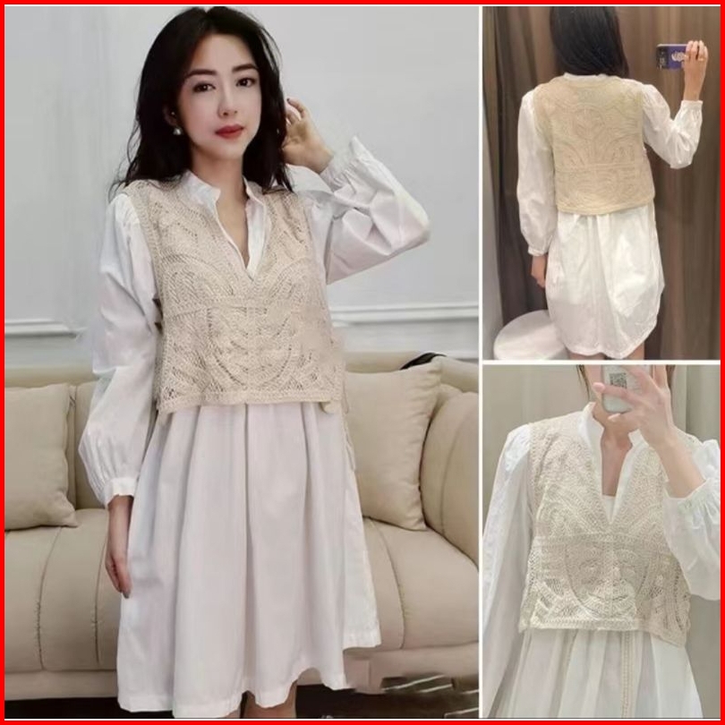 Bigsize Vest Rajut Rompi Wanita Korea Bunga-bunga