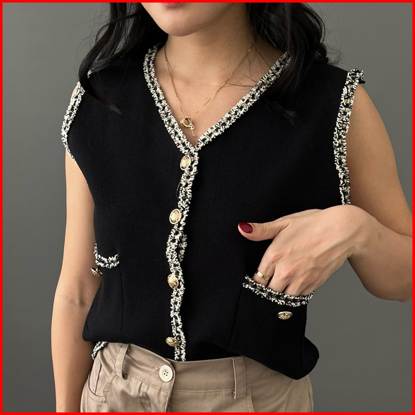 Minsa.id - Bora Vest Knit Tweed Premium Import