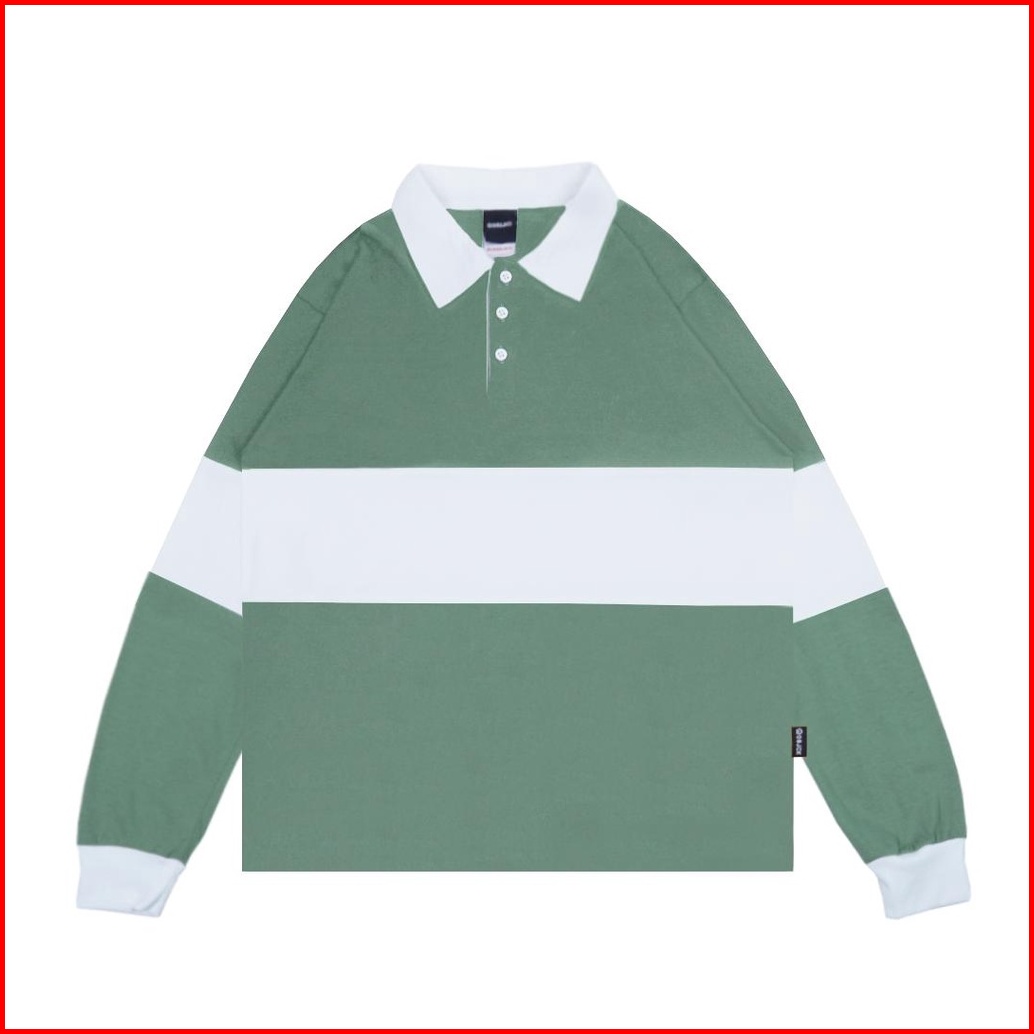 Dobujack Rugby Shirt Hooper White Sage Green Longsleeve