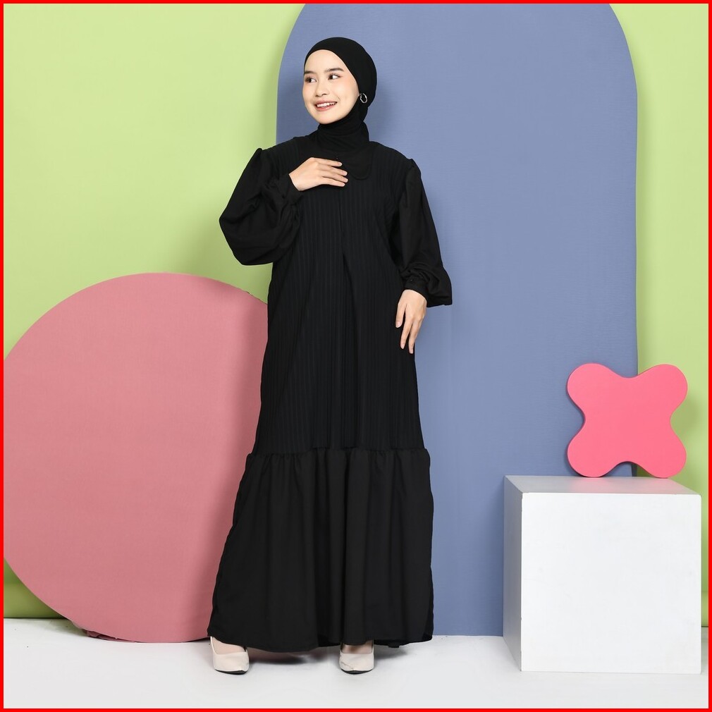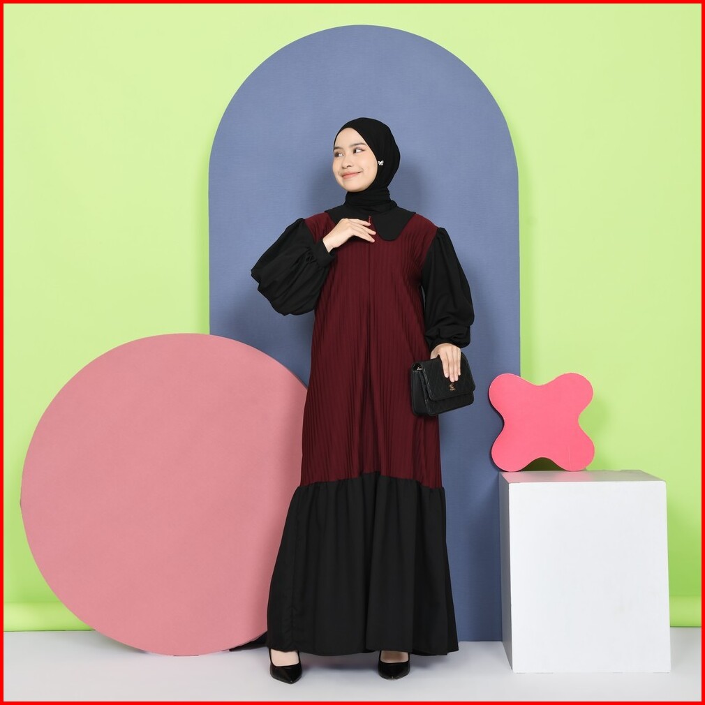 Mybamus Jinny Collar Dress - Dress Lengan Balon - Gamis Sleting - Dress Panjang Gamis Lebaran 2025