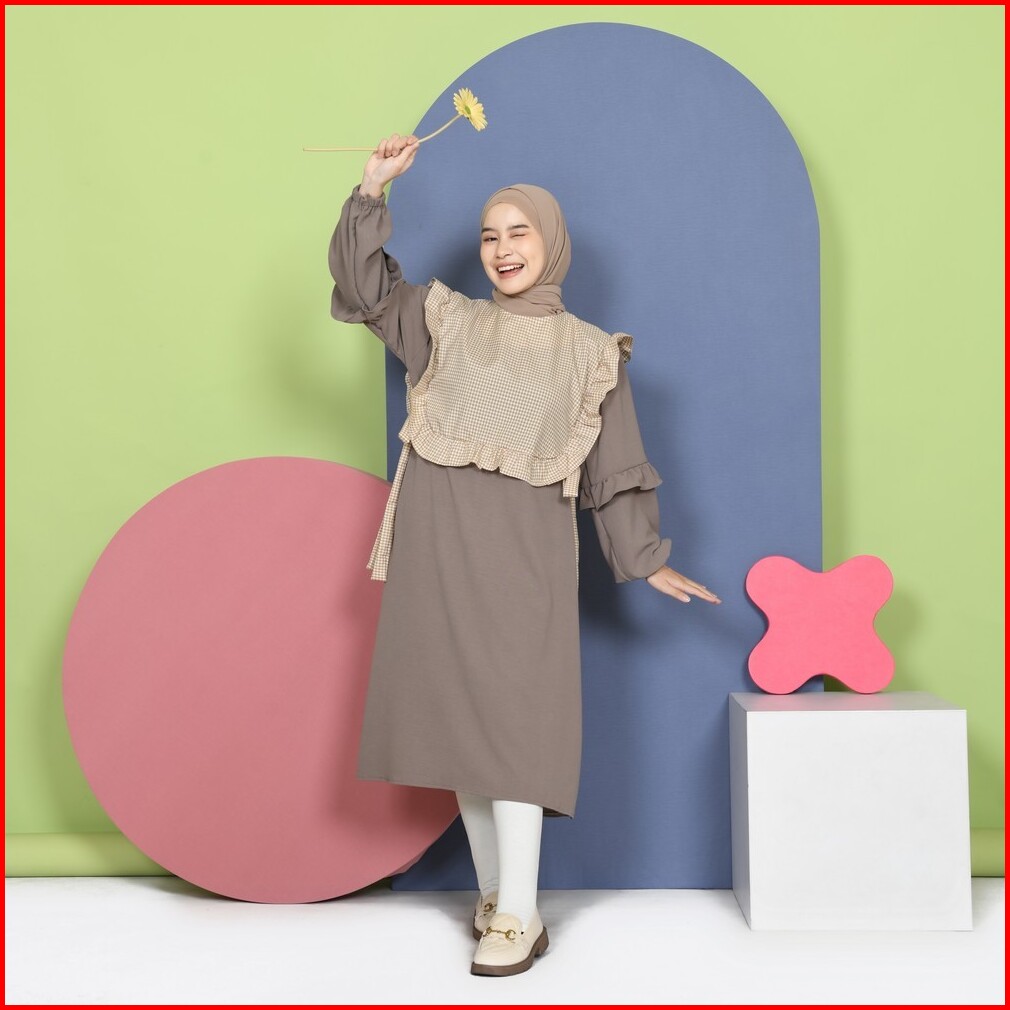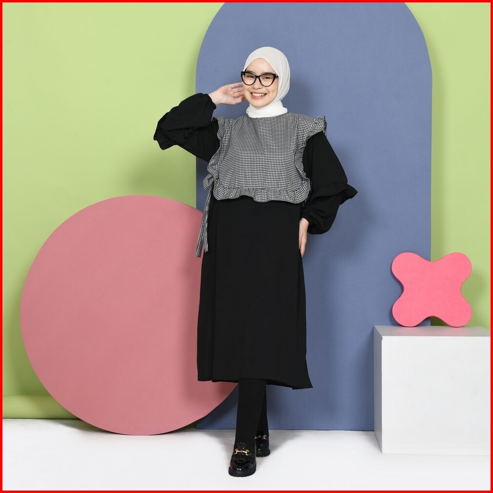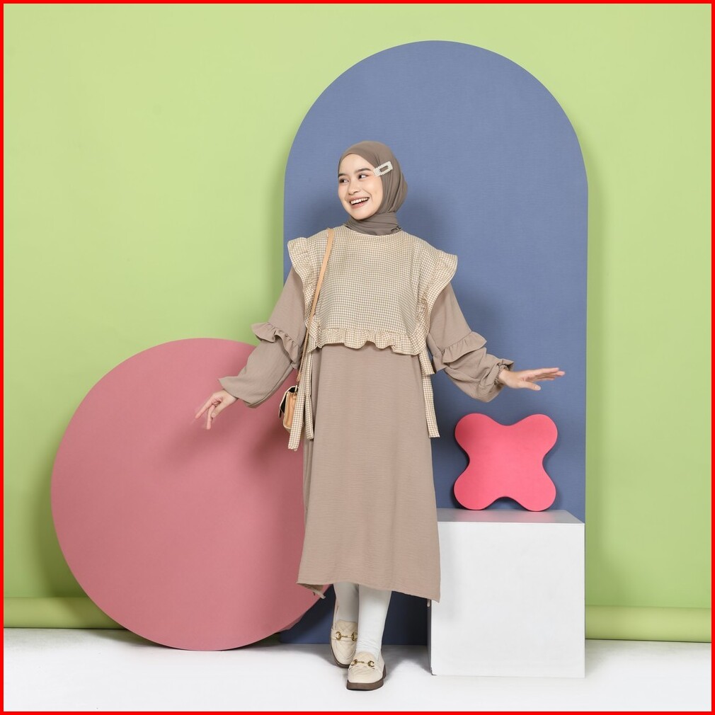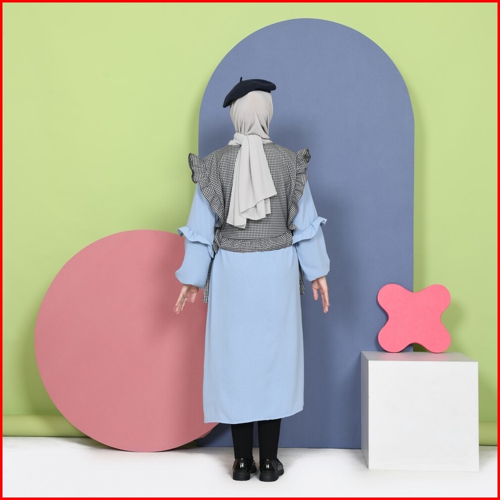 Mybamus Ameena Tunik Vest - Atasan Muslim Wanita - Tunik Kekinian - Midi Dress 2in1 Outer