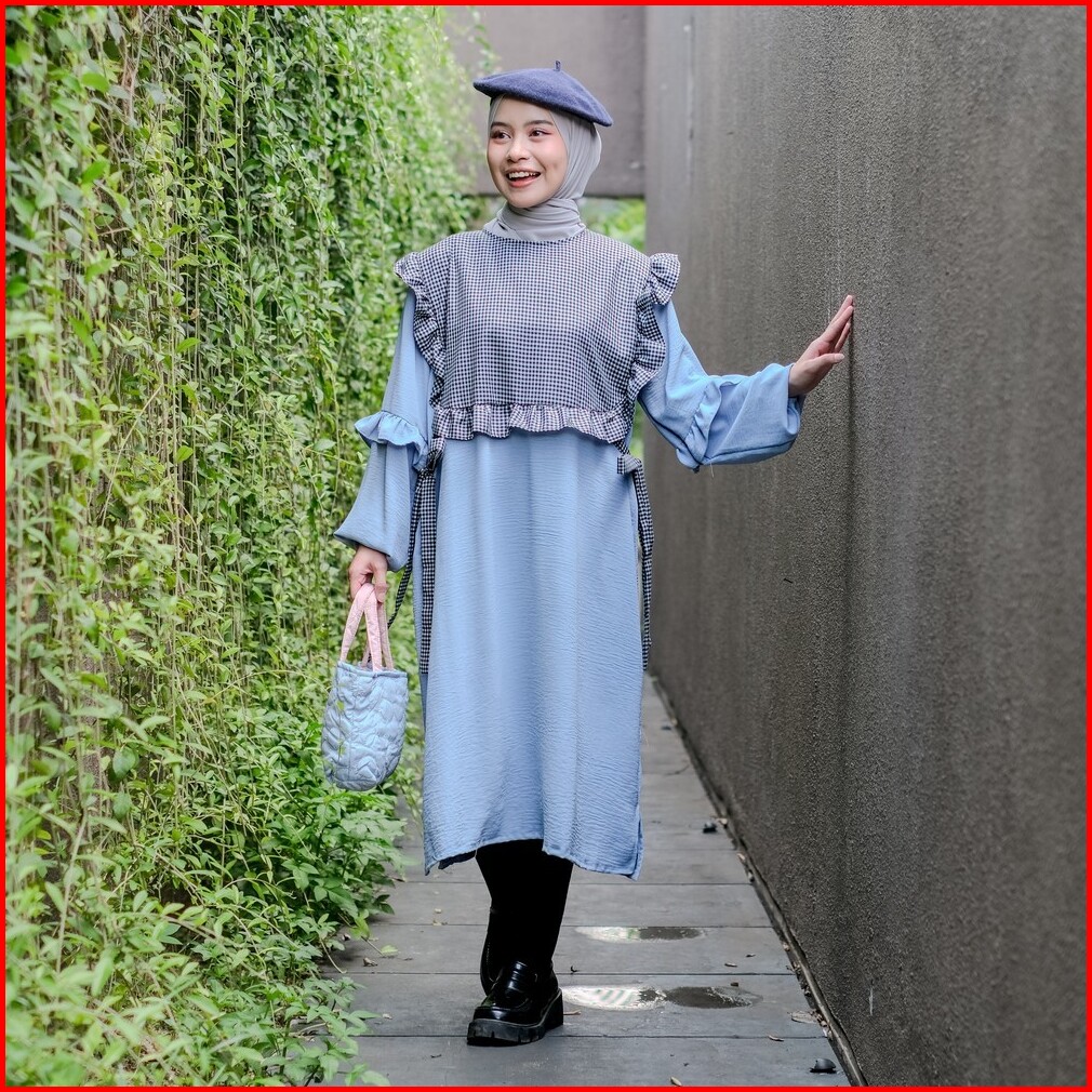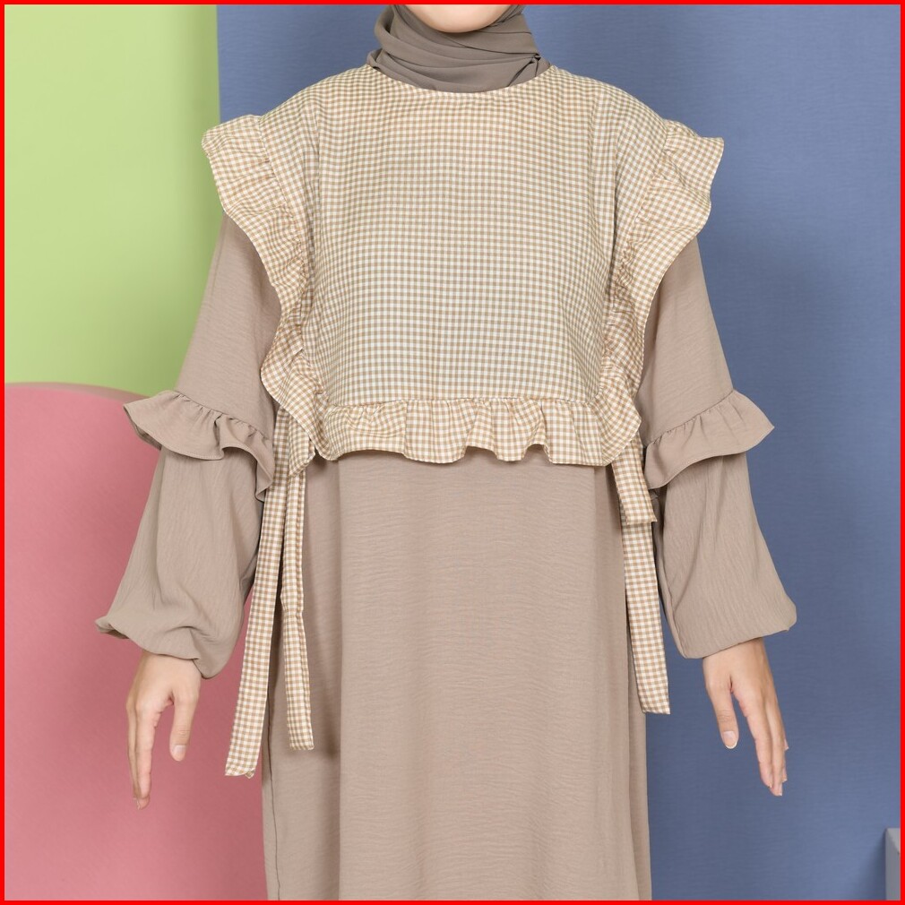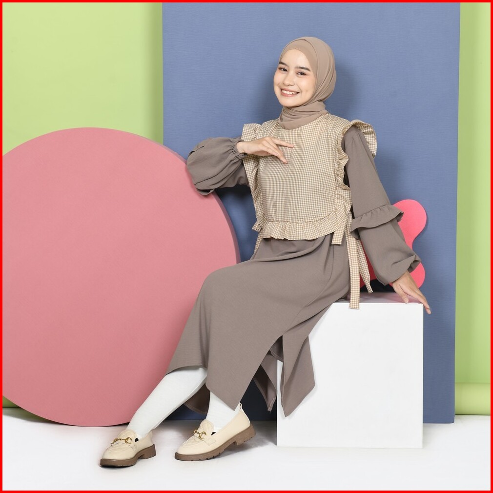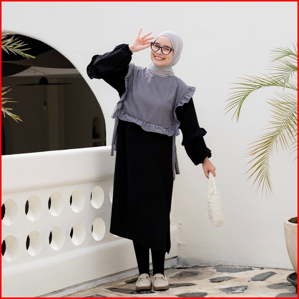 Mybamus Ameena Tunik Vest - Atasan Muslim Wanita - Tunik Kekinian - Midi Dress 2in1 Outer