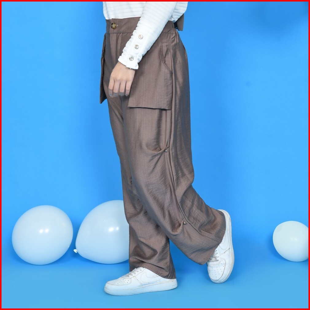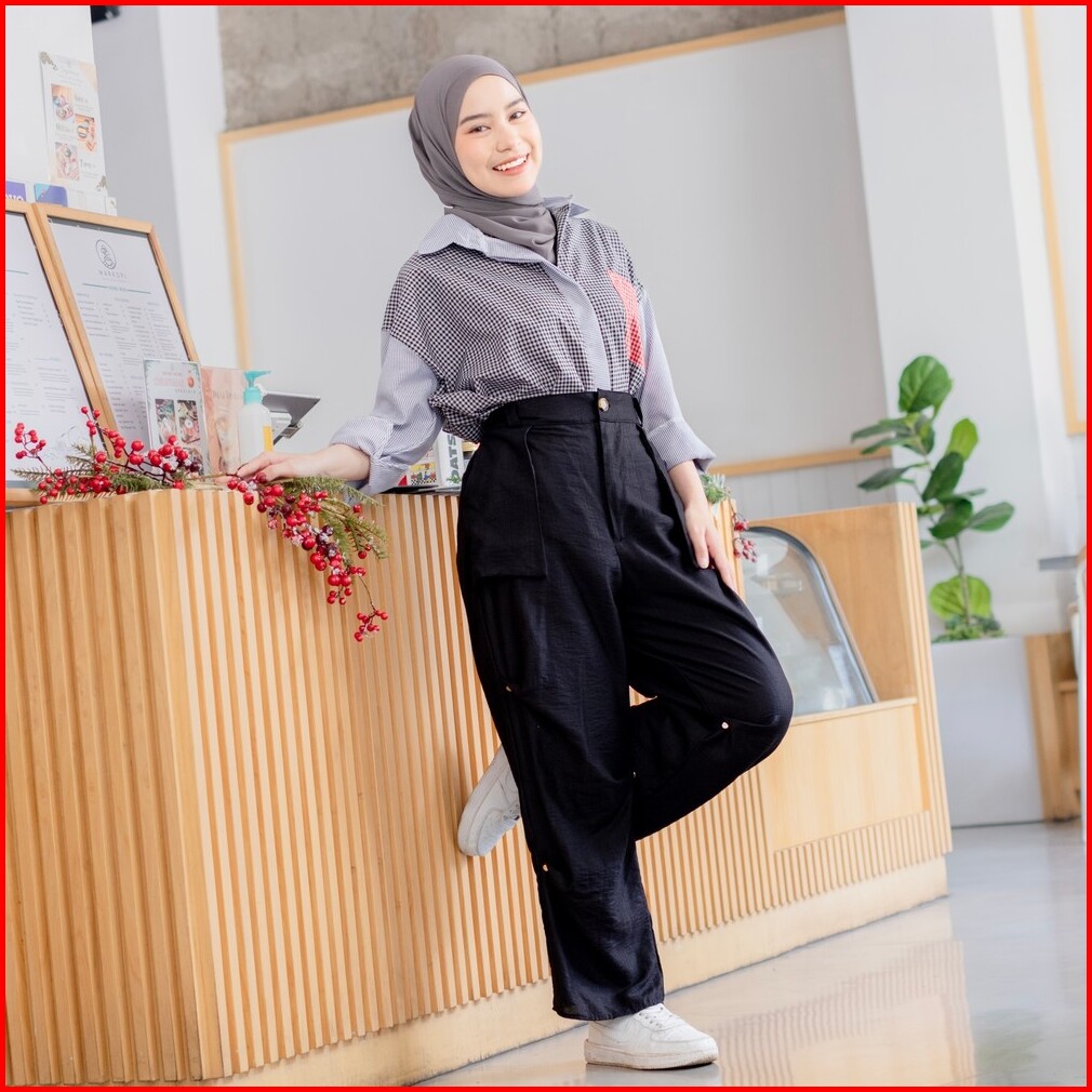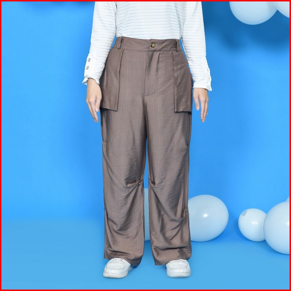 Mybamus Button Up Pants Celana Cargo Wanita Kekinian Celana Bahan Celana Panjang