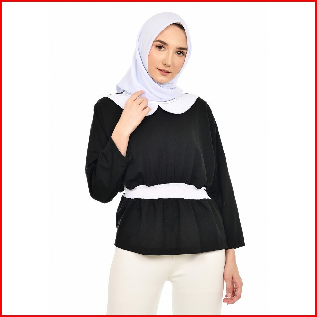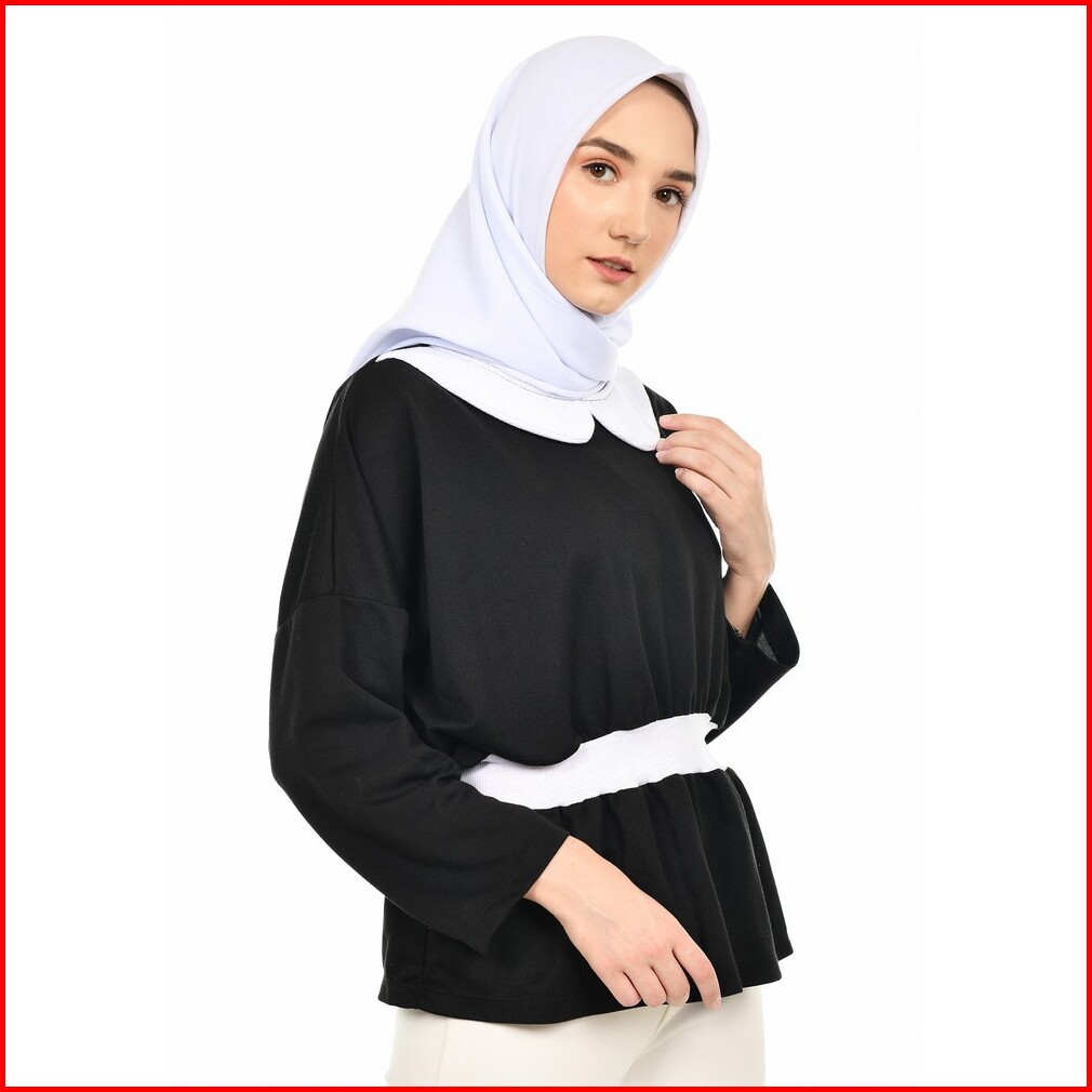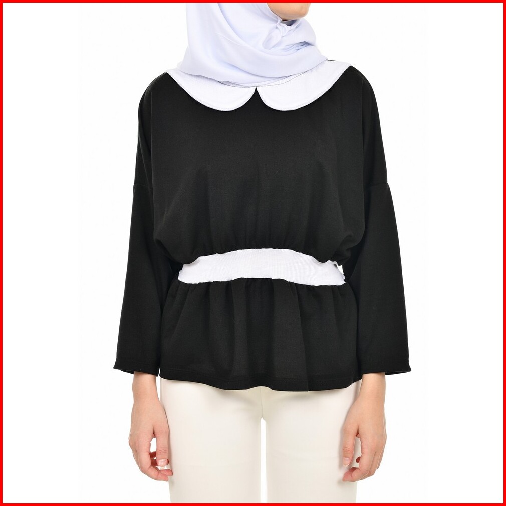 Mybamus Basagita Wrinkle Tops Black White M16370 R74s3 - Atasan Muslim