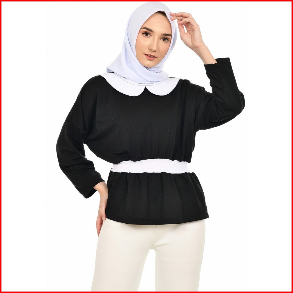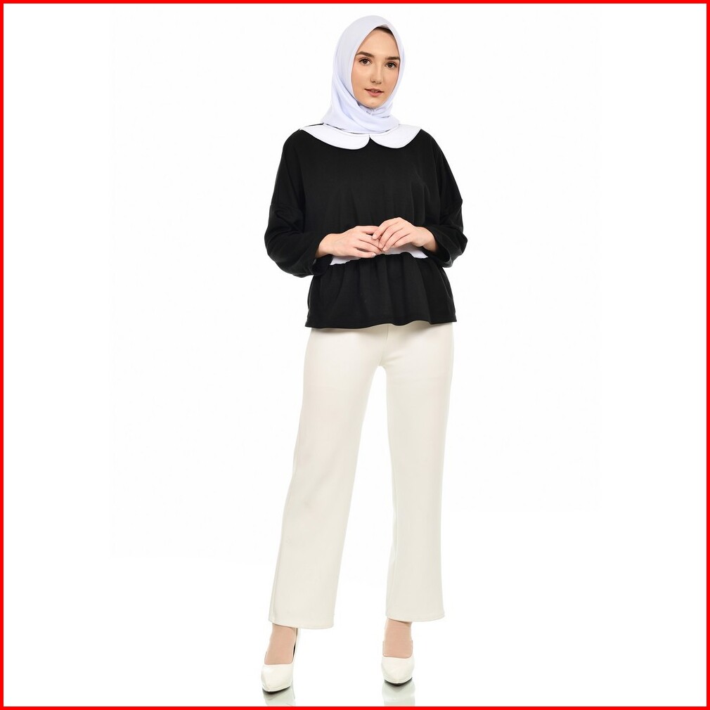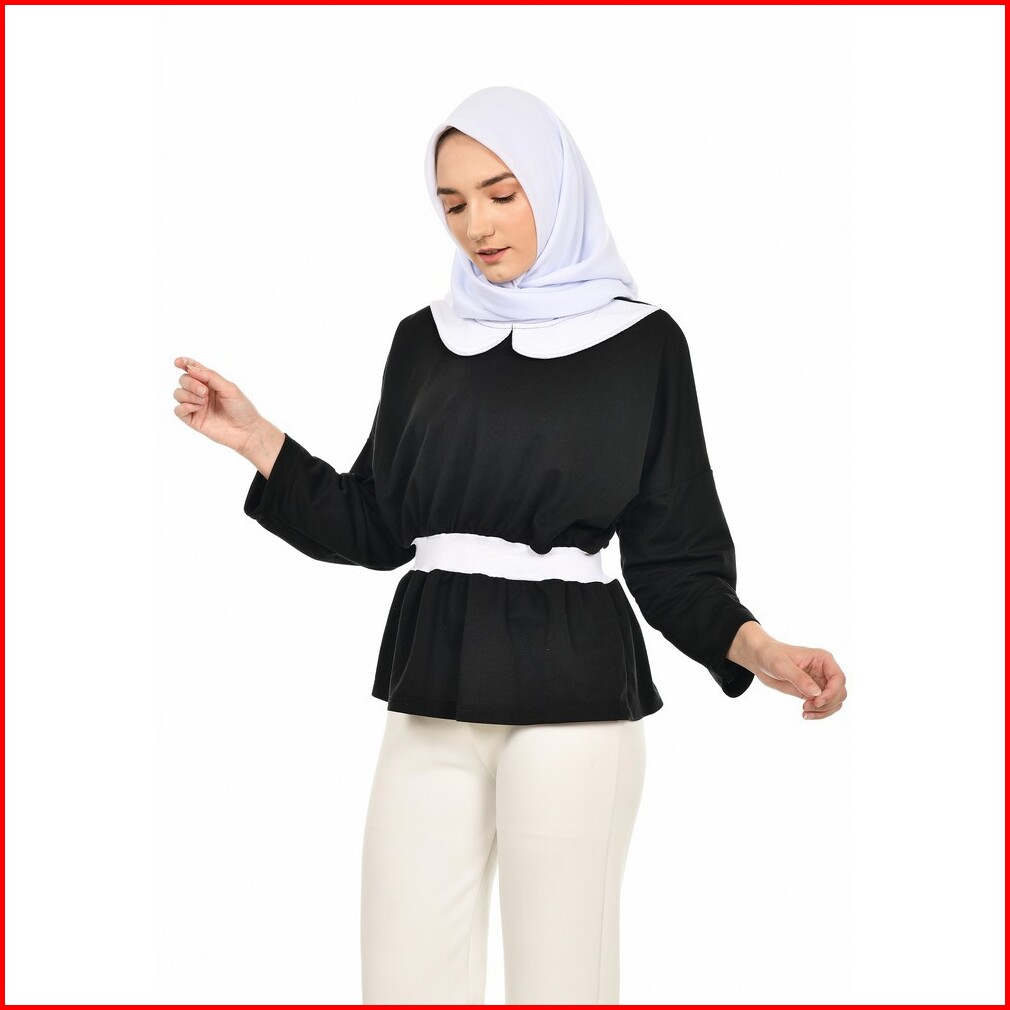 Mybamus Basagita Wrinkle Tops Black White M16370 R74s3 - Atasan Muslim