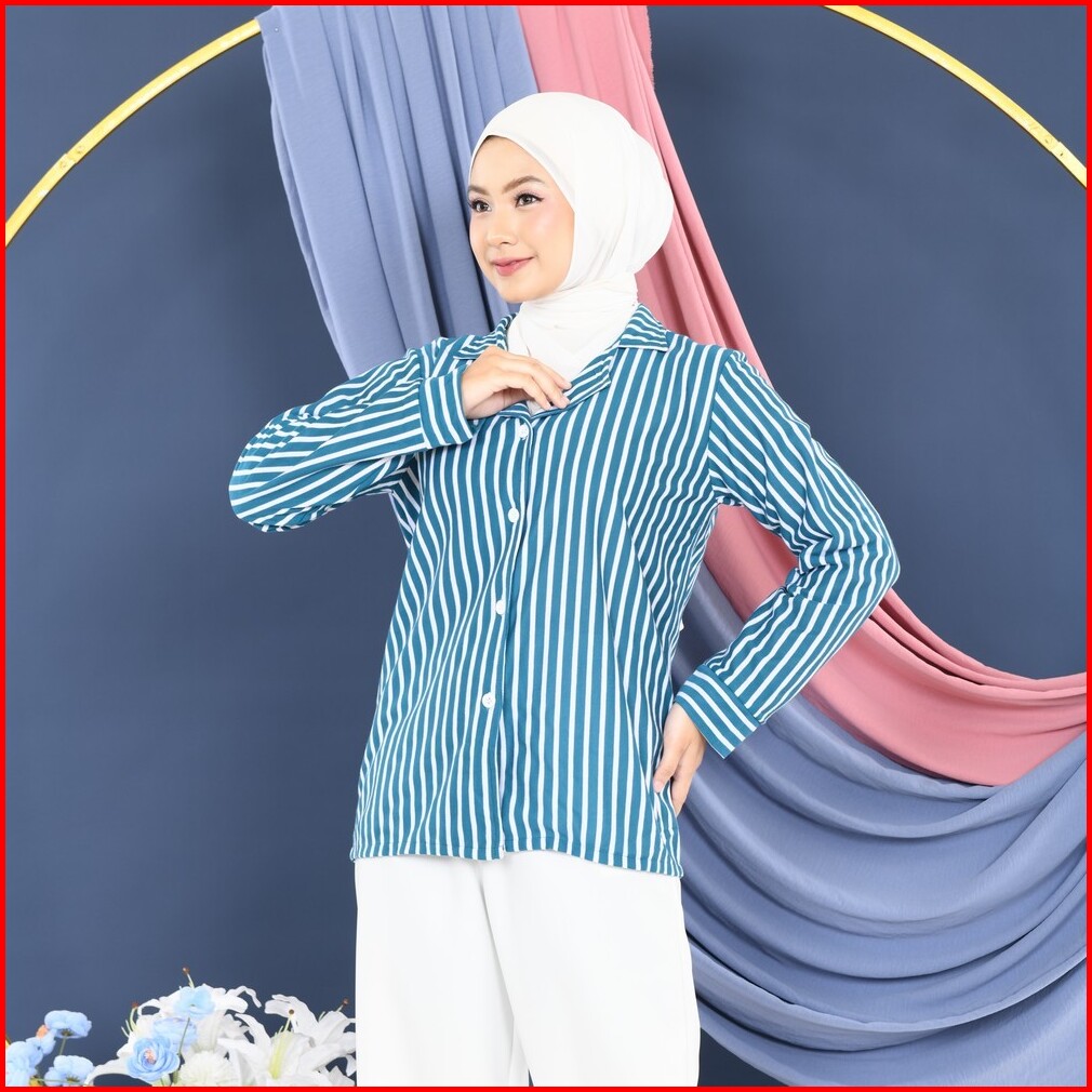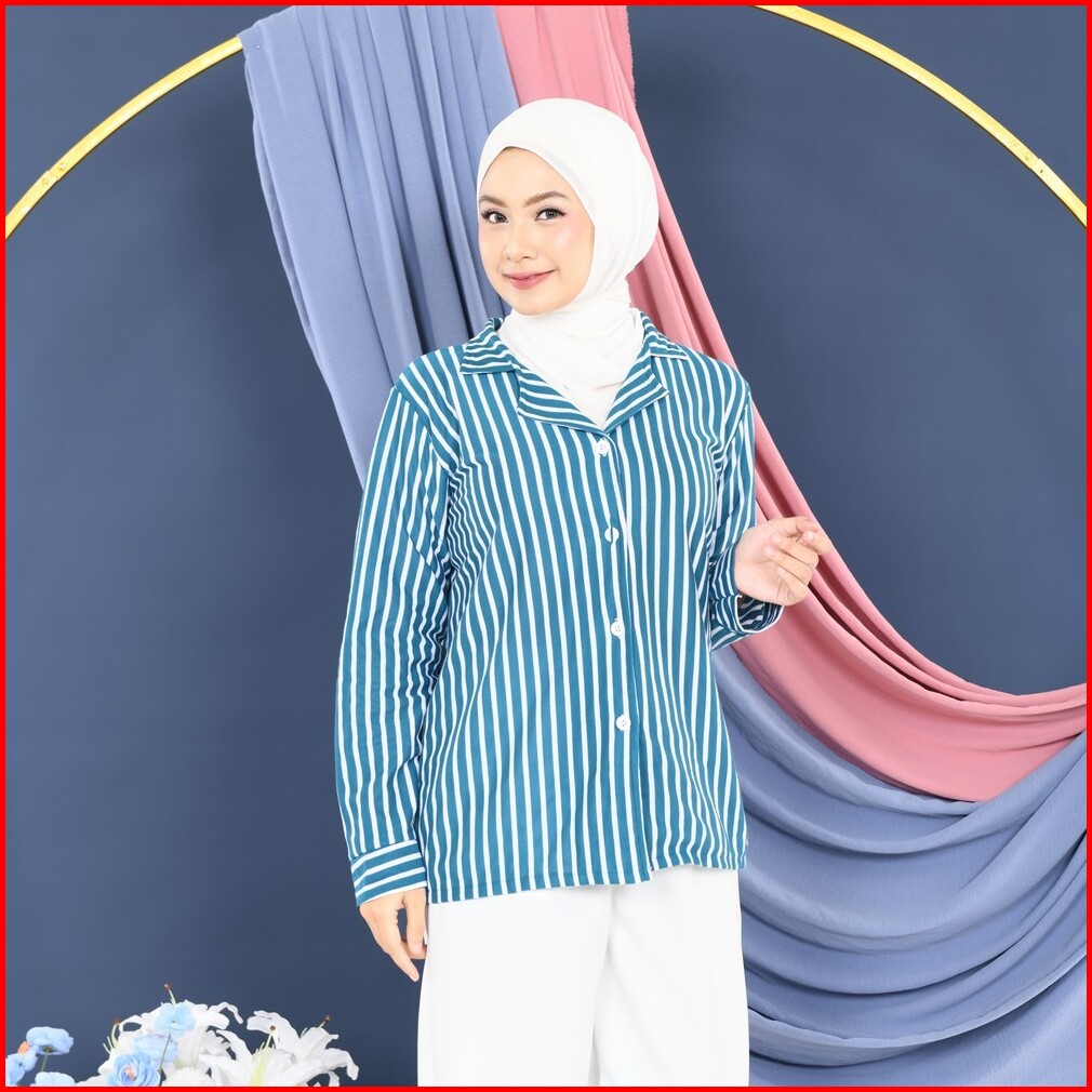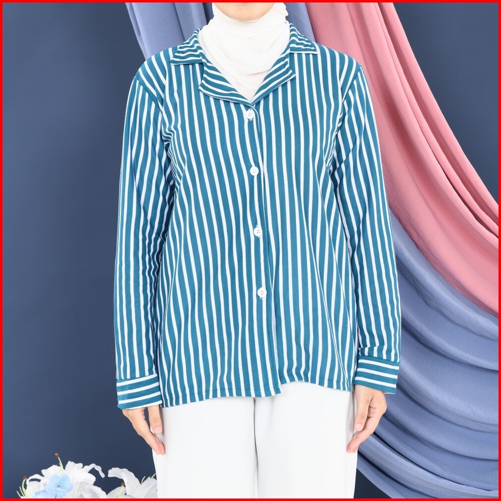 Mybamus Behati Stripe Shirt Eden Green M16126 R5s6 - Atasan Muslim
