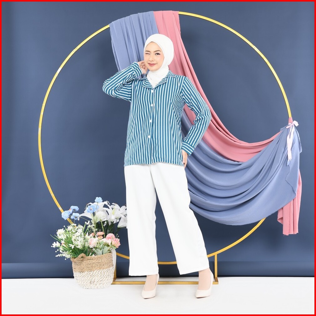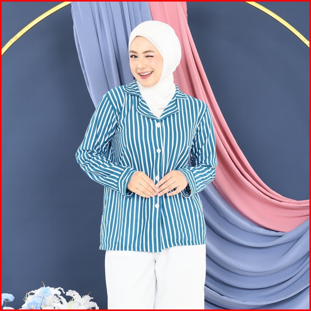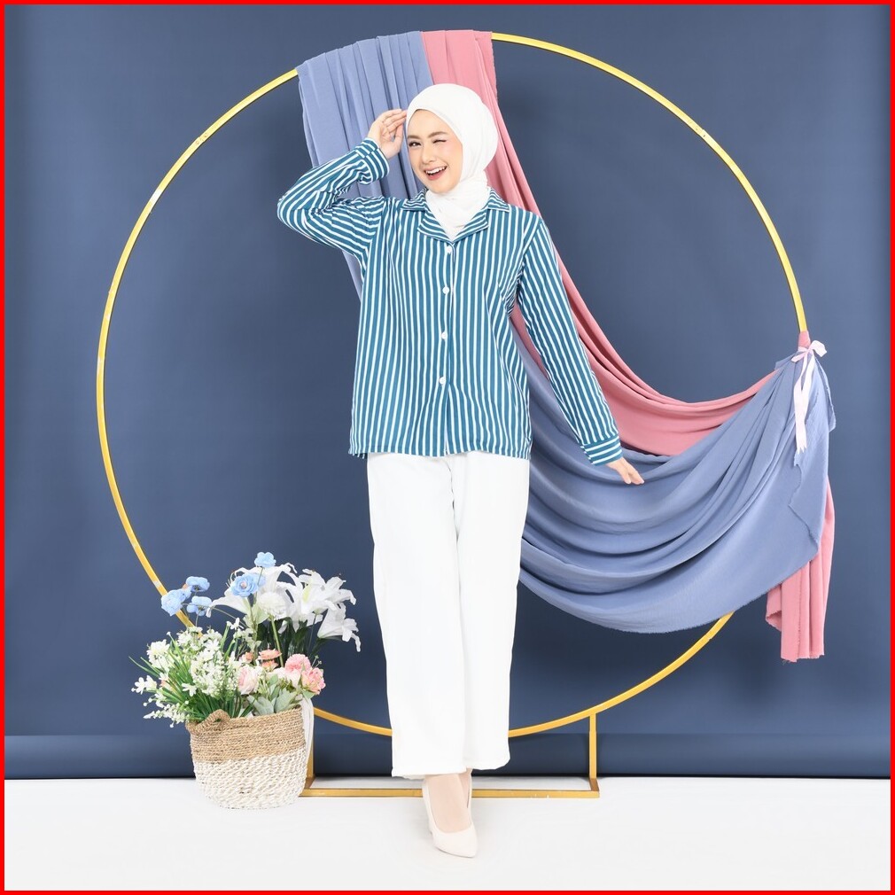 Mybamus Behati Stripe Shirt Eden Green M16126 R5s6 - Atasan Muslim