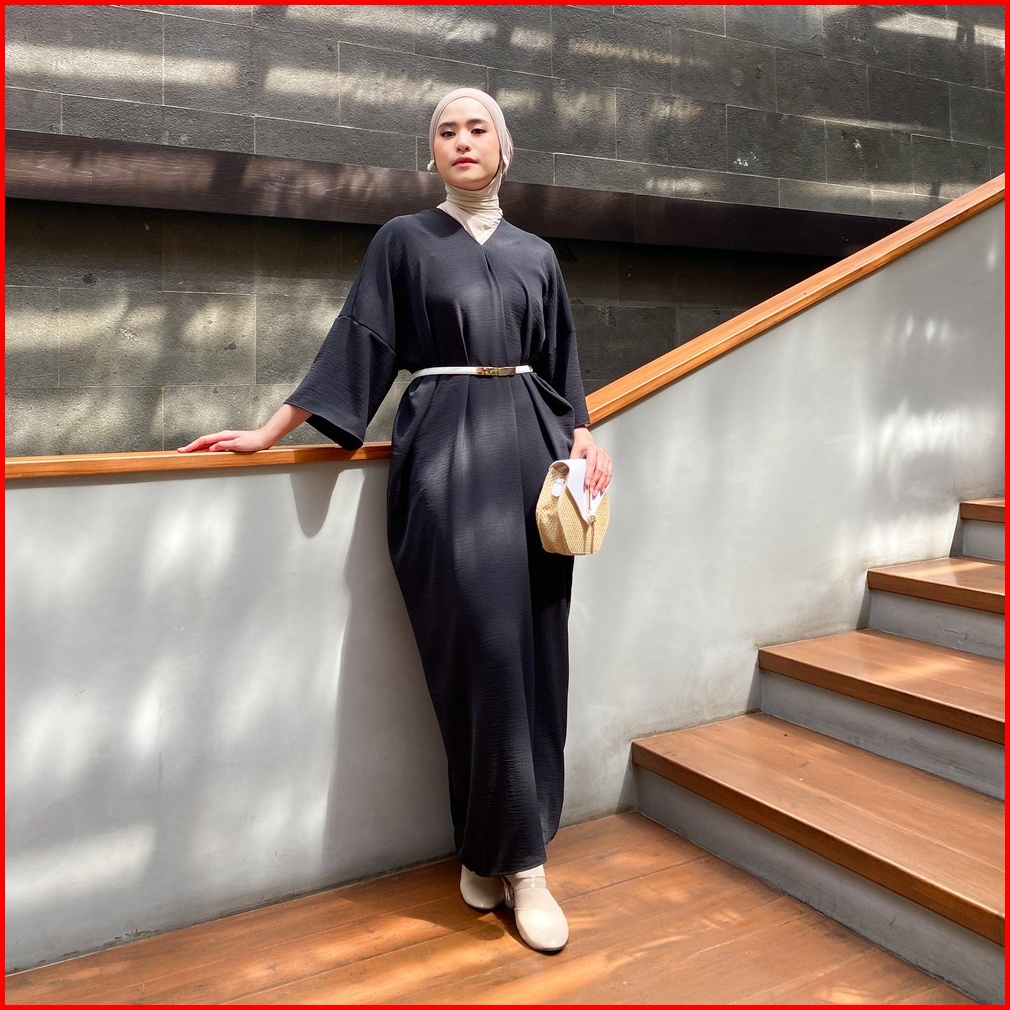 Mybamus Deby Kaftan V Neck Kaftan Wanita Gamis Polos Wanita Kaftan Kekinian