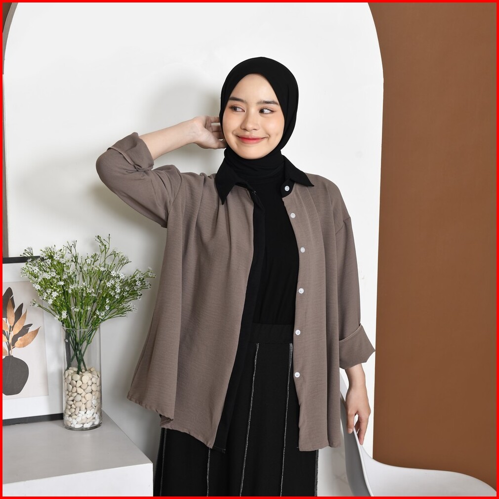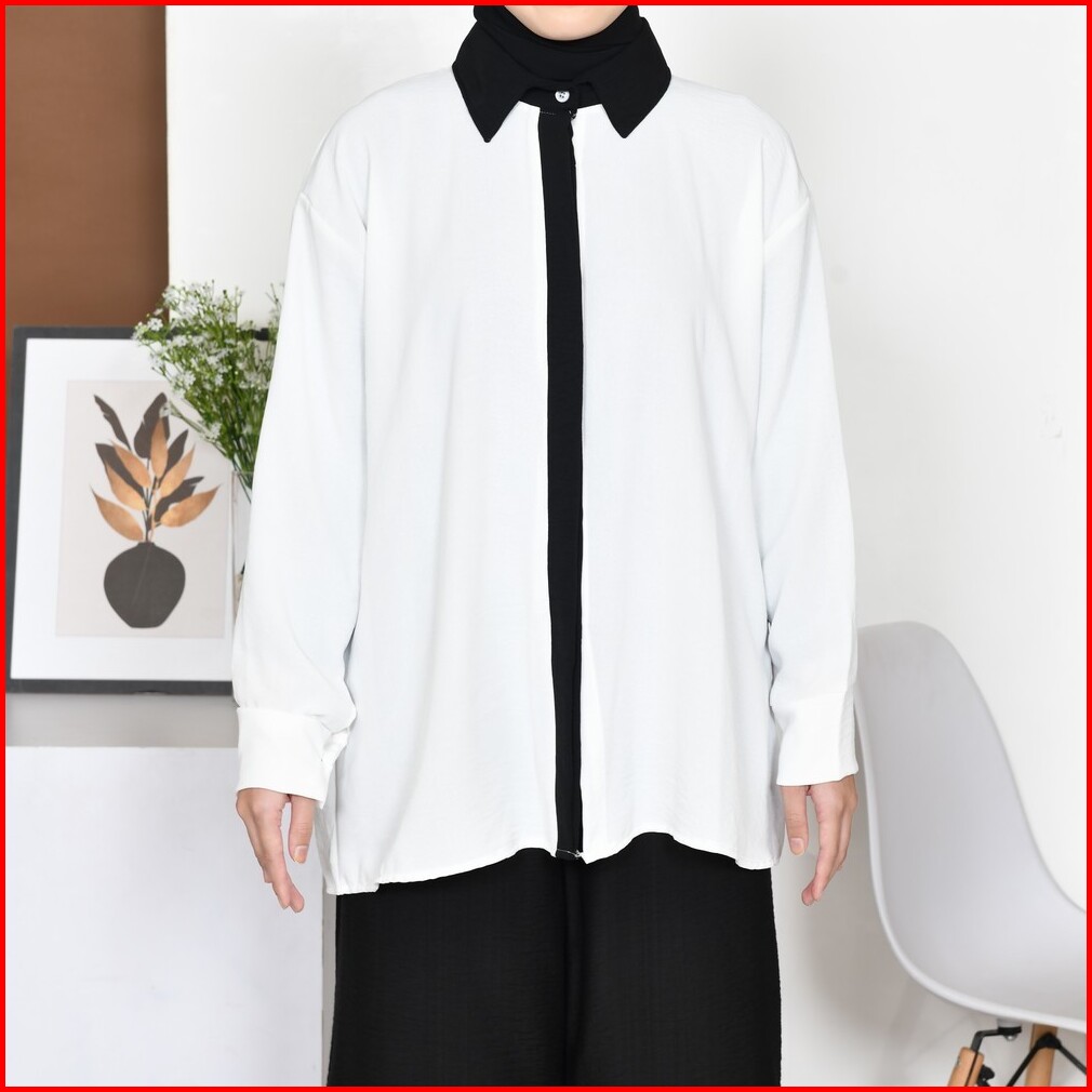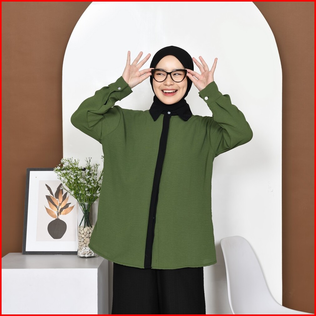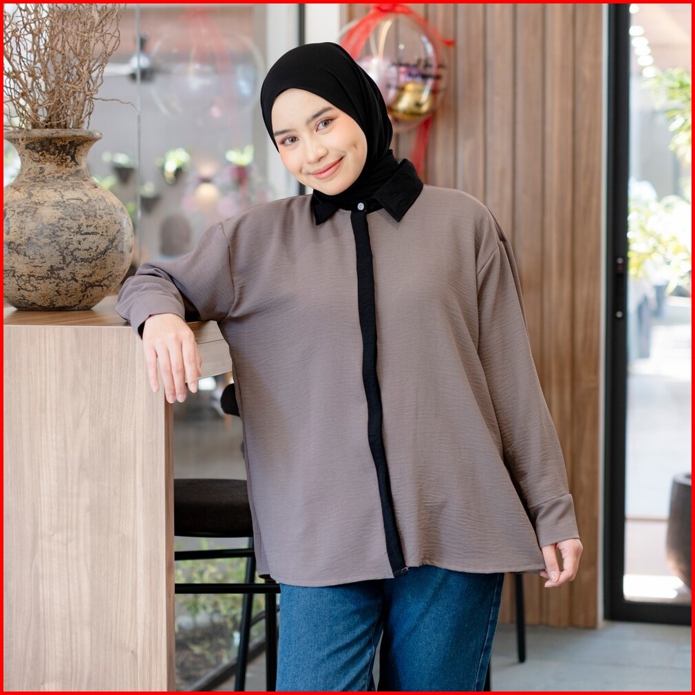 Mybamus Cia Kemeja List Kemeja Wanita Color Block Atasan Tangan Panjang Kemeja Kerja Wanita