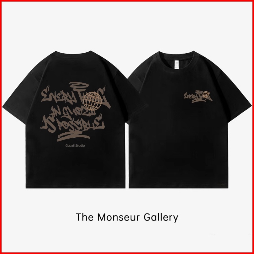 The Monseur Gallery T-shirt Oversize Brown Letters Kaos Hitam A0873