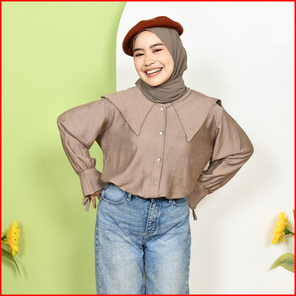 Mybamus X Kim.m4ger Kima Collar Shirt Kemeja Wanita Atasan Korea Kekinian