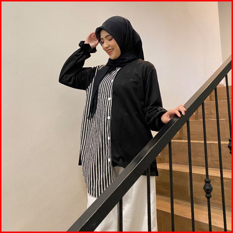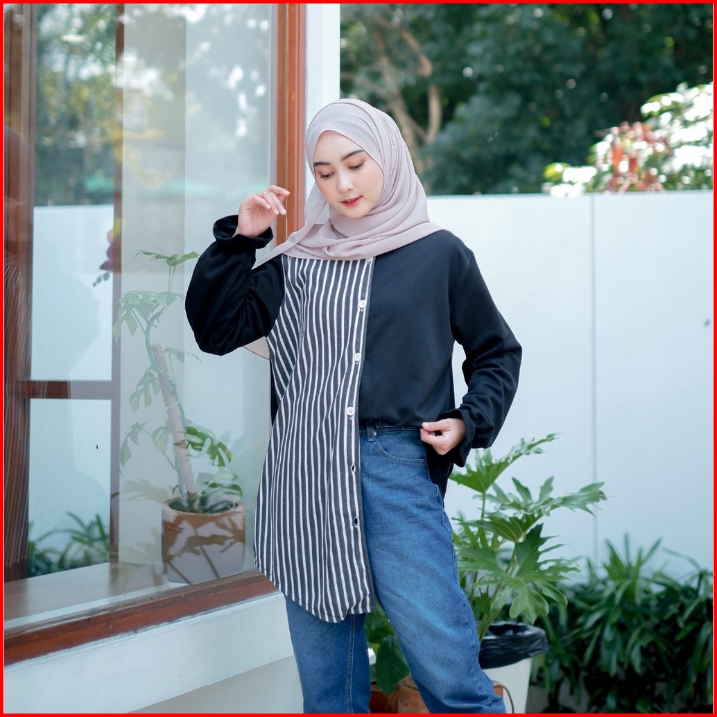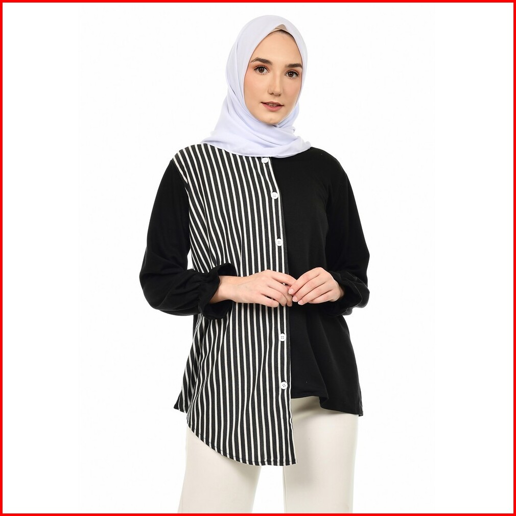 Mybamus Faranisa Half Stripe Tops Black M15989 R80s2