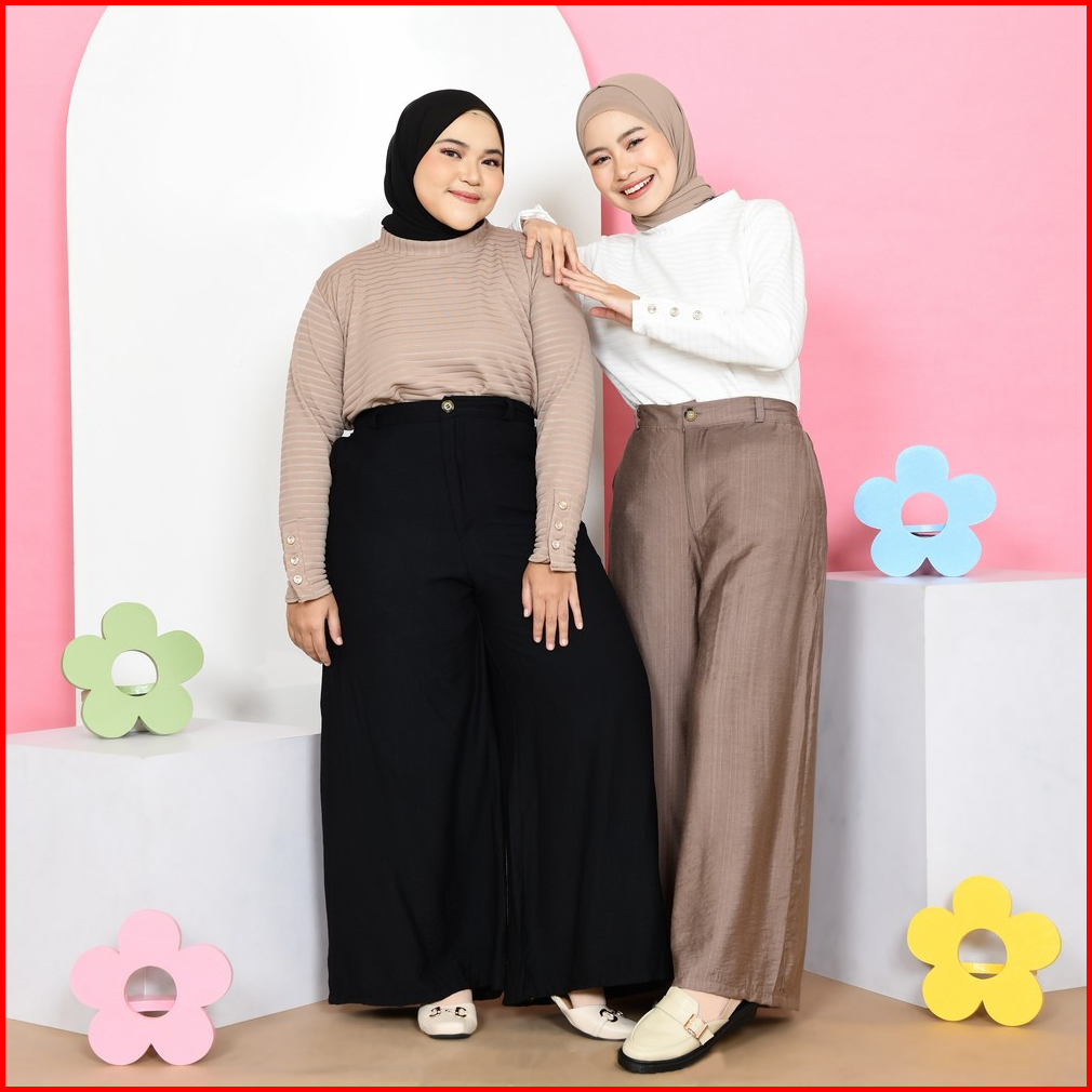 Mybamus Papya Pallazo Pants - Celana Kulot Lebar - Celana Linen - Office Pants