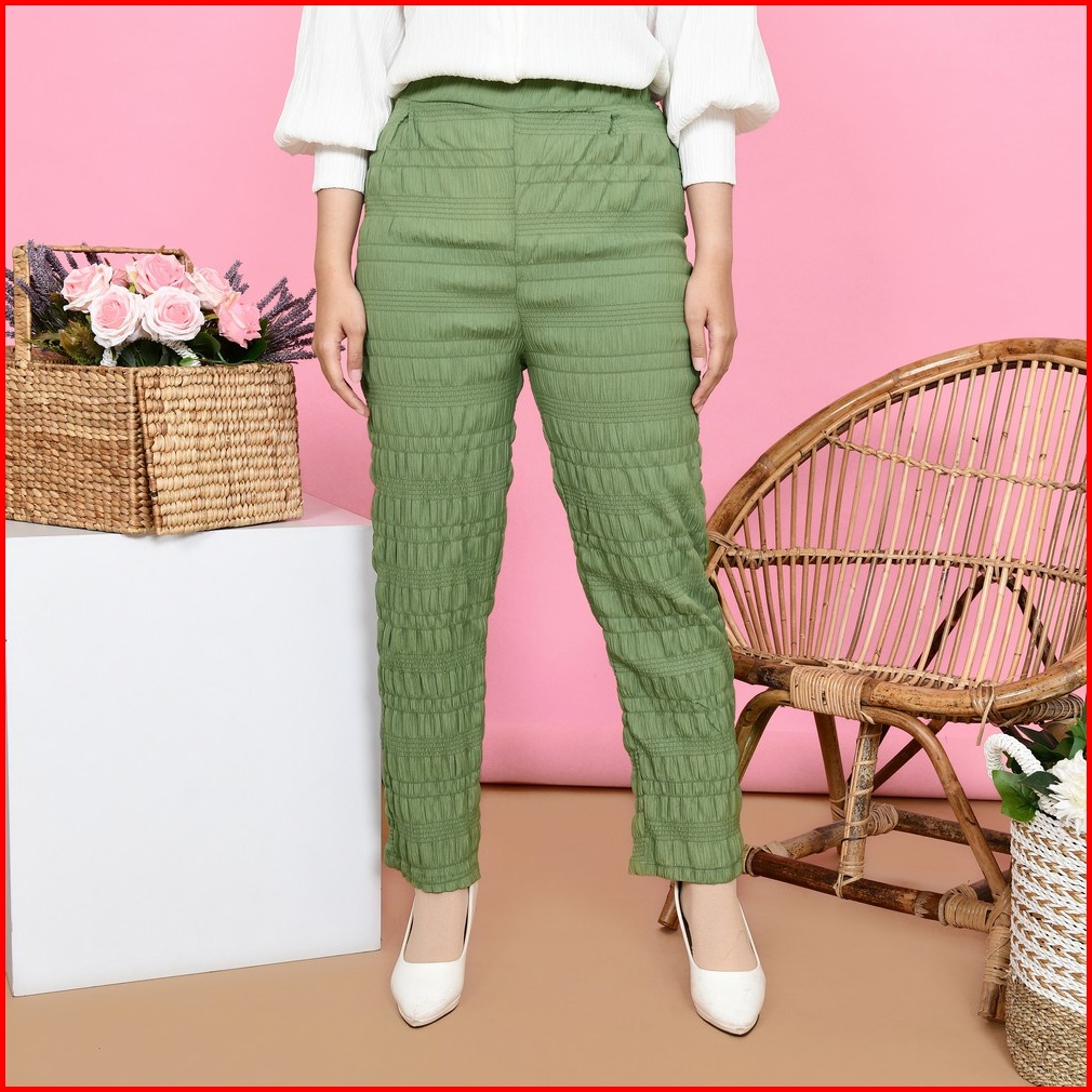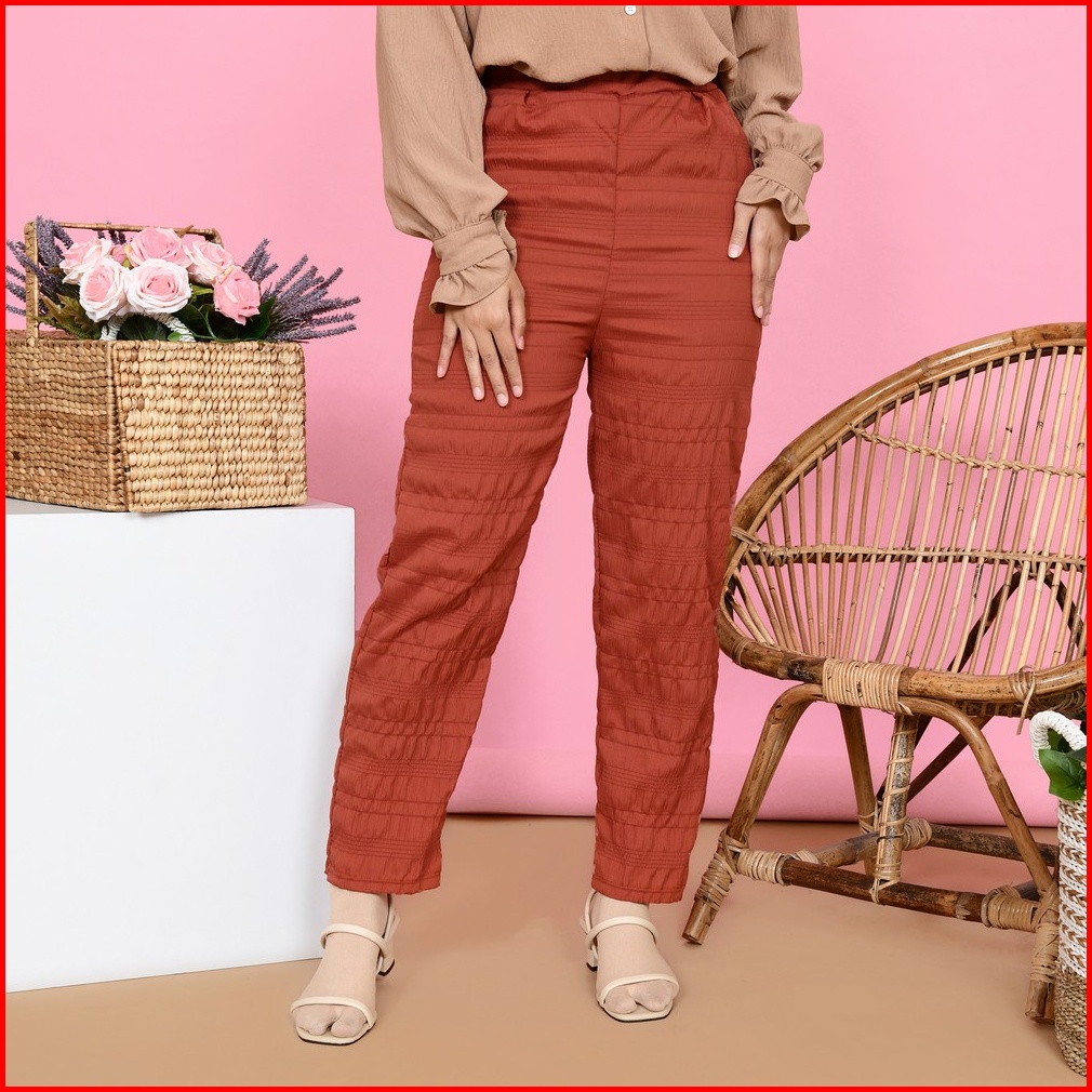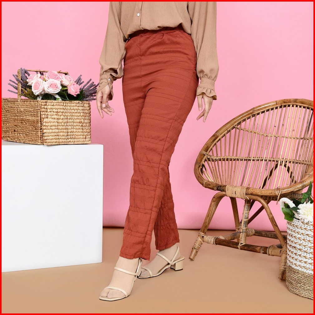 Mybamus Lova Fancy Pants Celana Panjang Wanita Straight Pants - Celana Korea Celana Kekinian