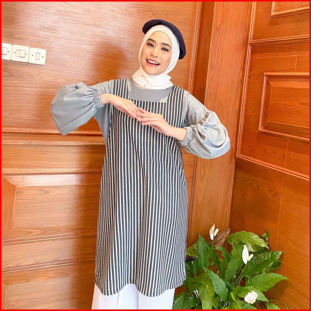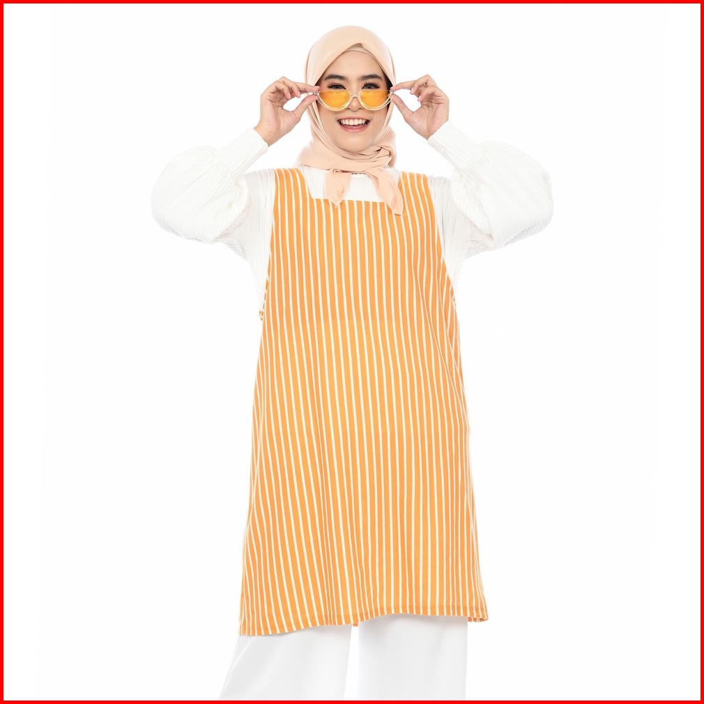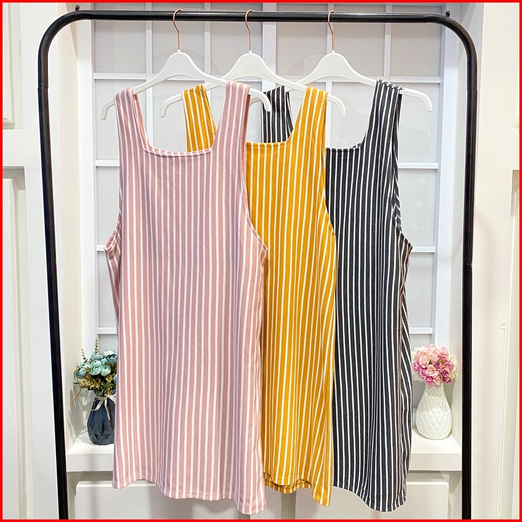 Mybamus Nuri Overall Outer Luaran Tunic Wanita Atasan Korea Tanpa Lengan Stripe