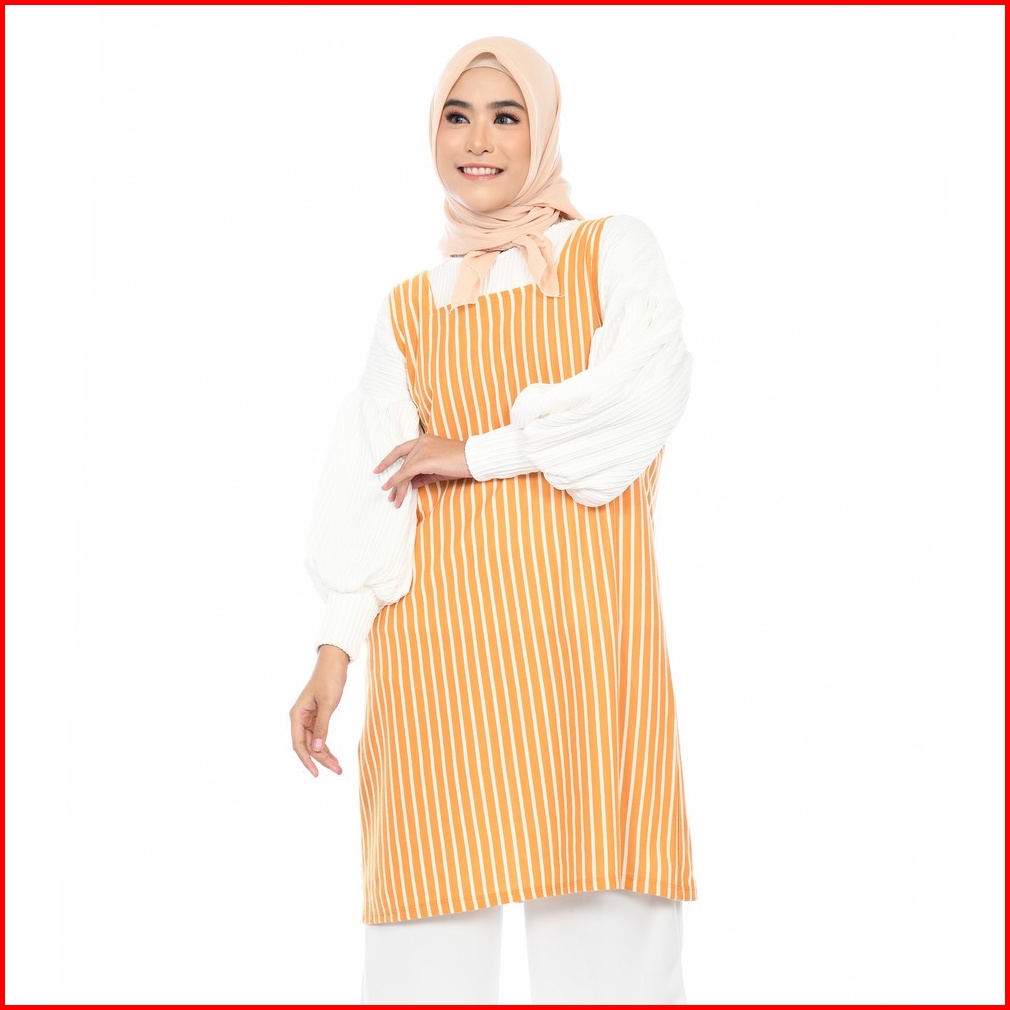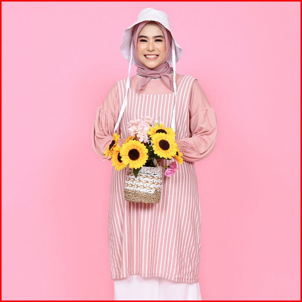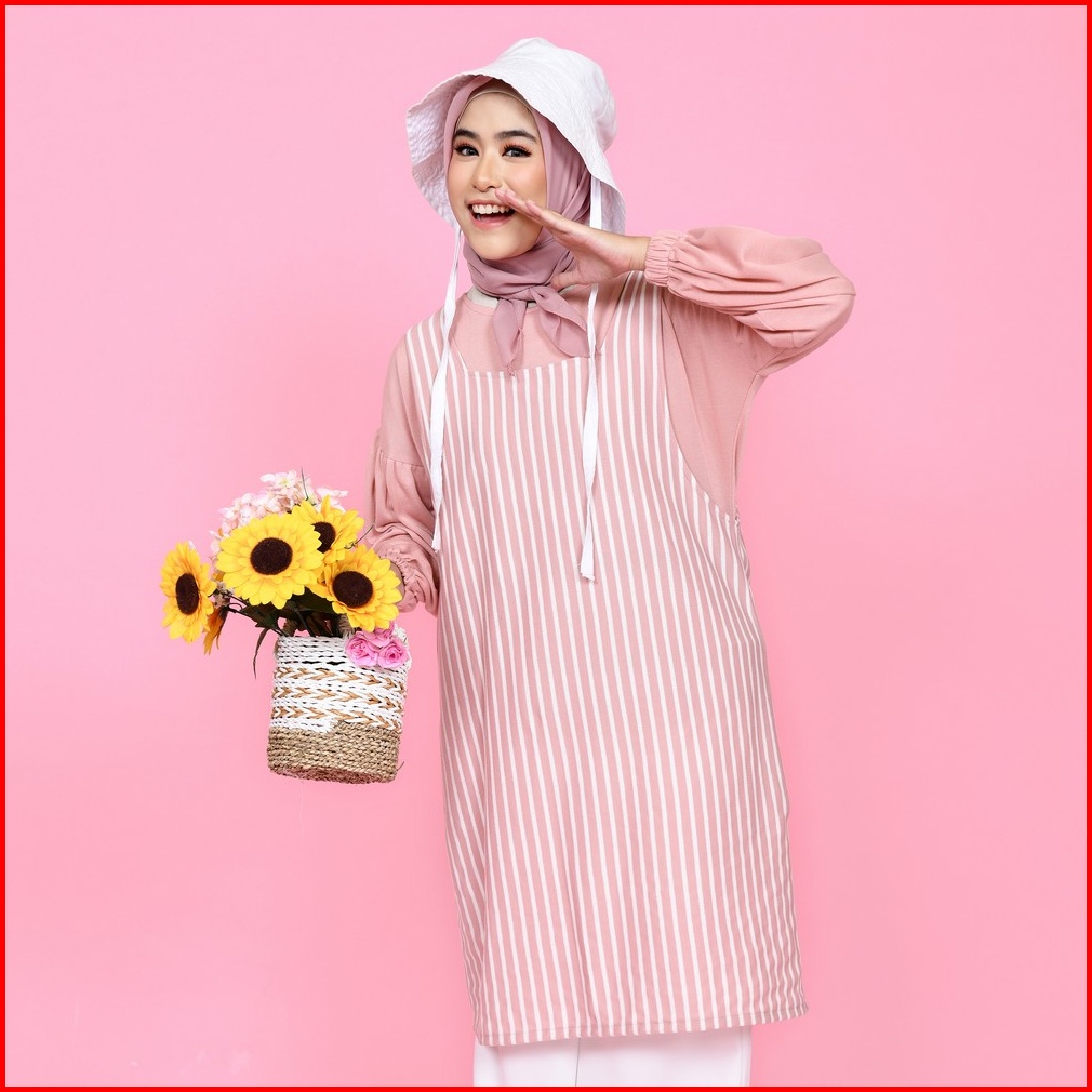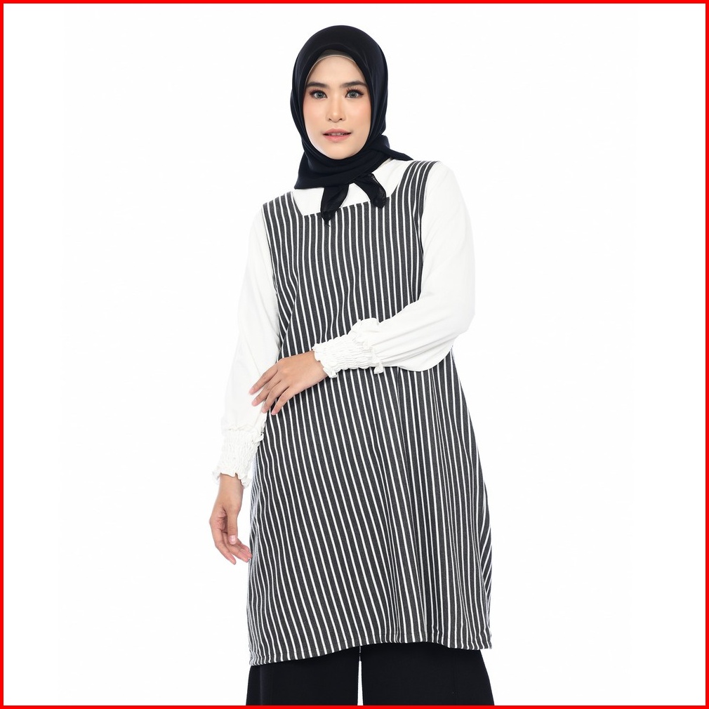 Mybamus Nuri Overall Outer Luaran Tunic Wanita Atasan Korea Tanpa Lengan Stripe