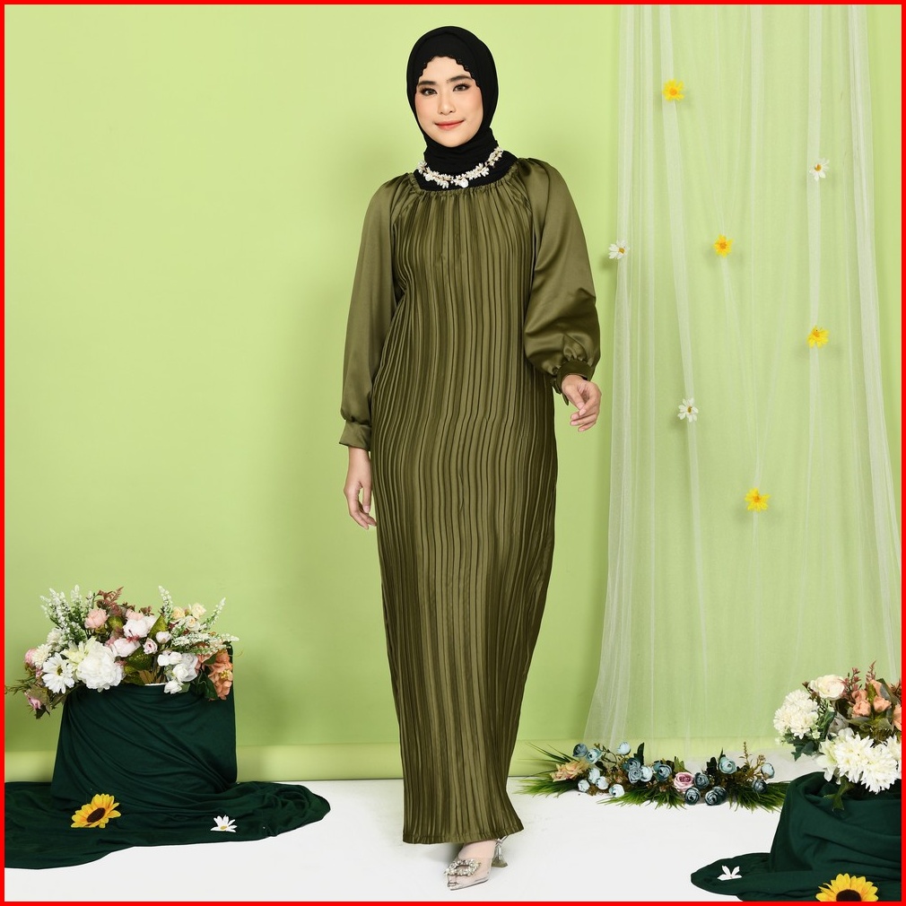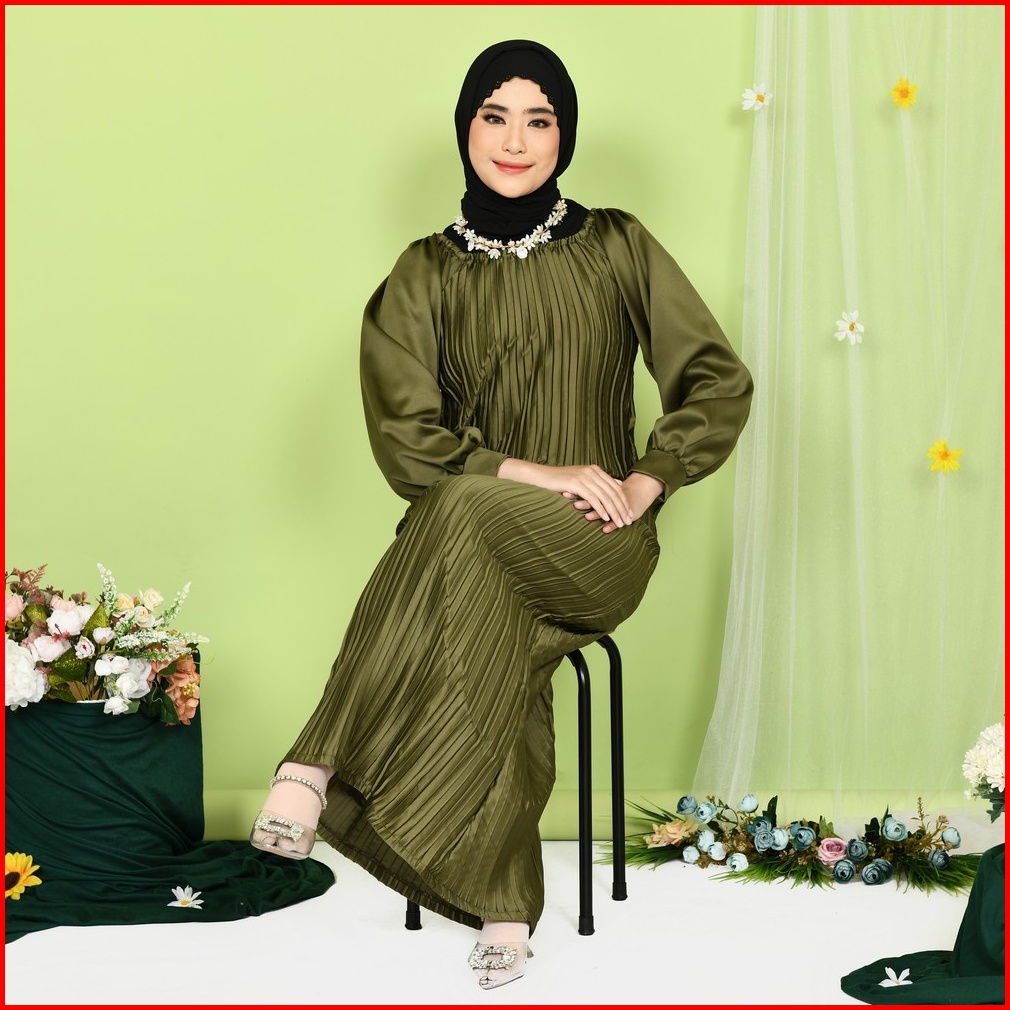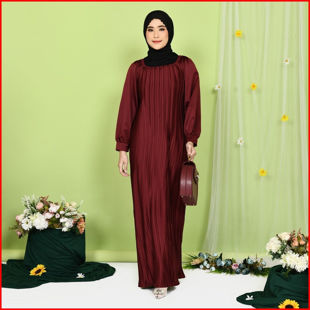Mybamus X Jihansahira - Sahira Long Dress Plisket - Gamis Wanita - Dress Plisket