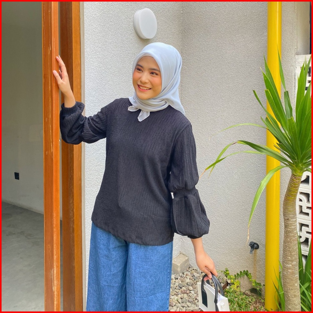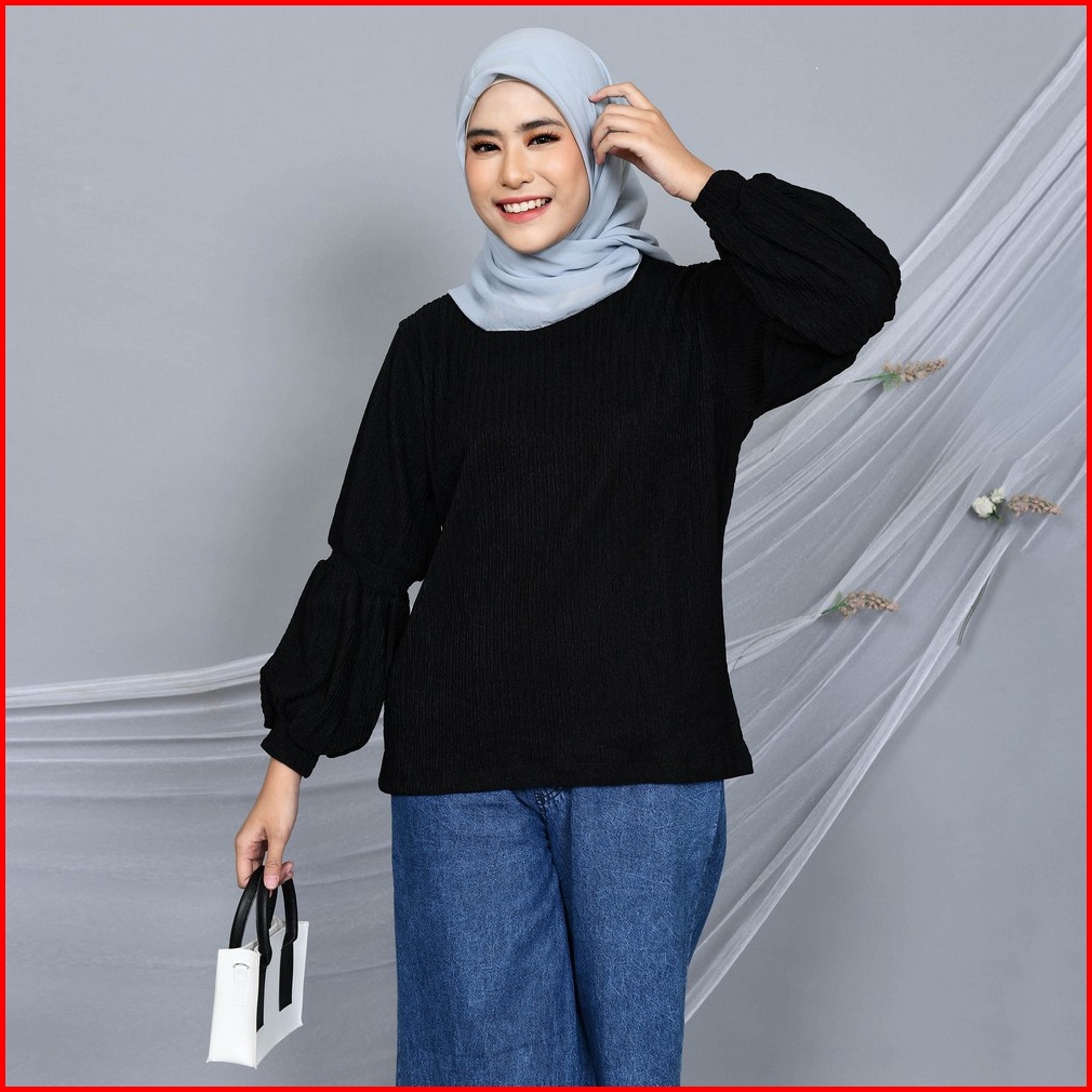 Mybamus Sophia Balloon Tops Black M15747 R109s4 - Atasan Premium