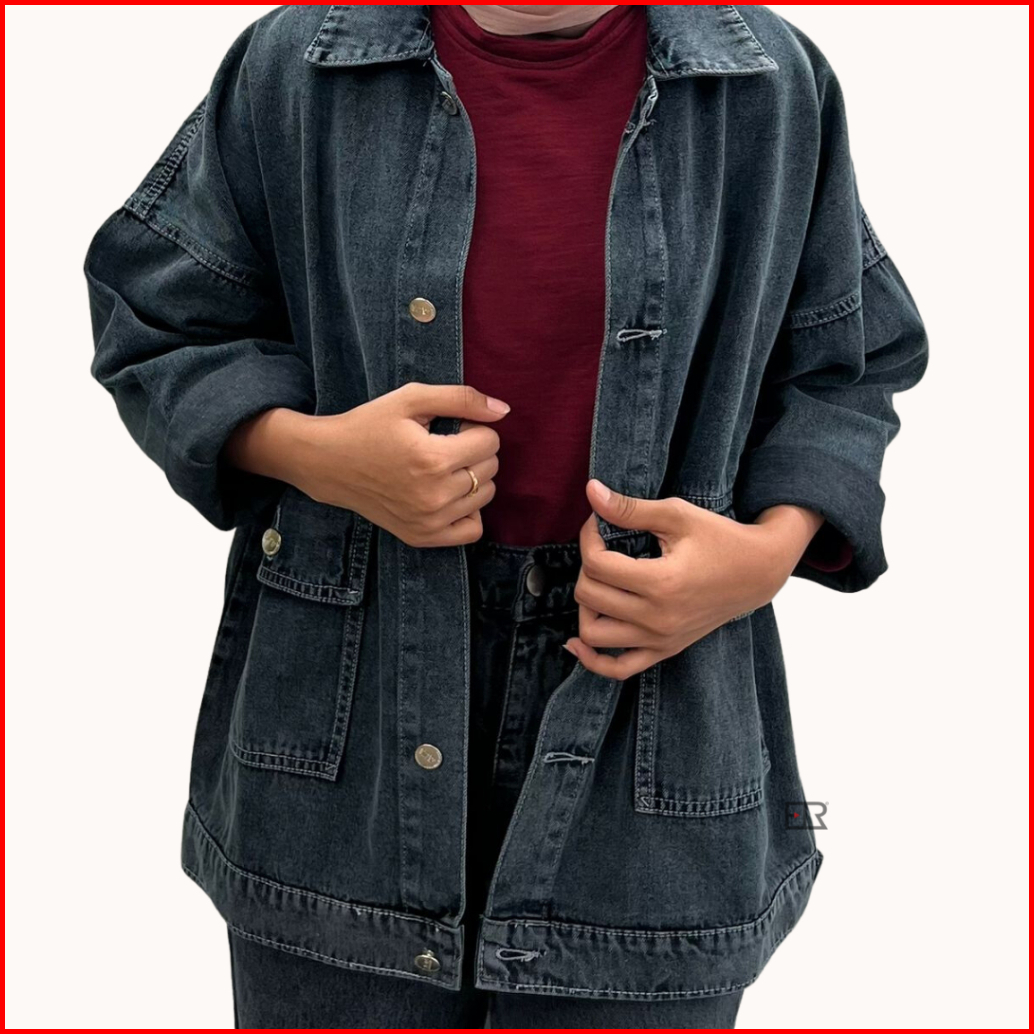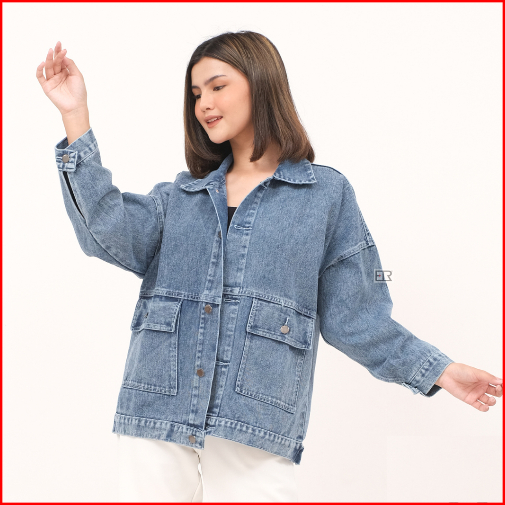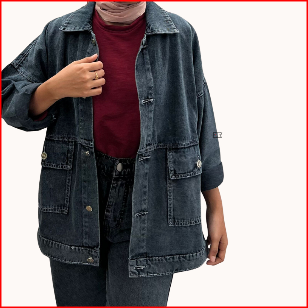 Jaket Button Jeans Oversize Blue Acid - Button Jaket Ftr