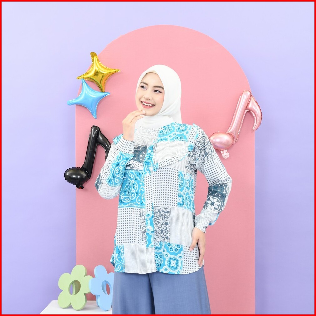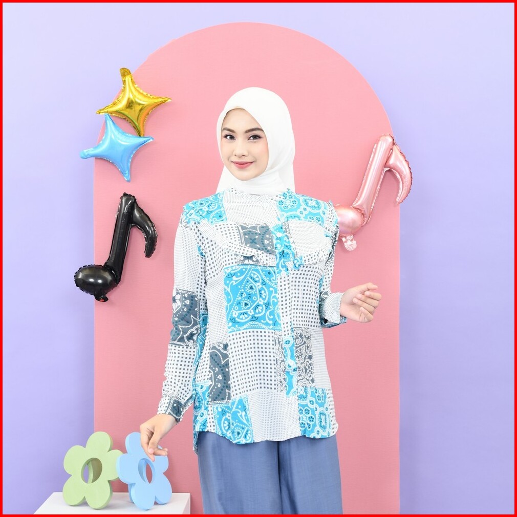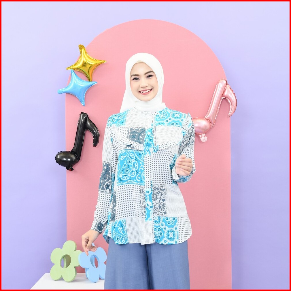 Mybamus Ekavira Wringkle Soft Blue-white M16171 R43s3 - Atasan Muslim