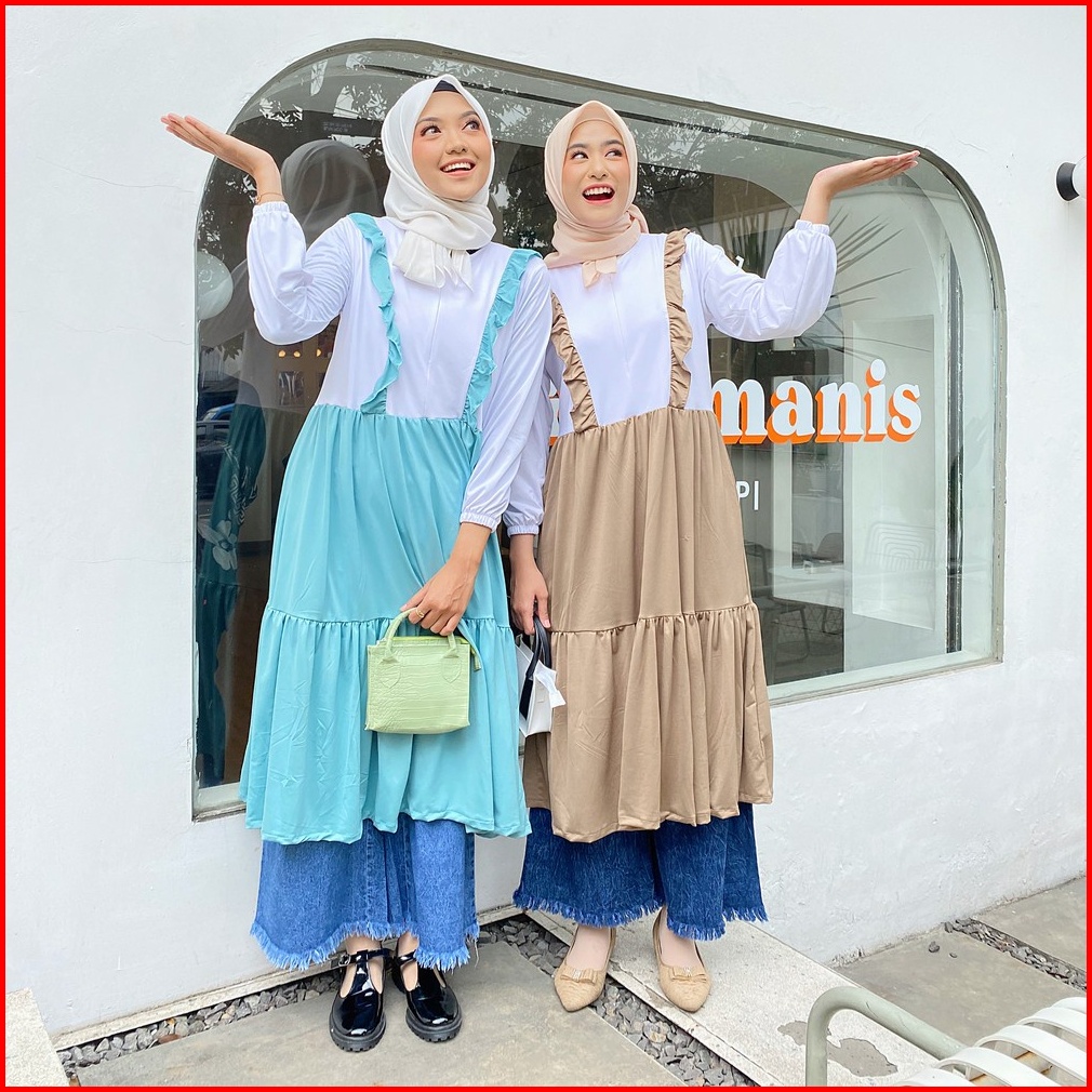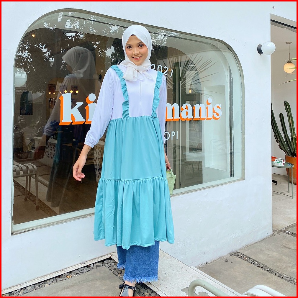 Mybamus Tory Midi Dress Tunic Ruffle Long Tunik Tunic Busui
