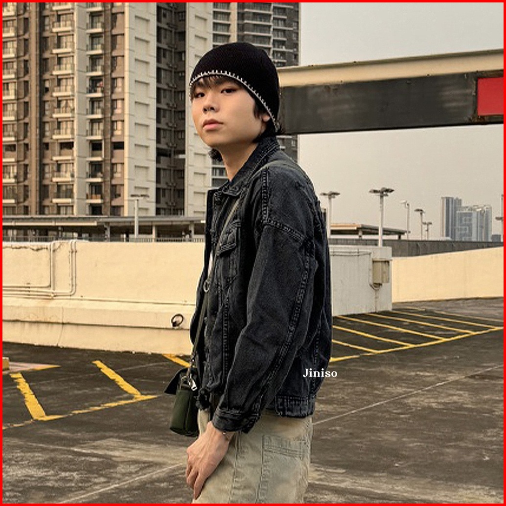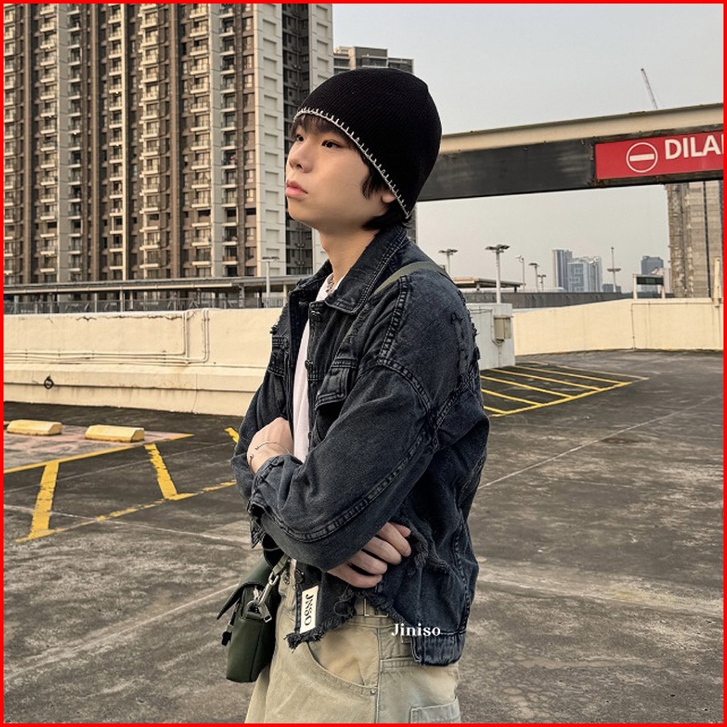 Jiniso Pria Ripped Jaket Jeans Oversize Vintage Black Acid