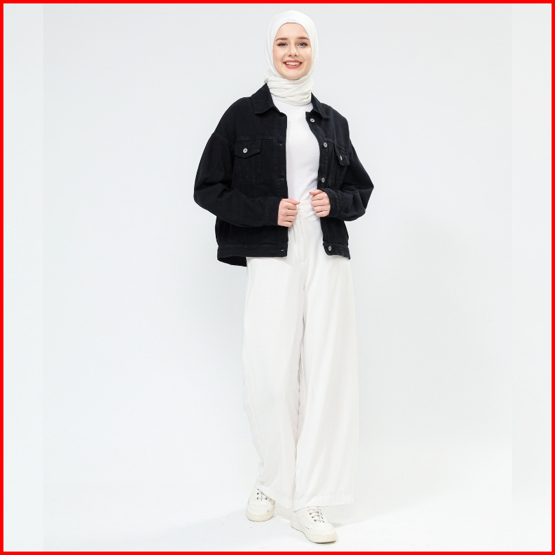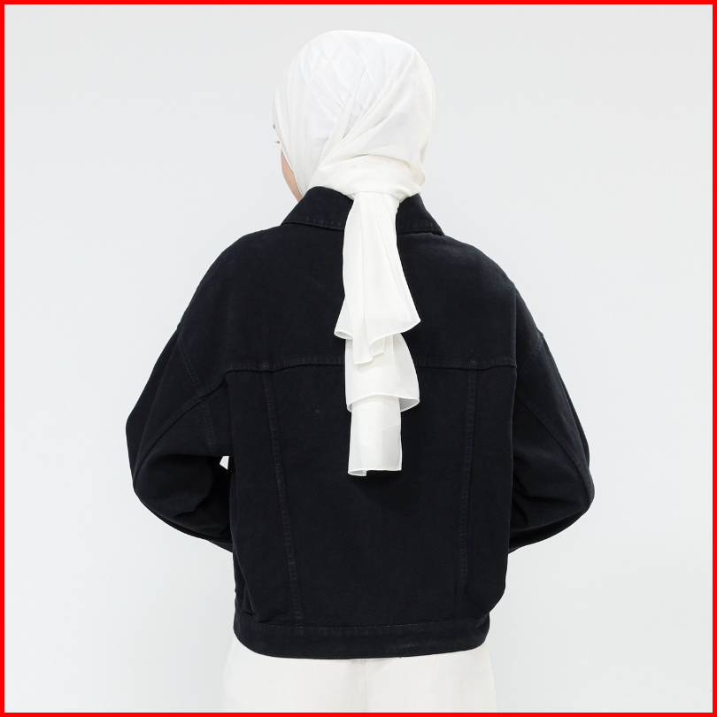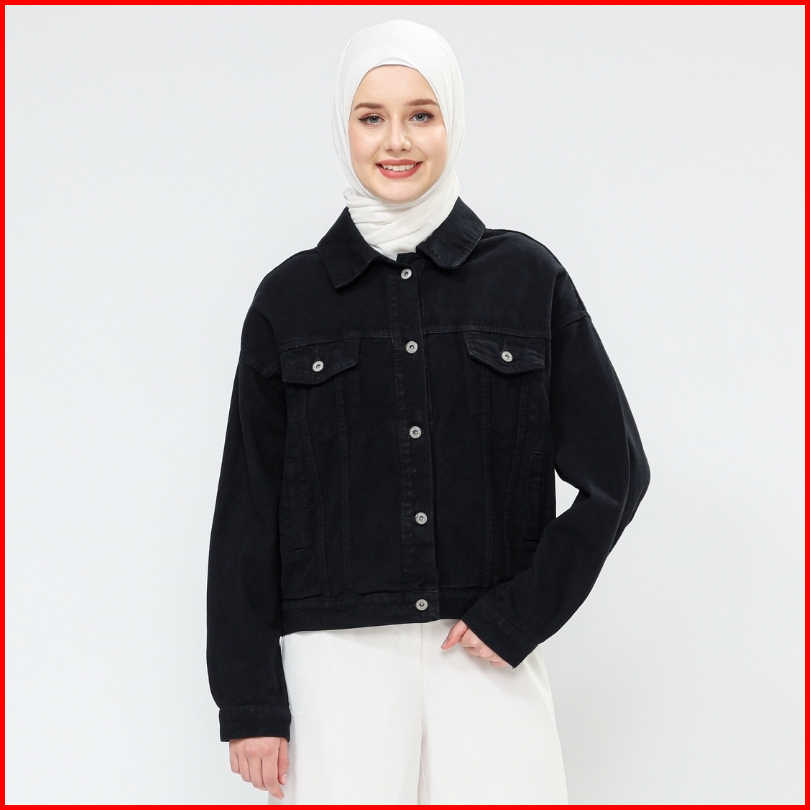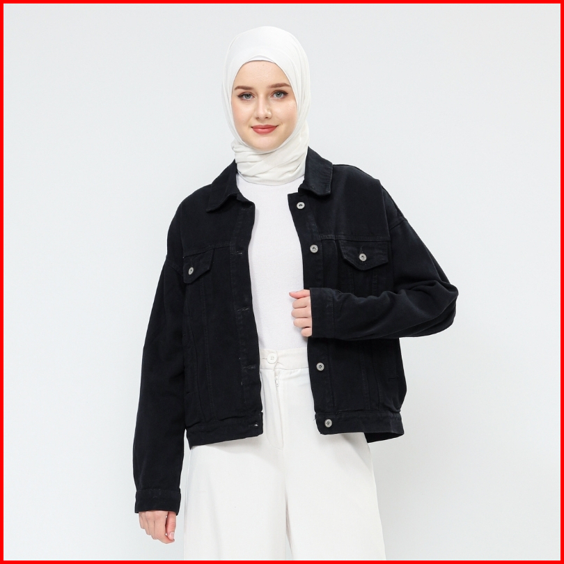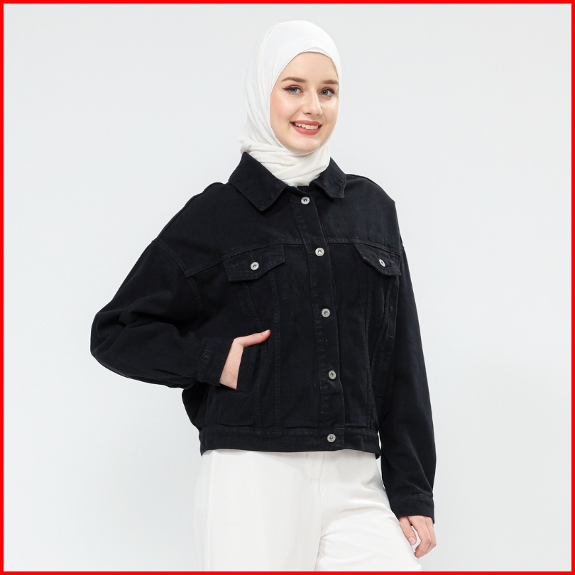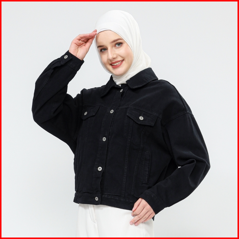 Myself - Jaket Jeans Wanita Hijab Oversize Wanita Hitam Pekat Ascella