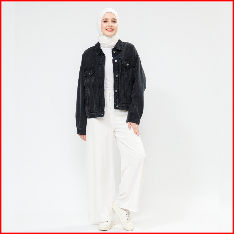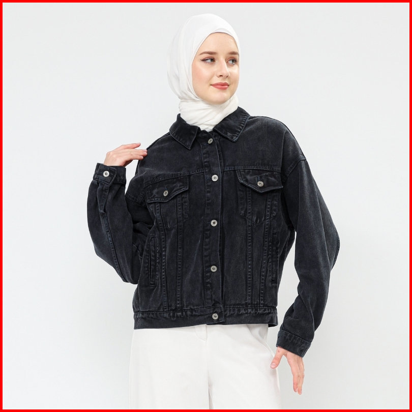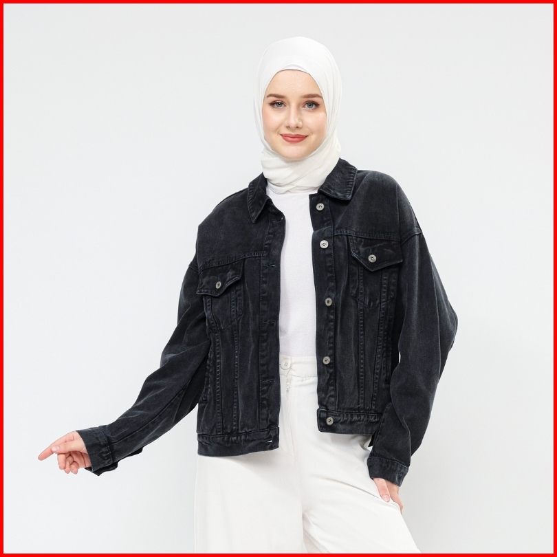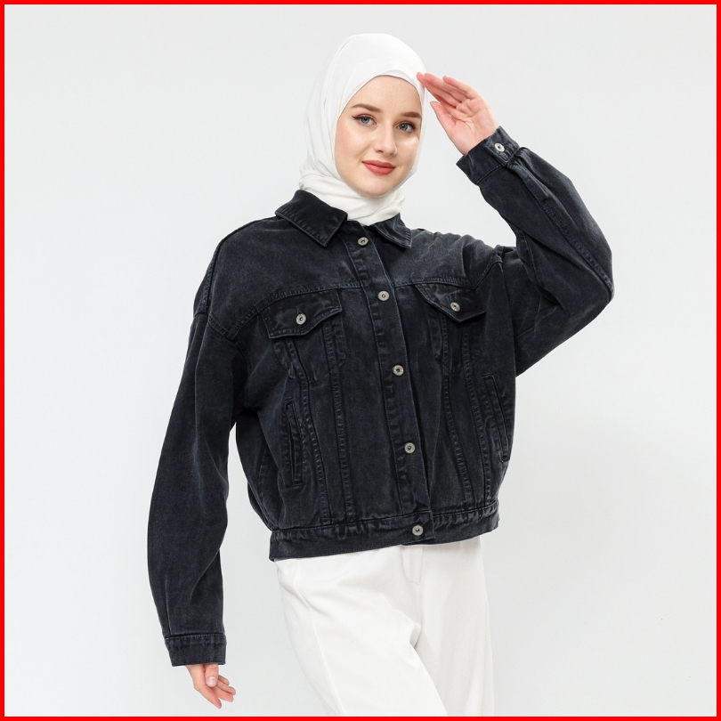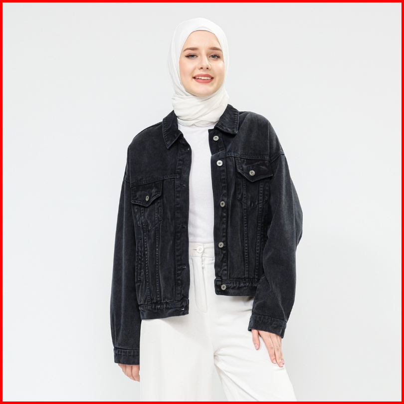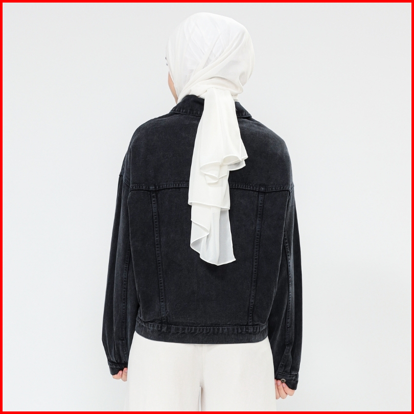 Myself - Jaket Oversize Wanita Hijab Denim Jeans Hitam Sandwash Jadelyn