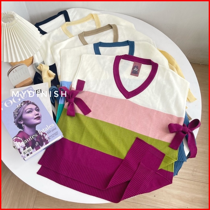 Cichi Vest Rainbow Rompi Wanita Rajut Vintage