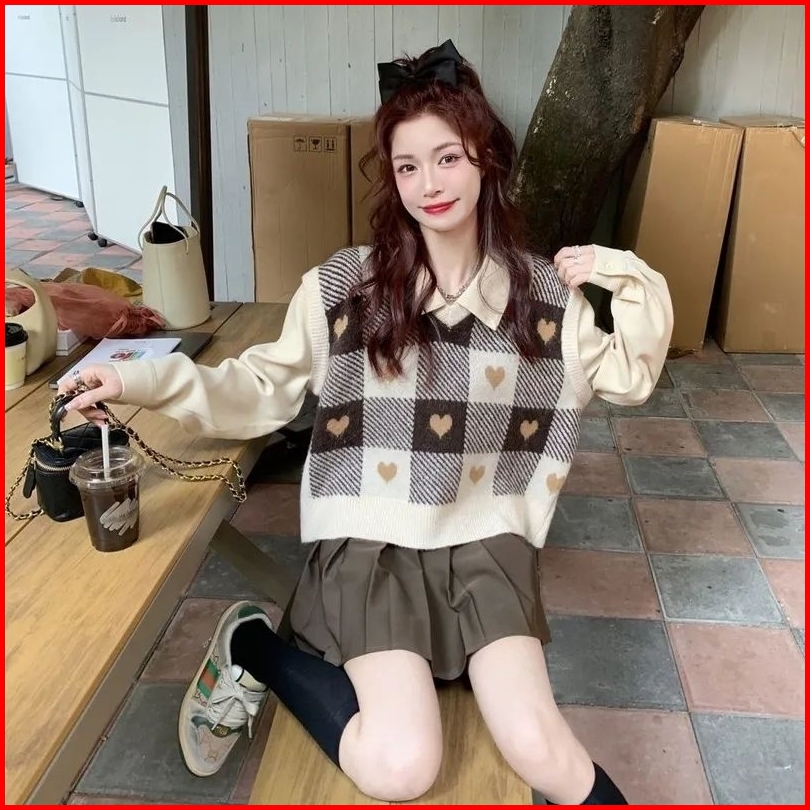 Azzura Vest Rajut Kotak-kotak Lembut Oversize
