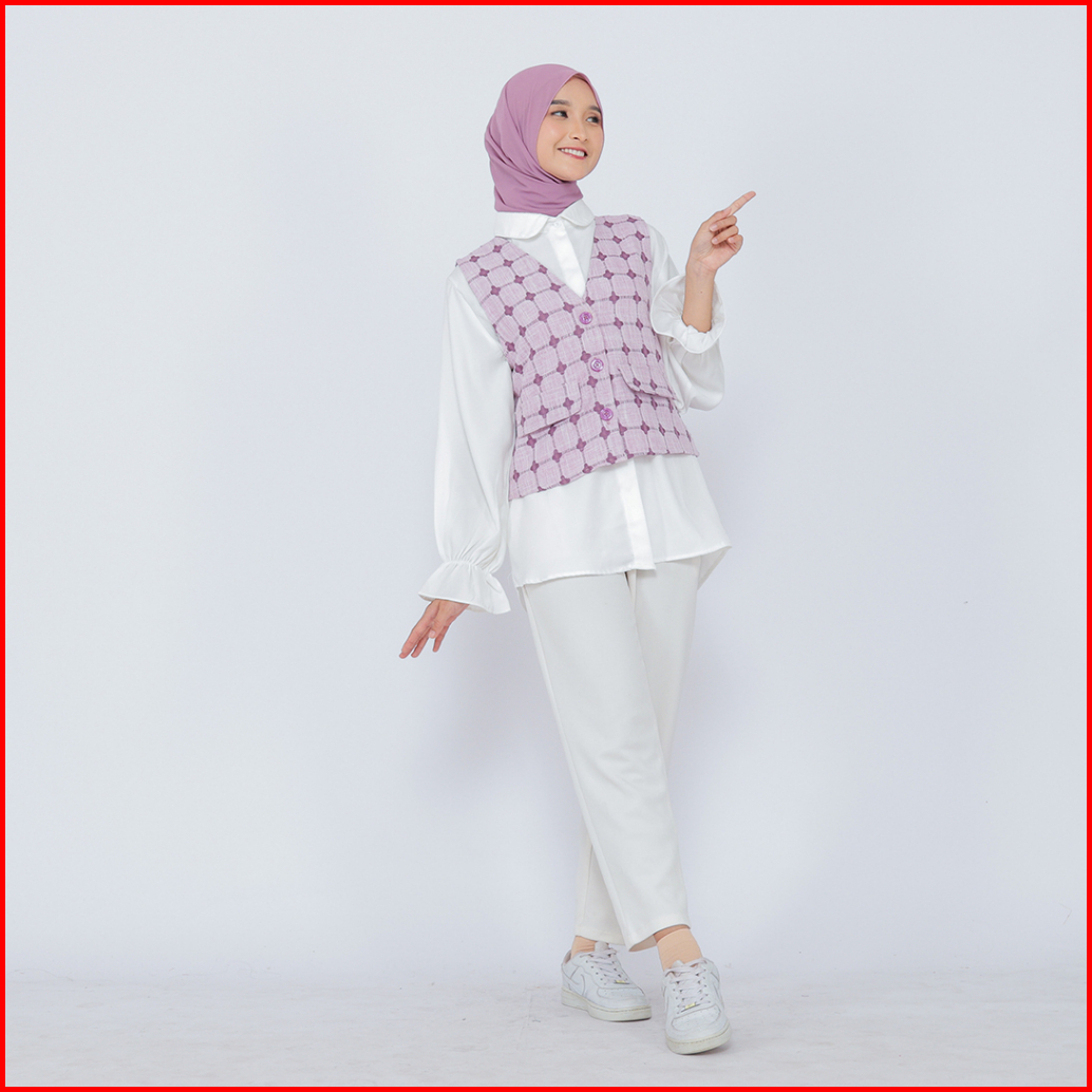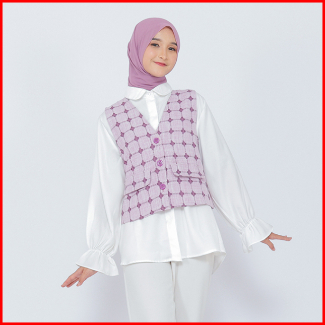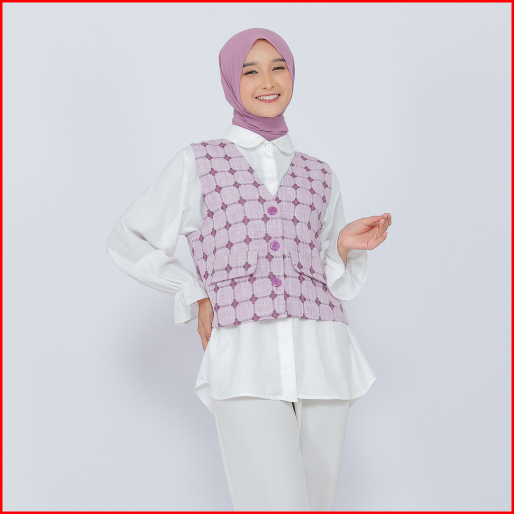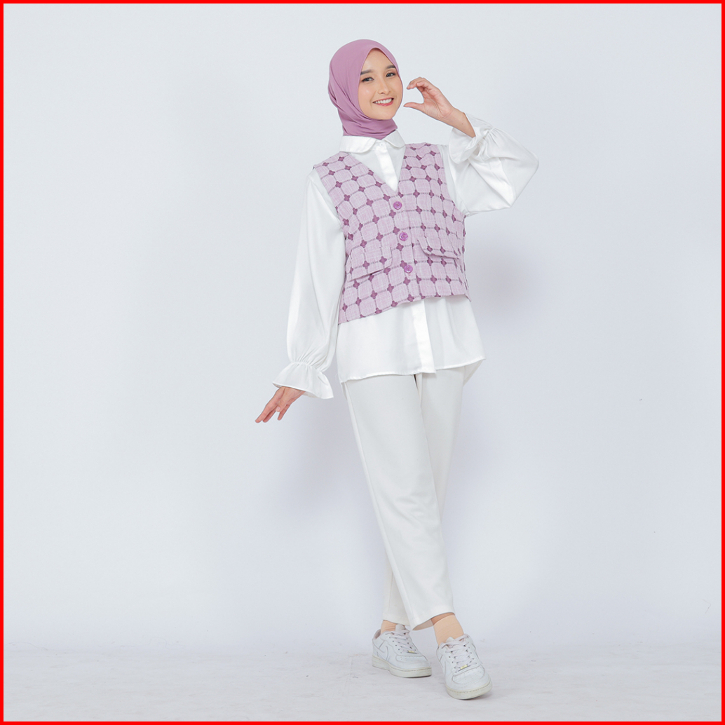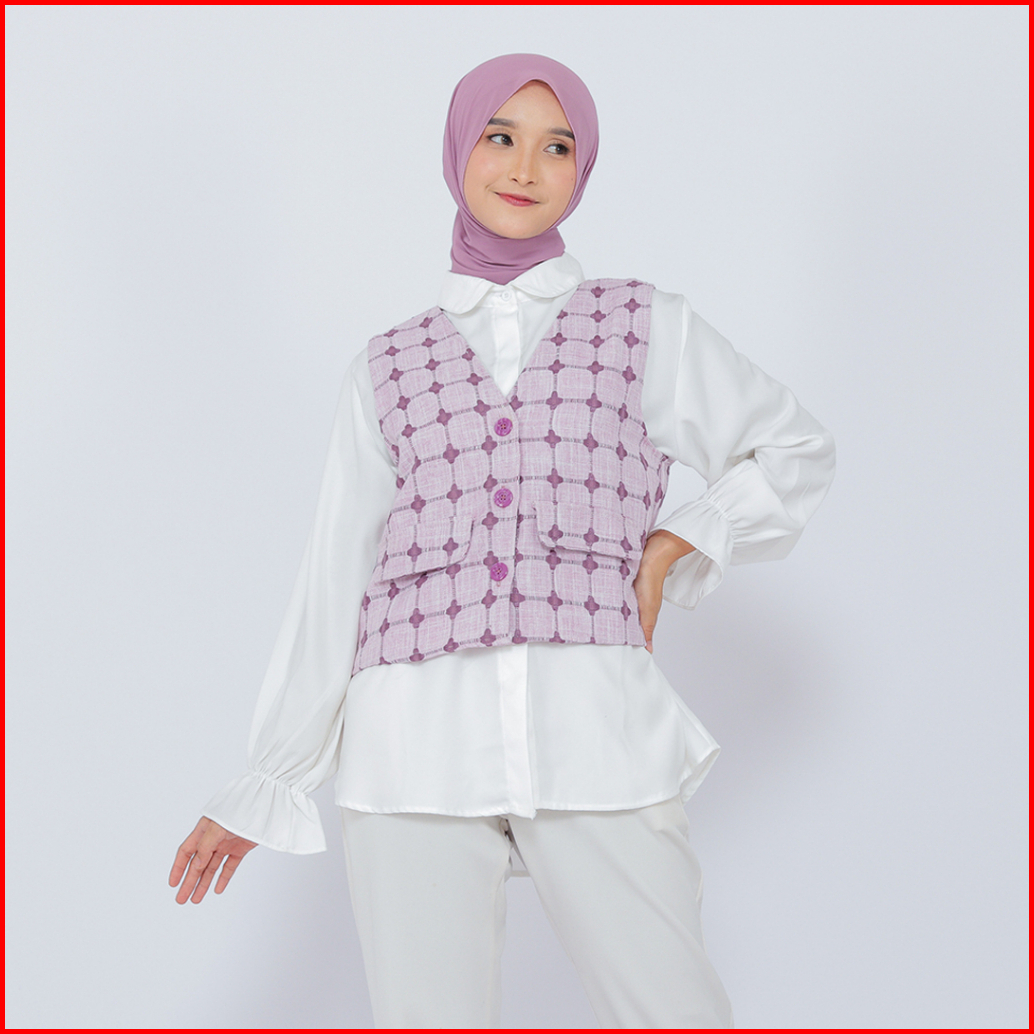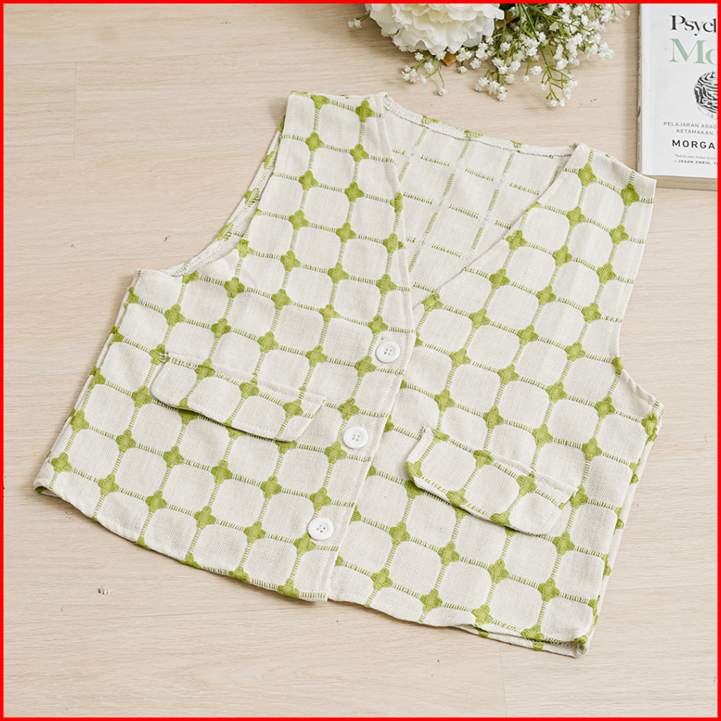 Kyoya - Kimi Botton Vest Linen Embroidery I Rompi Wanita