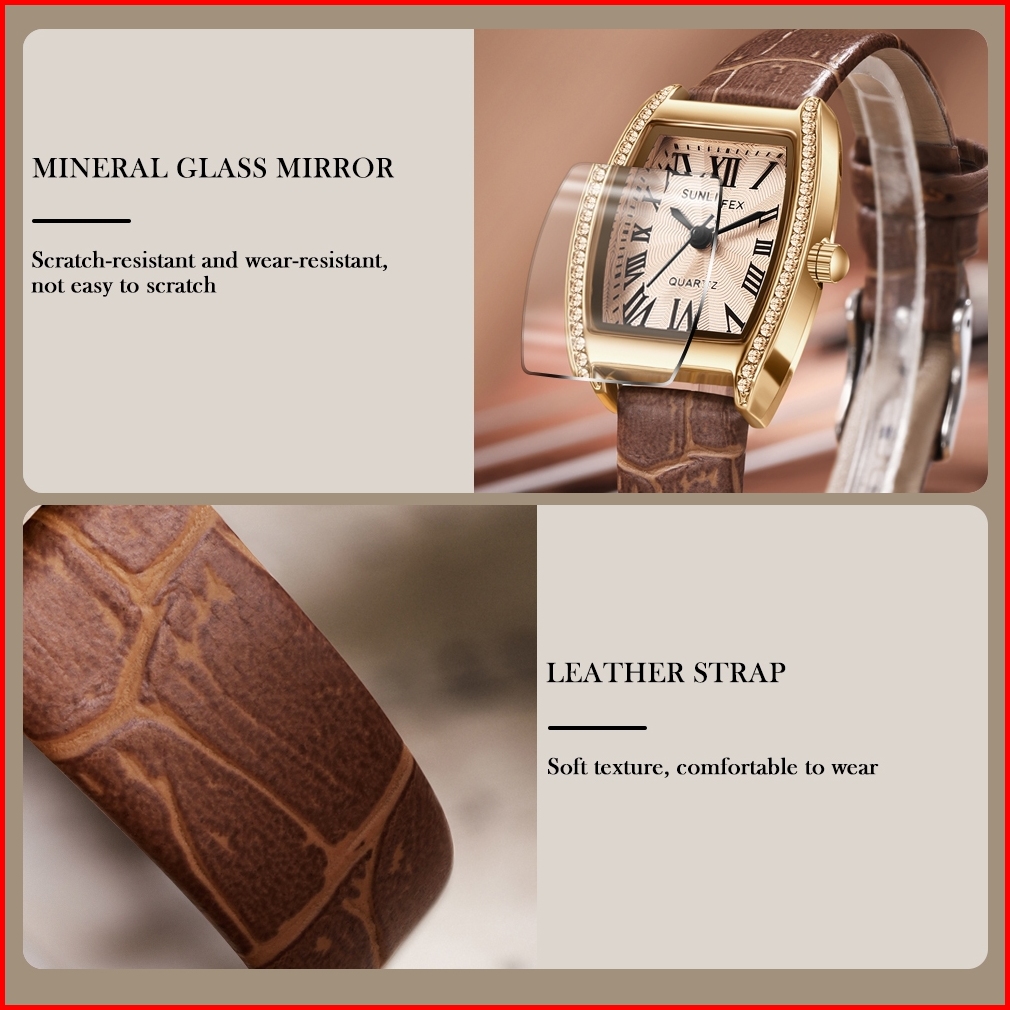 Sunlifex Jam Tangan Wanita Original 6010 Korea Antik Tali Kulit Anggun Santai Jam Tangan Cewek