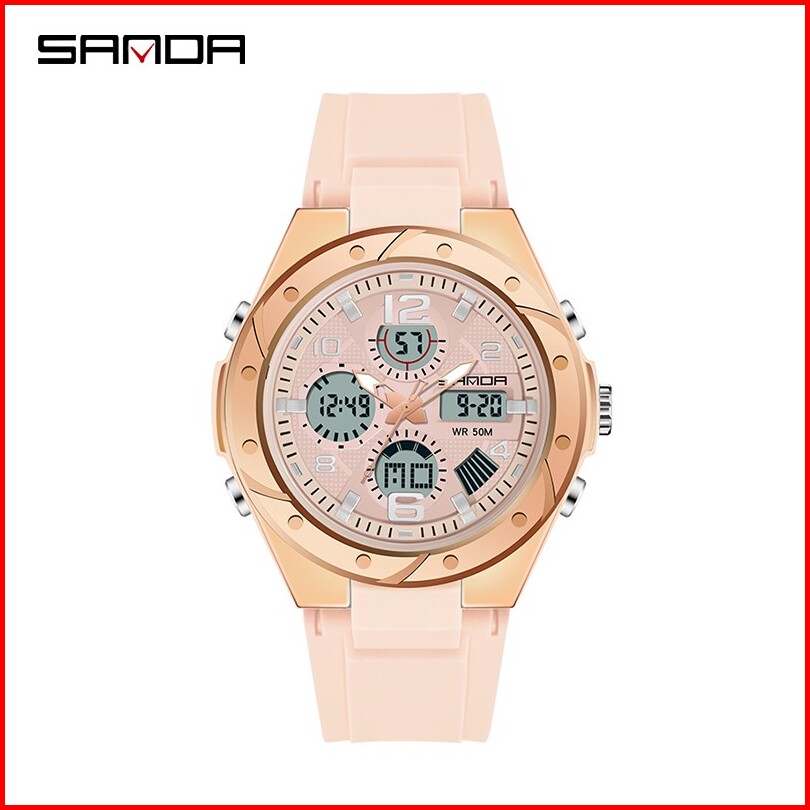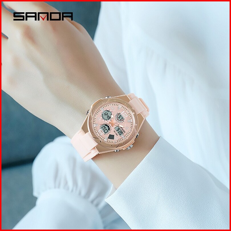 Sanda 6062 Jam Tangan Wanita Digital Analog Dual Time Shockproof Anti Air