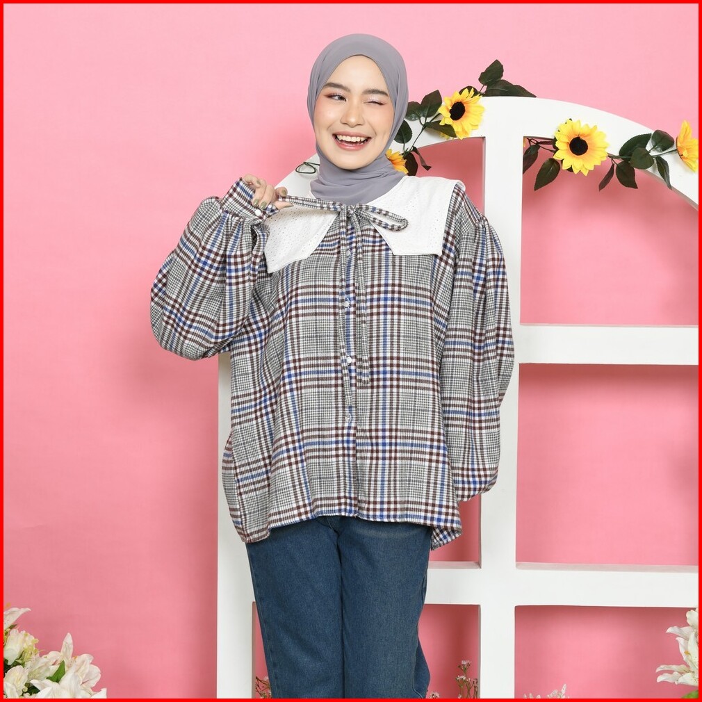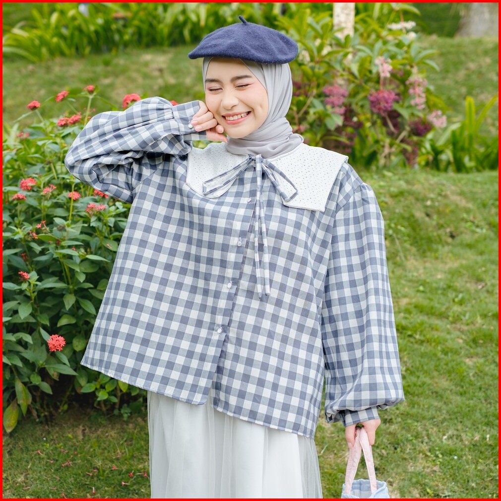 Mybamus Tiwi Collar Shirt - Kemeja Muslim - Kemeja Kotak - Atasan Muslim Kerah - Kemeja Coquette