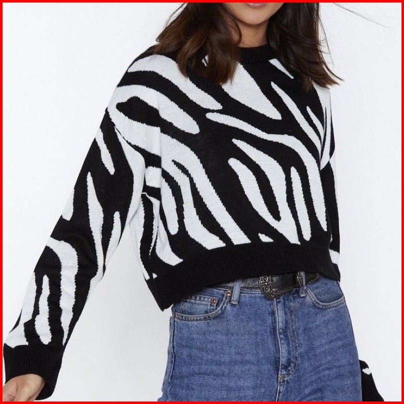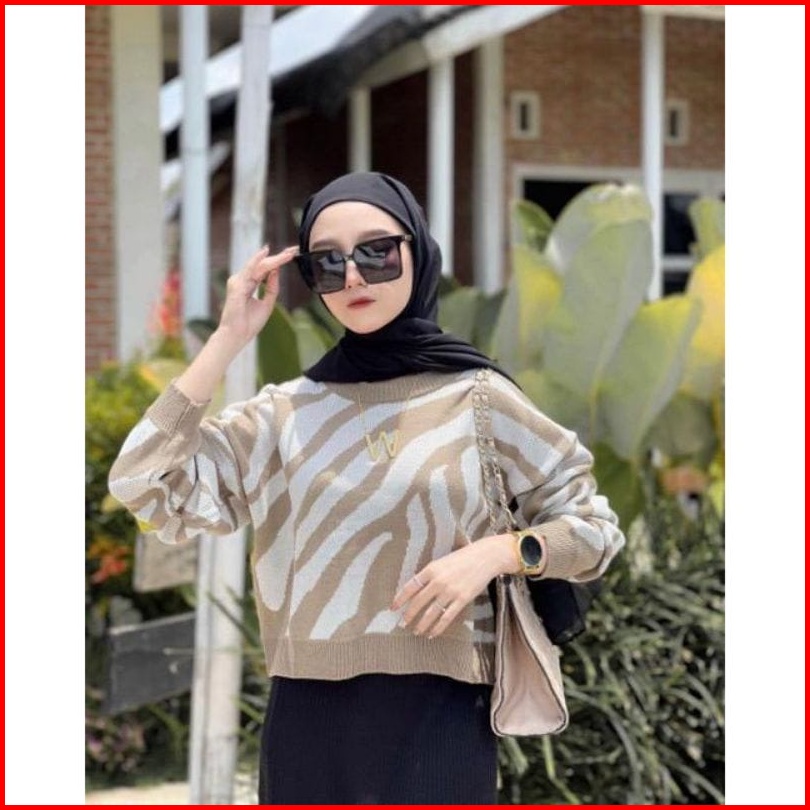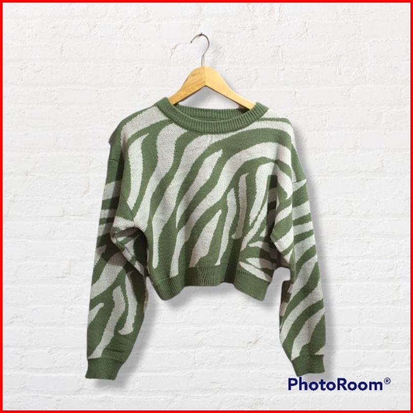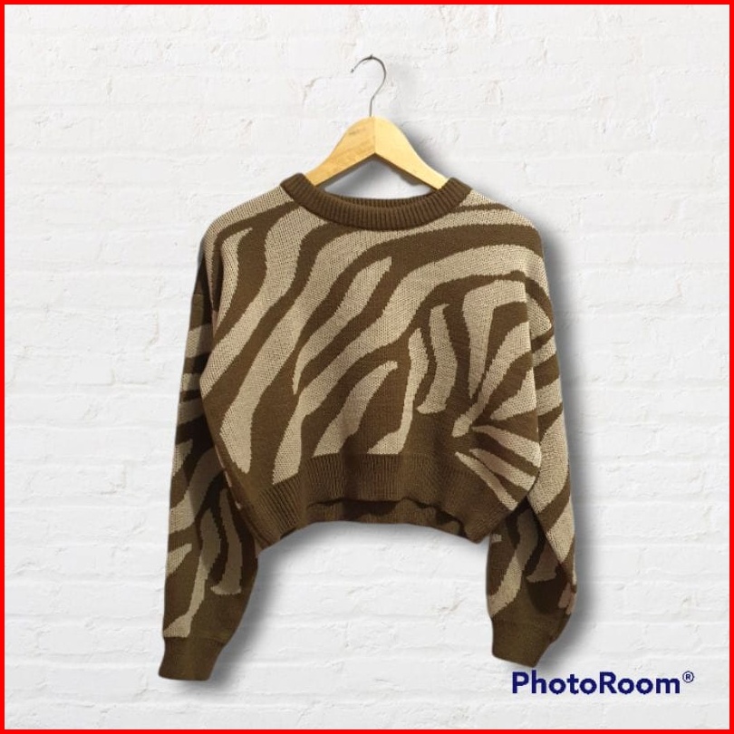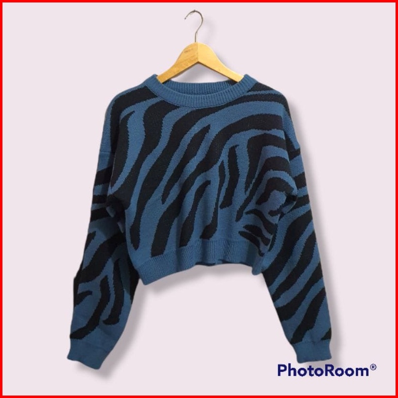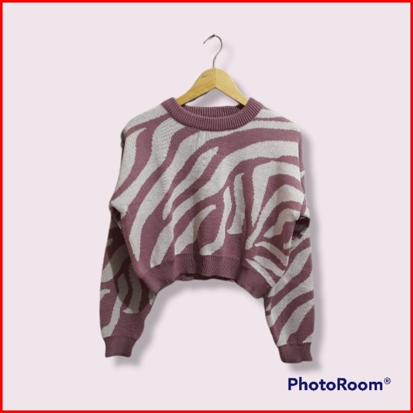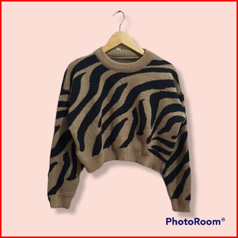 Sweater Wanita Crop Motif Zebra Acrylic Rajut