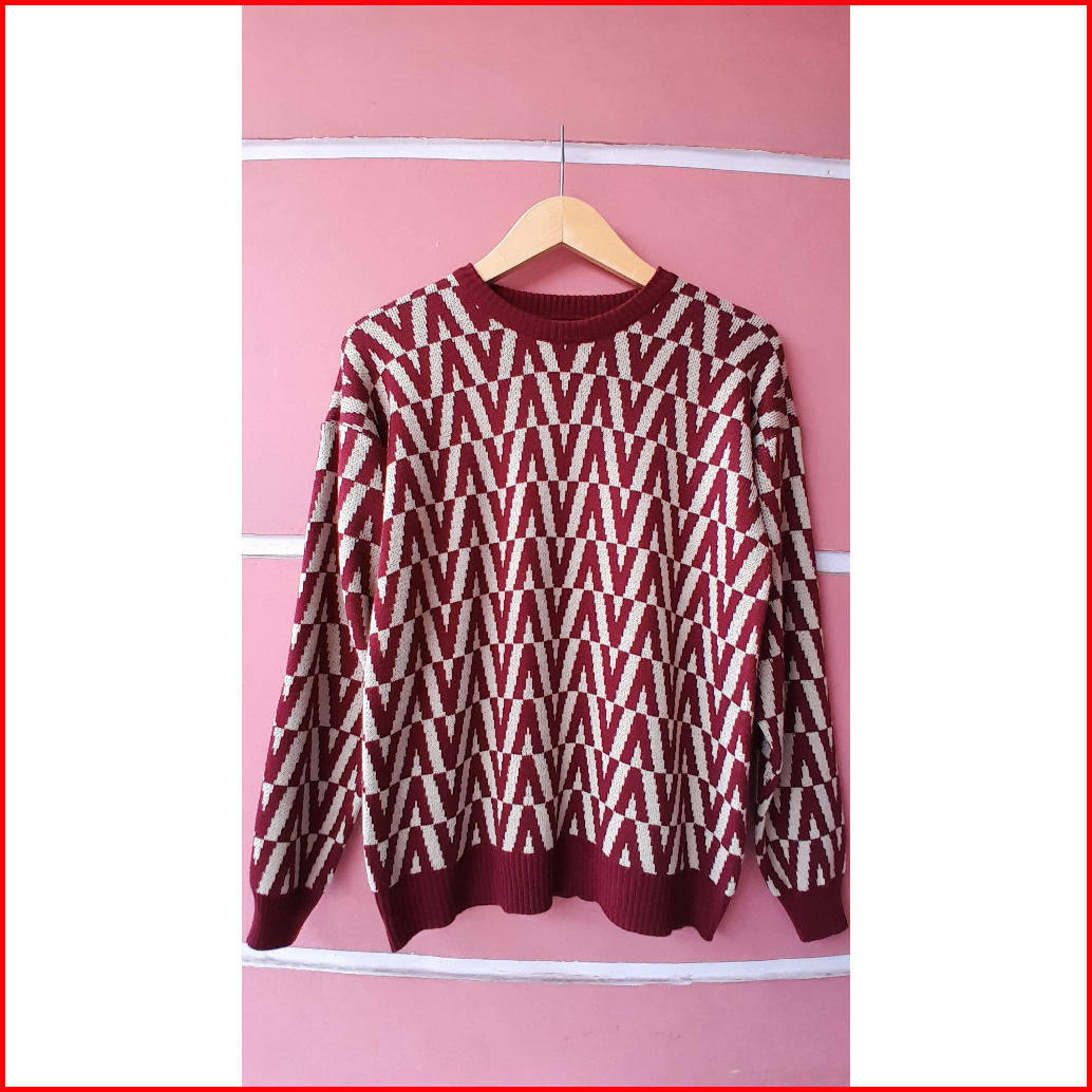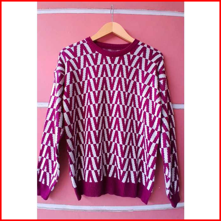 Baju Rajut Wanita Motif Vv Bahan Cotton Akrilik