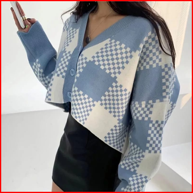 Cellin Knit Kardigan Crop Wanita Rajut Cotton