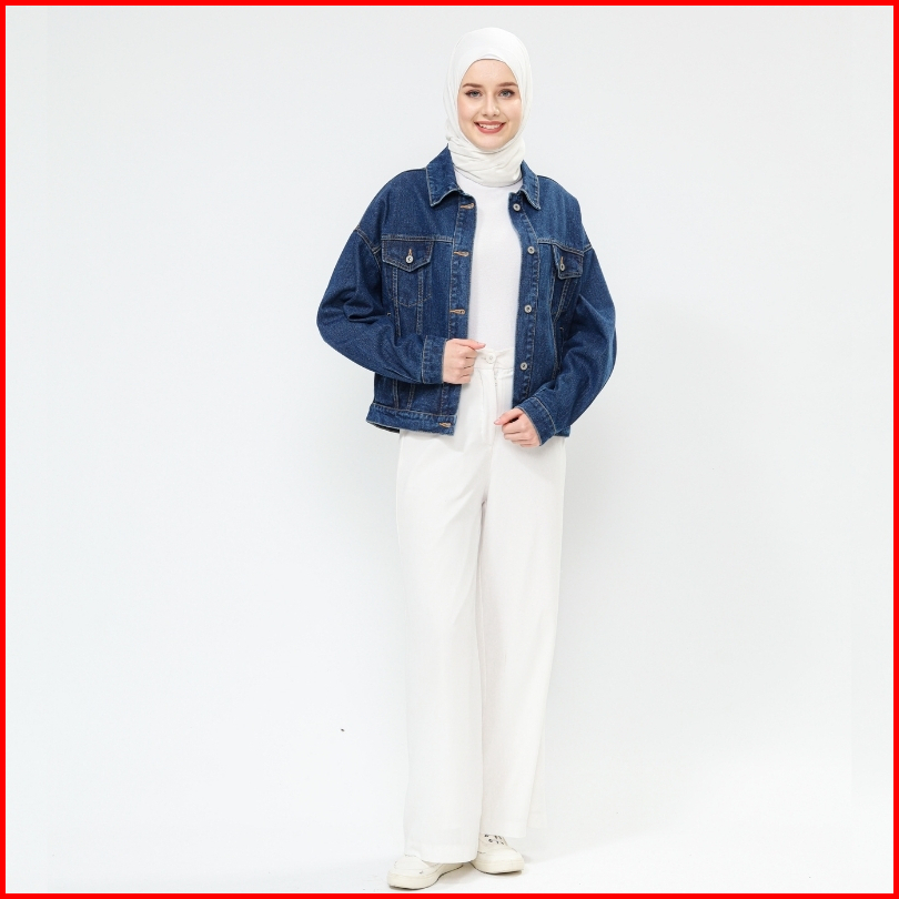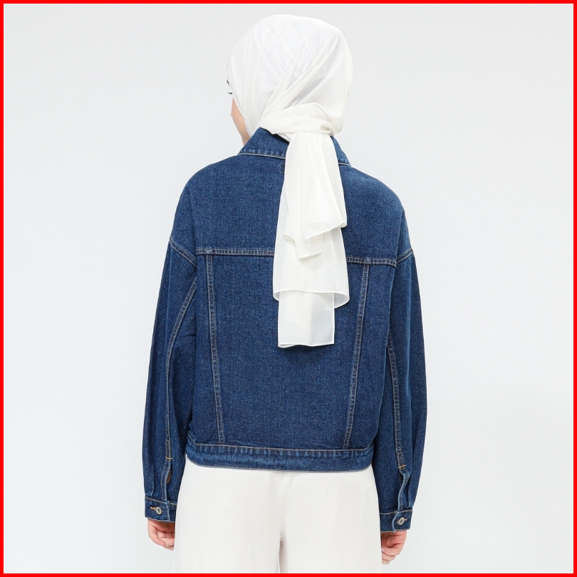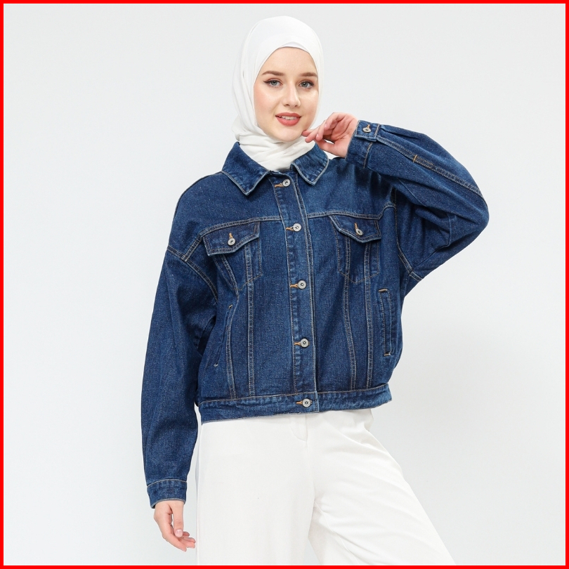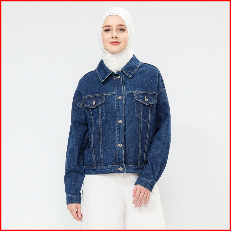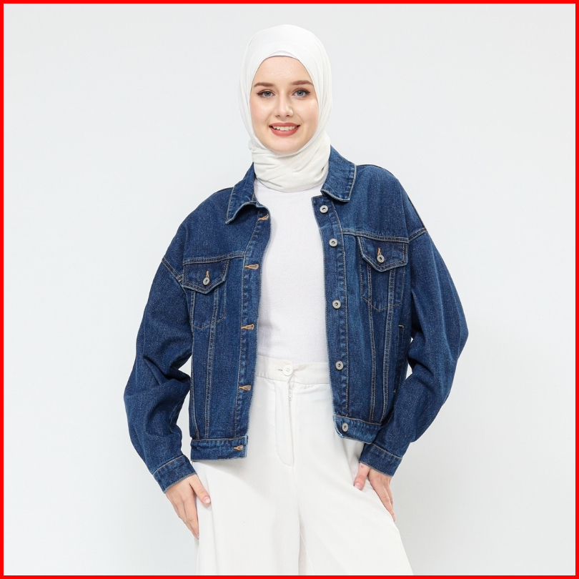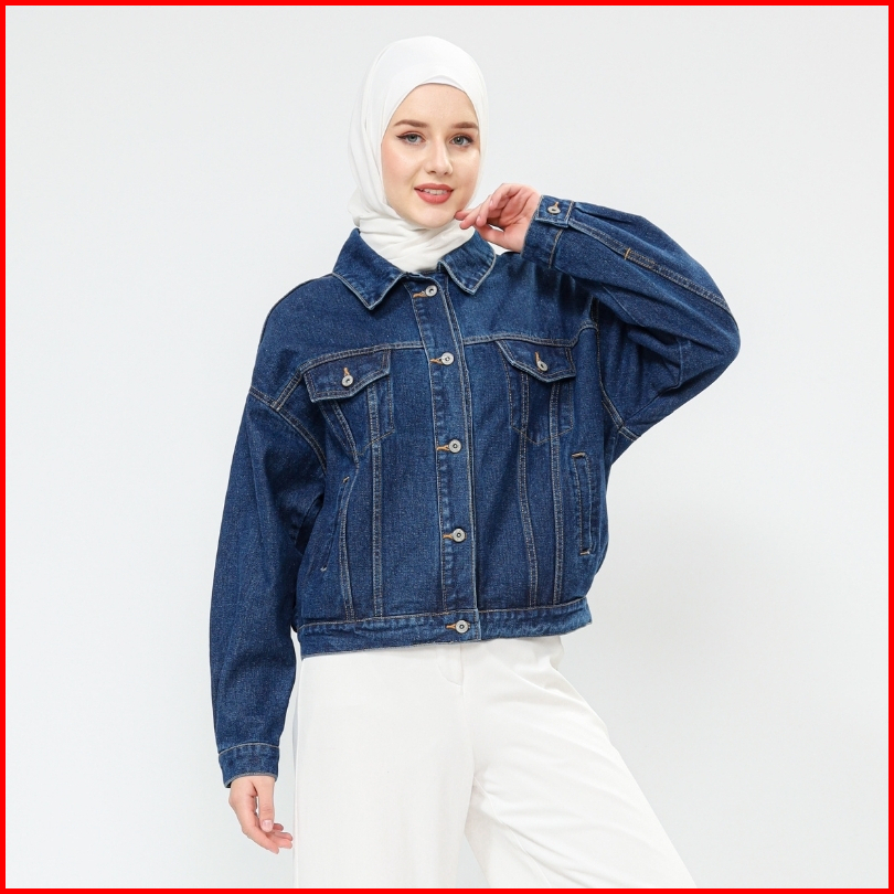 Myself - Jaket Jeans Hijab Wanita Oversize Biru Tua Alice